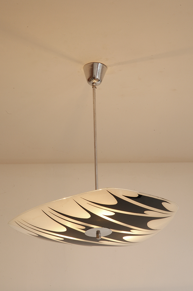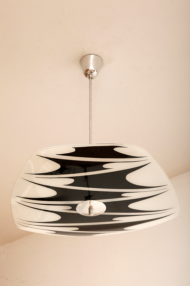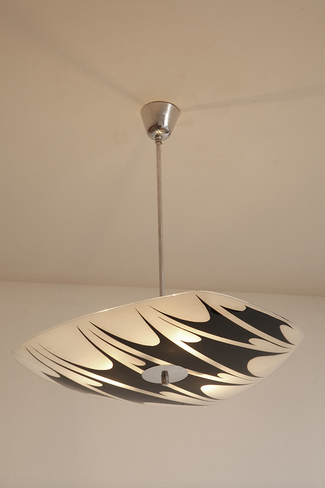Lampa sufitowa pochodzi z czechosłowackiej wytwórni Kamenický Šenov (prawdopodobnie) z lat 50/60.