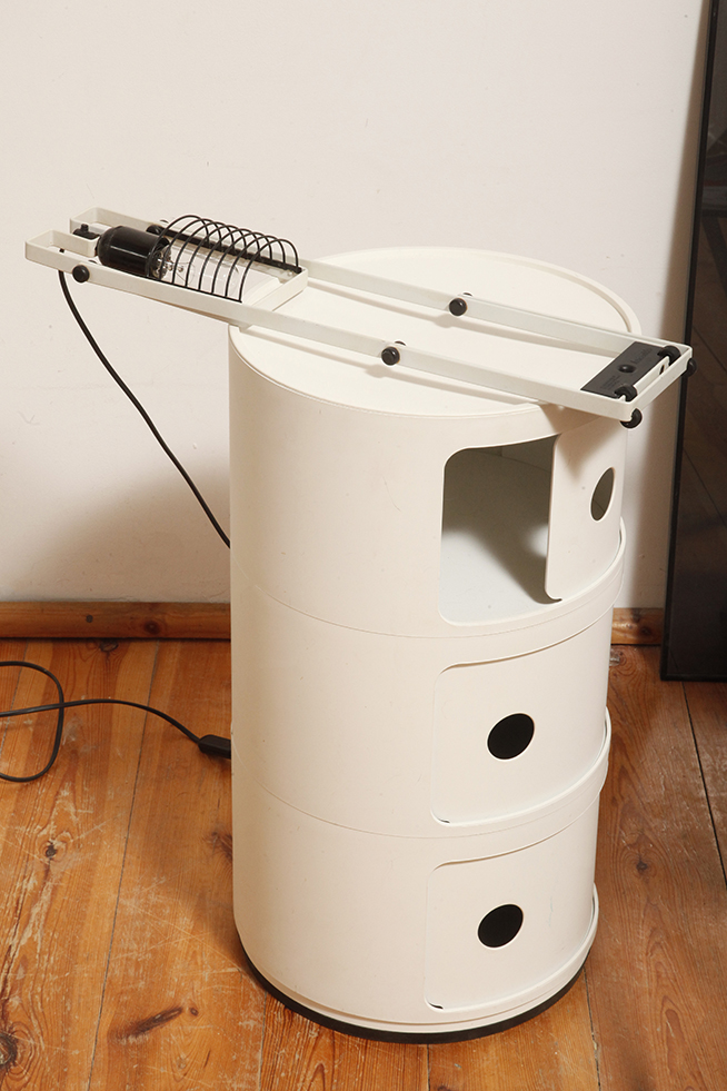 Prosty mechanizm działa poprzez otwieranie i zamykanie profili w kształcie litery C. Lampa jest wygodnie obsługiwana za pomocą przełącznika na kablu. Źródło światła z gwintem E27 znajduje się w solidnej ramce, która precyzyjnie je utrzymuje i wyrównuje.