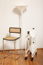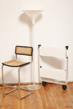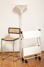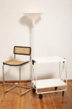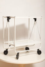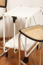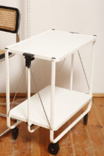 Biały metalowy mobilny składany wózek barowy z dwoma blatami, projekt Louis Lucien Lepoix dla FRZ/Metallwarenfabrik Germany, Niemcy, wzór z 1983 roku