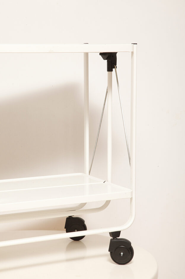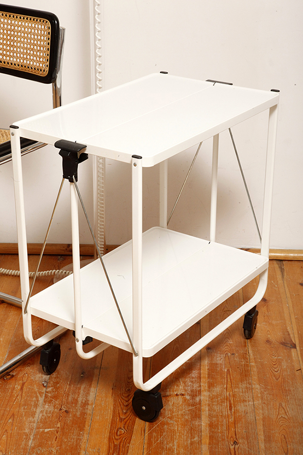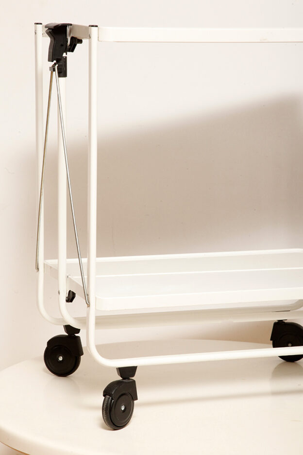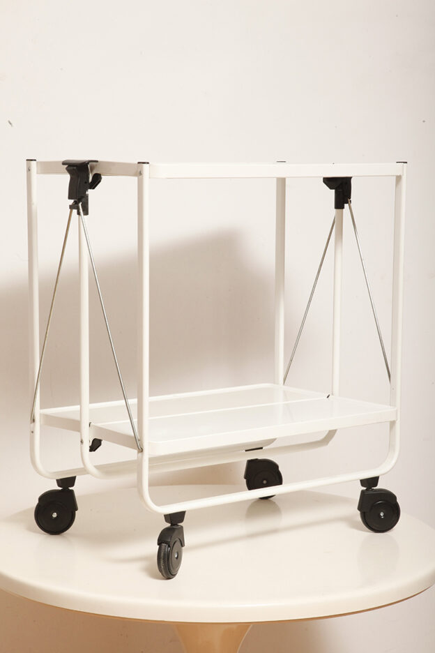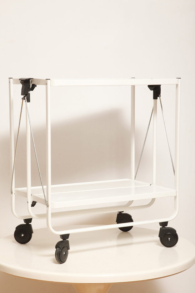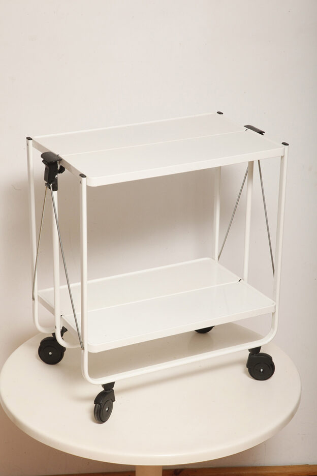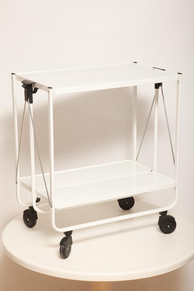 Biały metalowy mobilny składany wózek barowy z dwoma blatami, projekt Louis Lucien Lepoix dla FRZ/Metallwarenfabrik Germany, Niemcy, wzór z 1983 roku