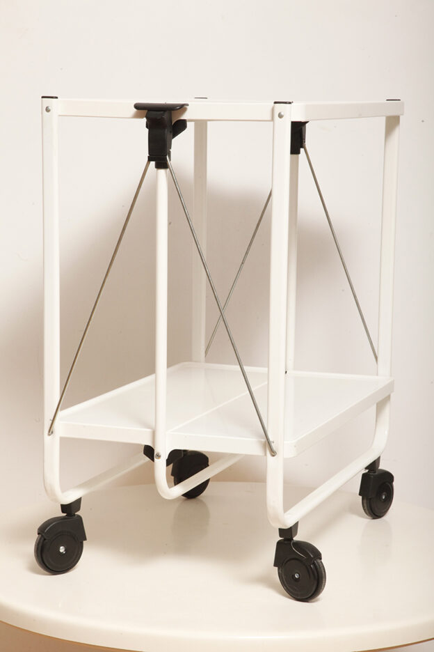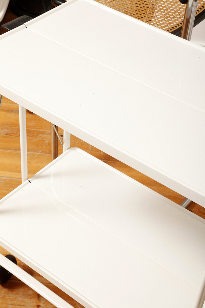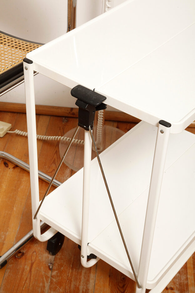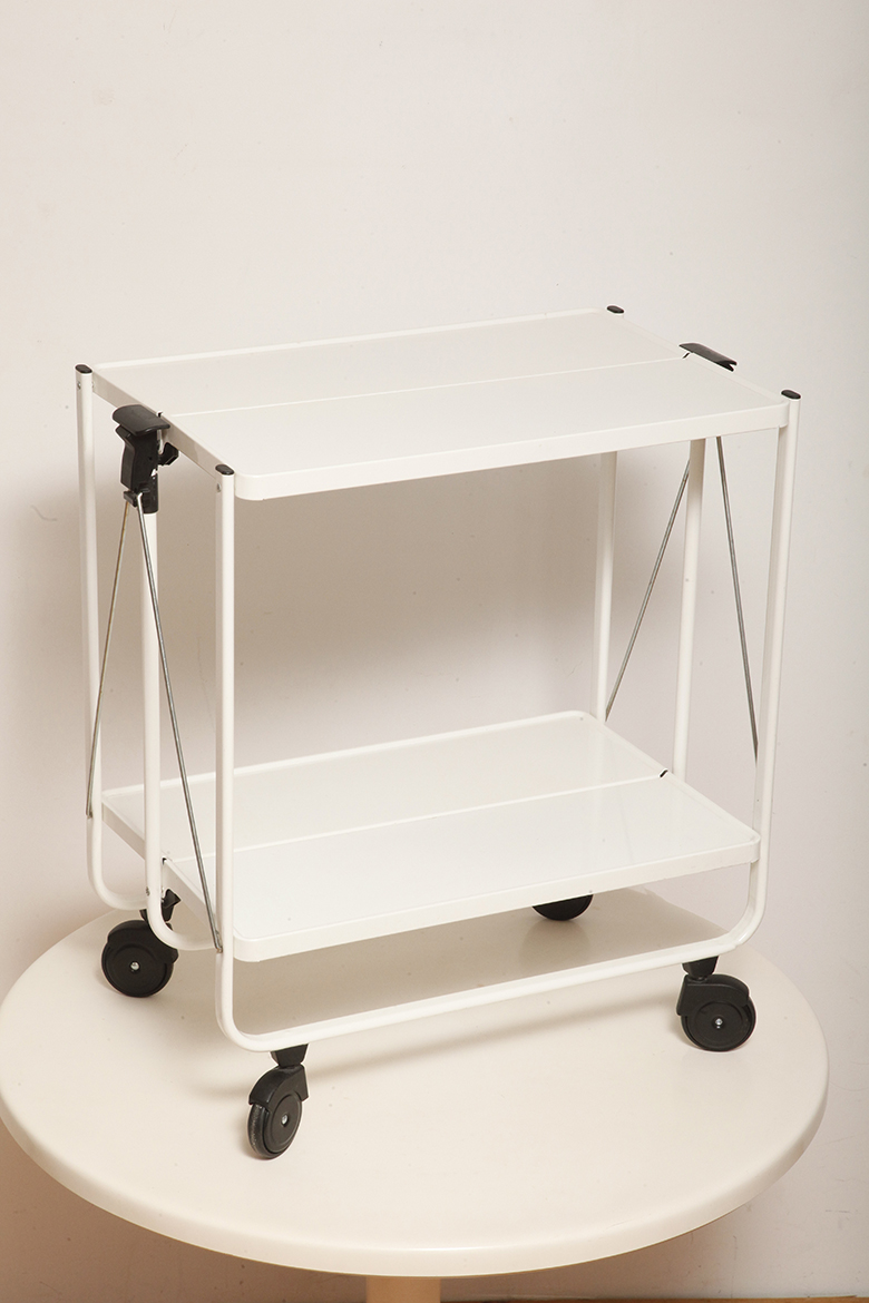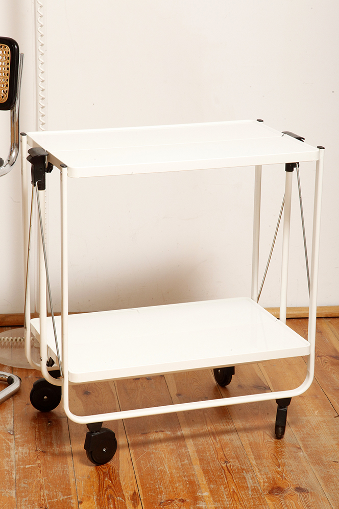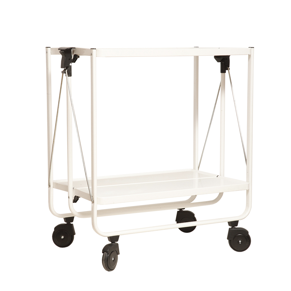 Biały metalowy mobilny składany wózek barowy z dwoma blatami, projekt Louis Lucien Lepoix dla FRZ/Metallwarenfabrik Germany, Niemcy, wzór z 1983 roku