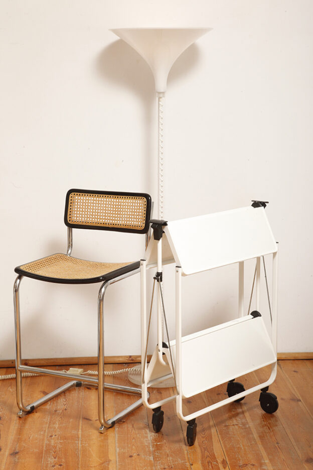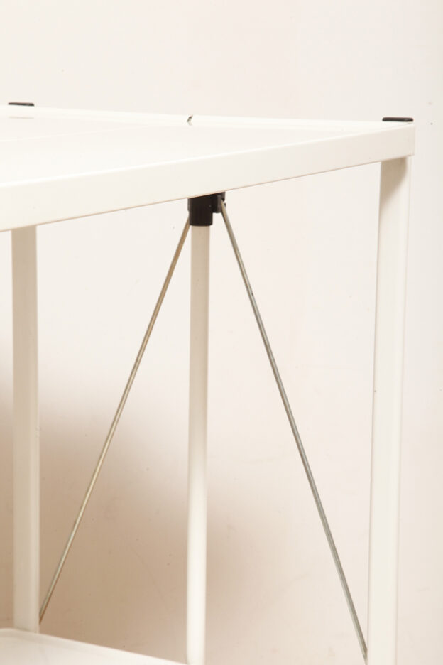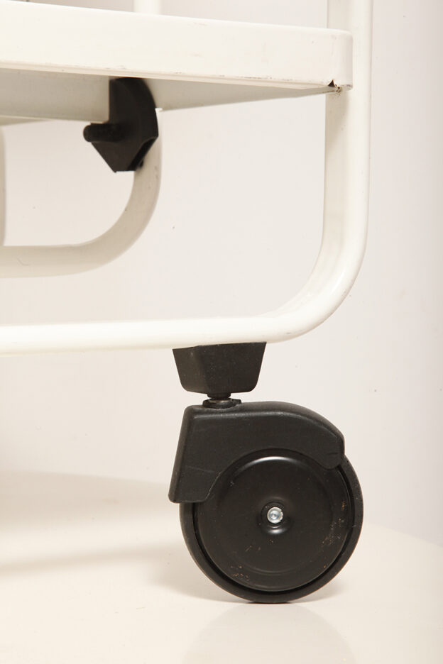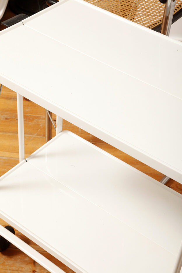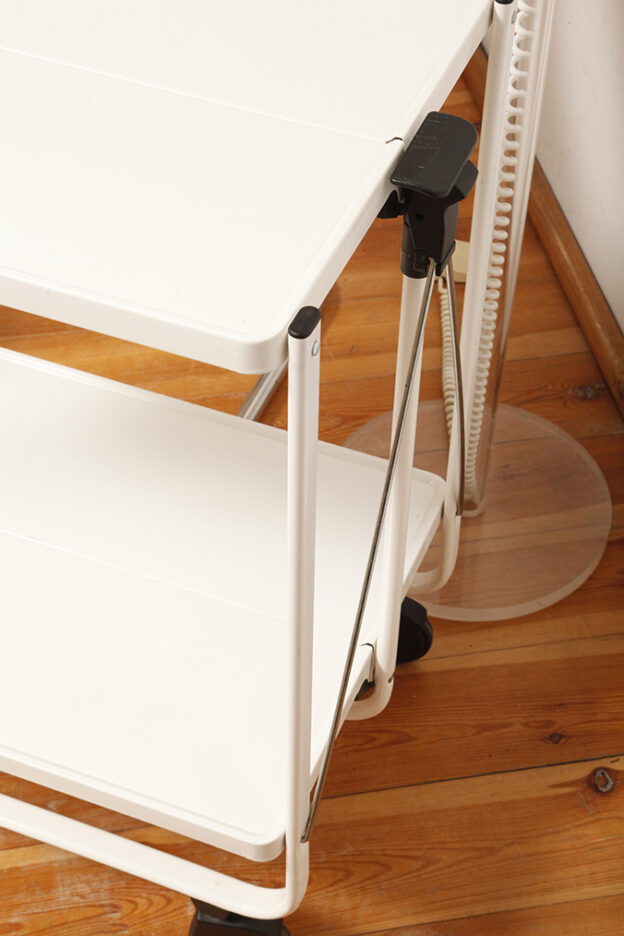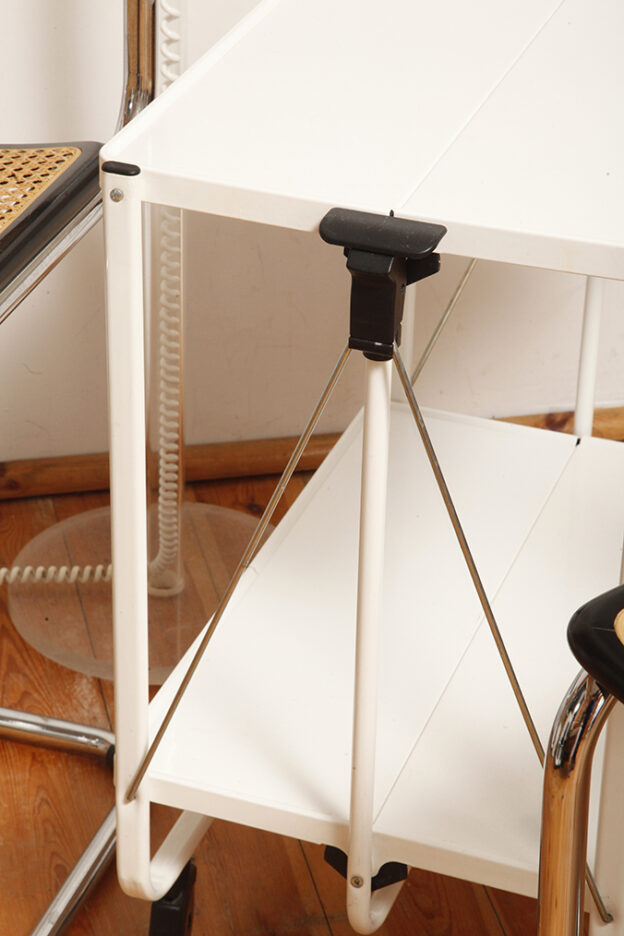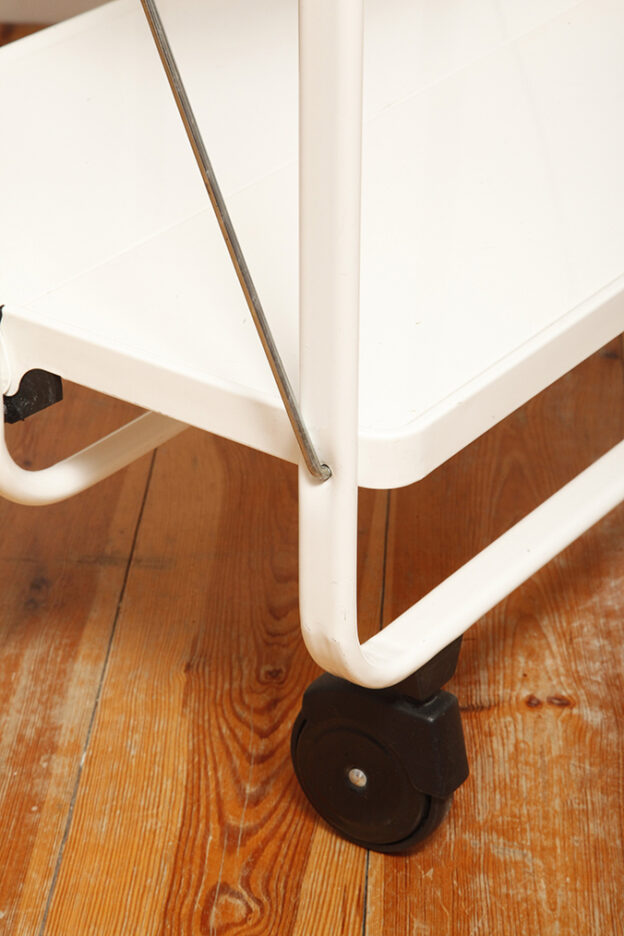 Biały metalowy mobilny składany wózek barowy z dwoma blatami, projekt Louis Lucien Lepoix dla FRZ/Metallwarenfabrik Germany, Niemcy, wzór z 1983 roku