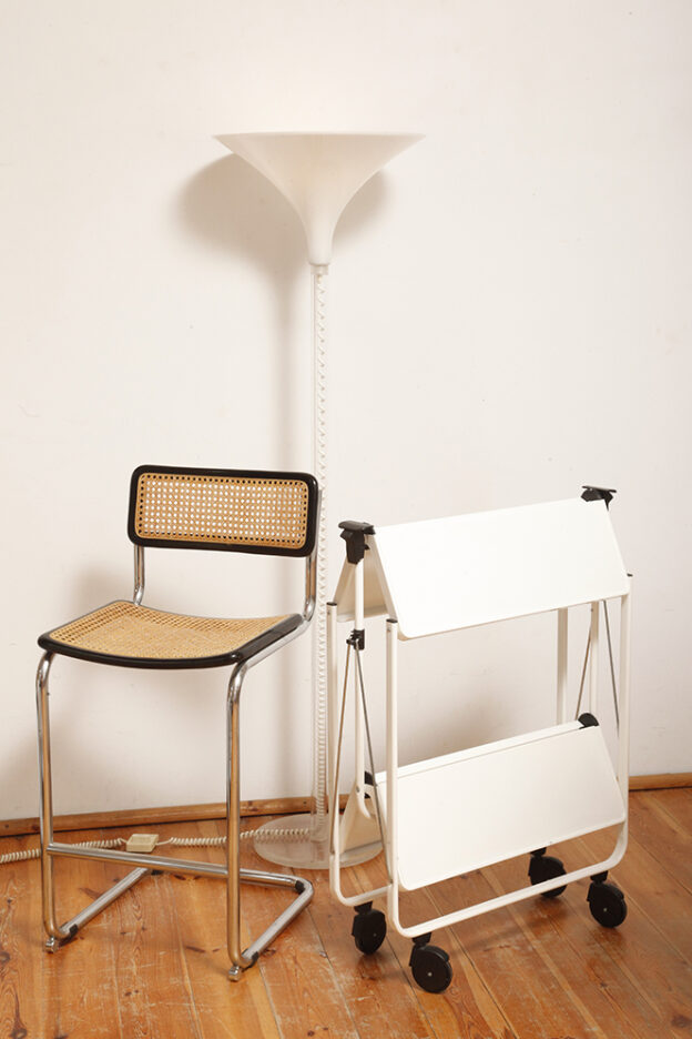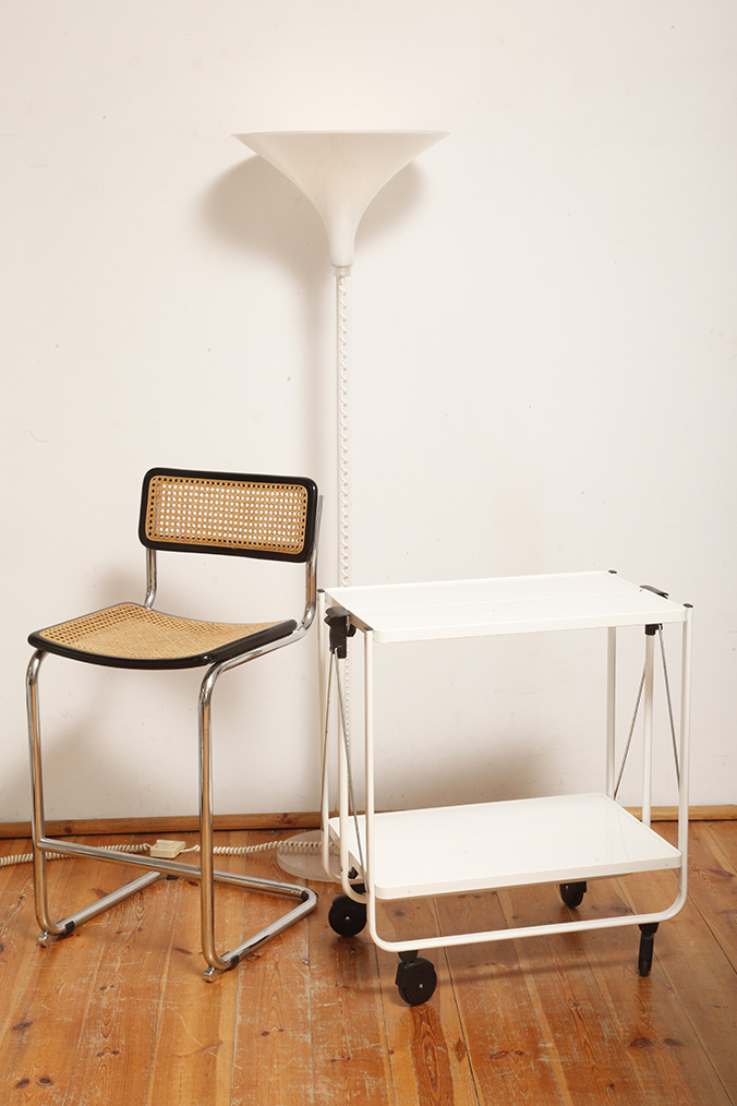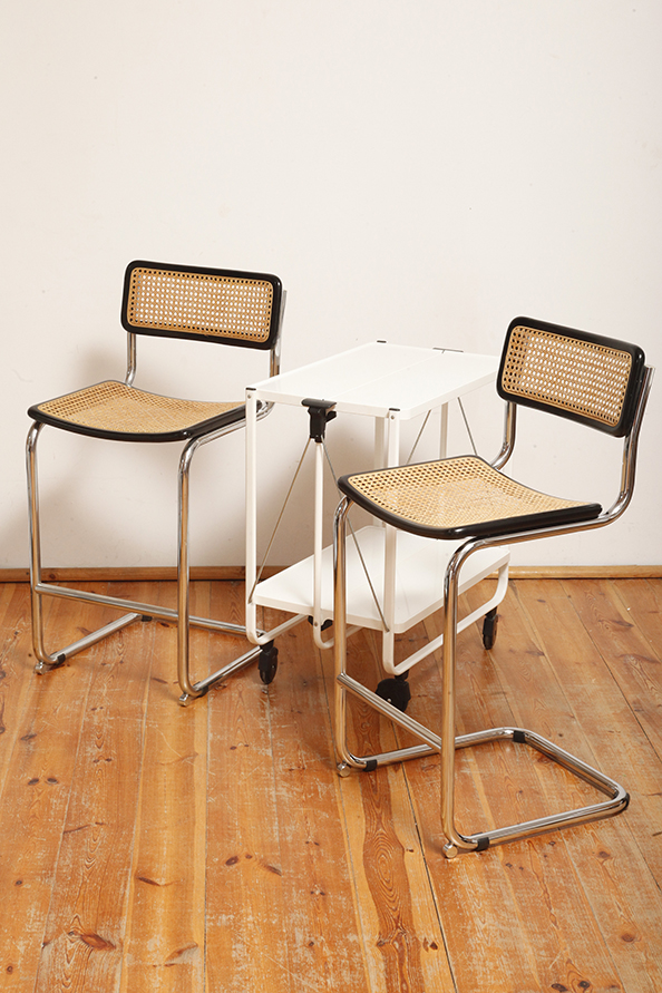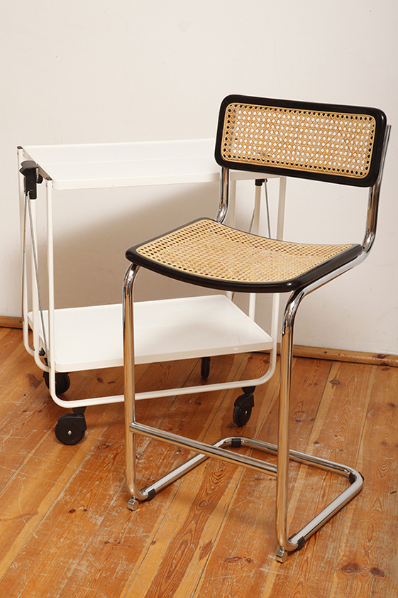 Zachowany w bardzo dobrym naturalnym stanie. Bez wgnieceń i odkształceń. Drobne powierzchniowe rysy na rurkach konstrukcyjnych mogą się zdarzyć. Wszak to wózek który pracował przez większość swojego życia. Nadal może być bardzo pomocny, a na dodatek na pewno przyciągnie uwagę gości zanim za dużo spożyją przygotowanych napojów.