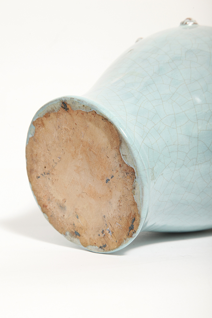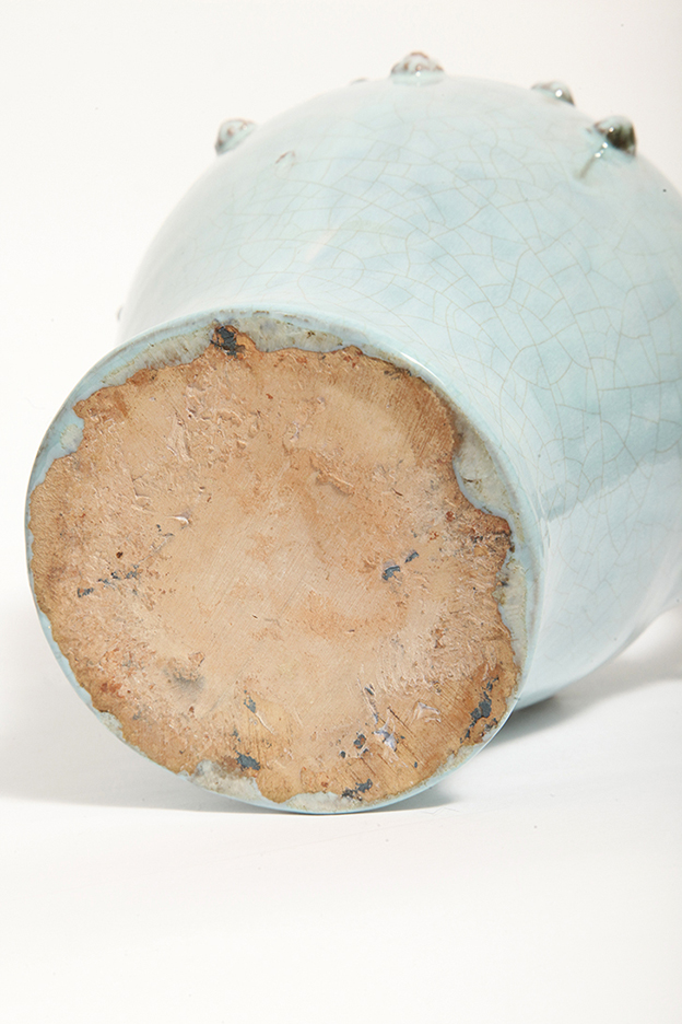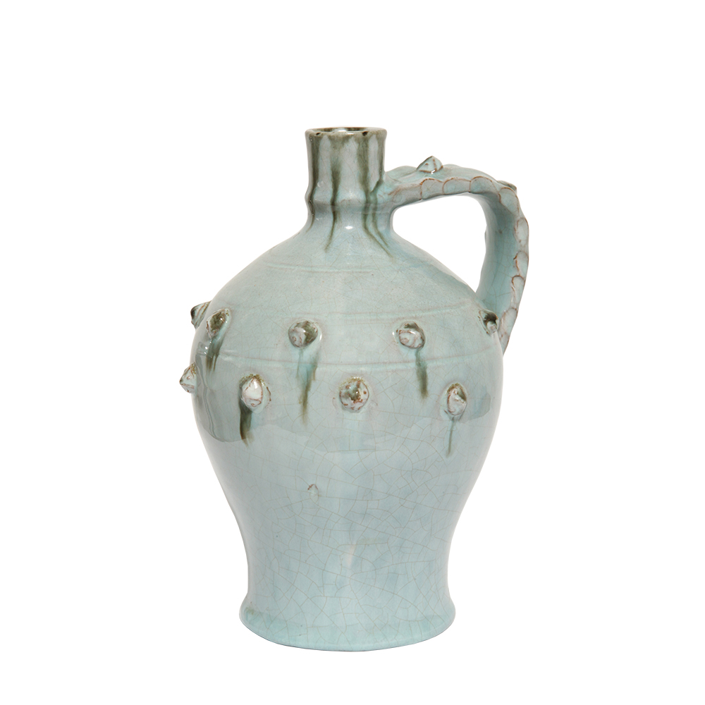 Strona główna » Sklep » Ceramika » Ceramiczny pękaty dzbanek/amfora/bukłak (21,5 cm) w morskim/jasnoniebieskim kolorze z uchem i wypustkami, Niemcy, lata 60.