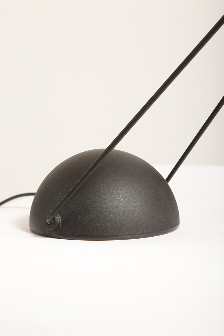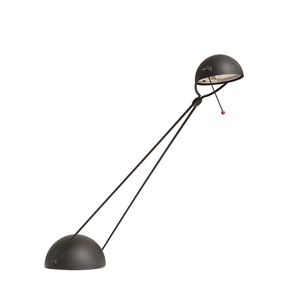 Czarna matowa jednopunktowa metalowa lampa biurkowa „Meridiana” z ruchomym ramieniem i kloszem, projekt Paolo Piva dla Stefano Cevoli, Włochy, wzór z 1983 roku