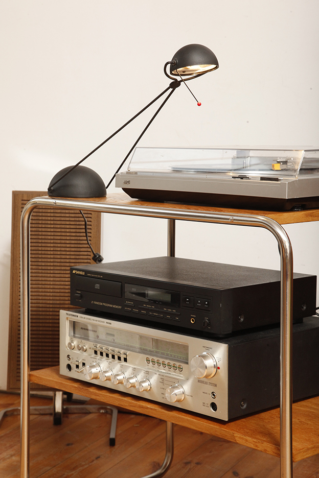 Lampa zachowana jest w dobrym/bardzo dobrym stanie vintage z naprawdę nieznacznymi śladami lat. A będzie ich miała jakieś … ho ho, a ze 40 na karku. Kar ma ruchomy i to na obie strony i wcale jej nie trzeba ruszać z miejsca, gdyż albowiem ramię tej lampy można pochylać na obie strony podstawy. A jak się doda do tego ruchomy klosz to już w zasadzie niczego więcej nie potrzeba. Do ruszania kloszem służy poręczne cieniutkie trzymadło z czerwoną kilką na końcu.
