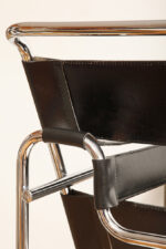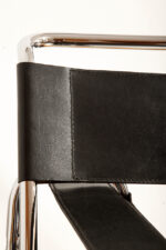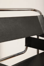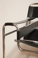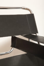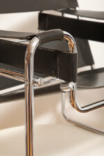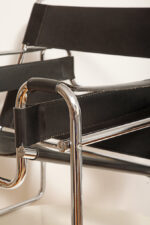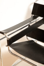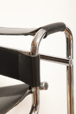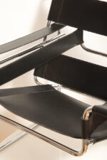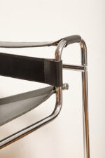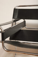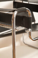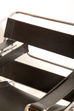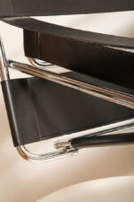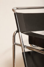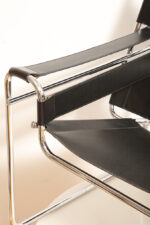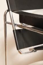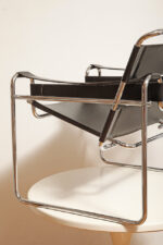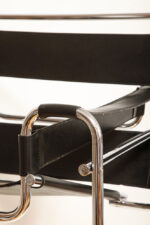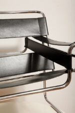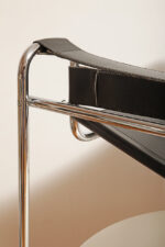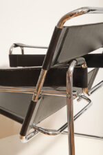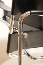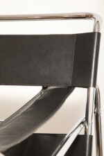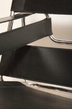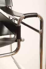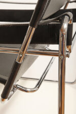 Czarny fotel „Wassily” / model B3 z konstrukcją z chromowanych rurek i naturalnej skóry, projekt Marcel Breuer, Bauhaus, Włochy, lata 80, wzór z 1925 roku,