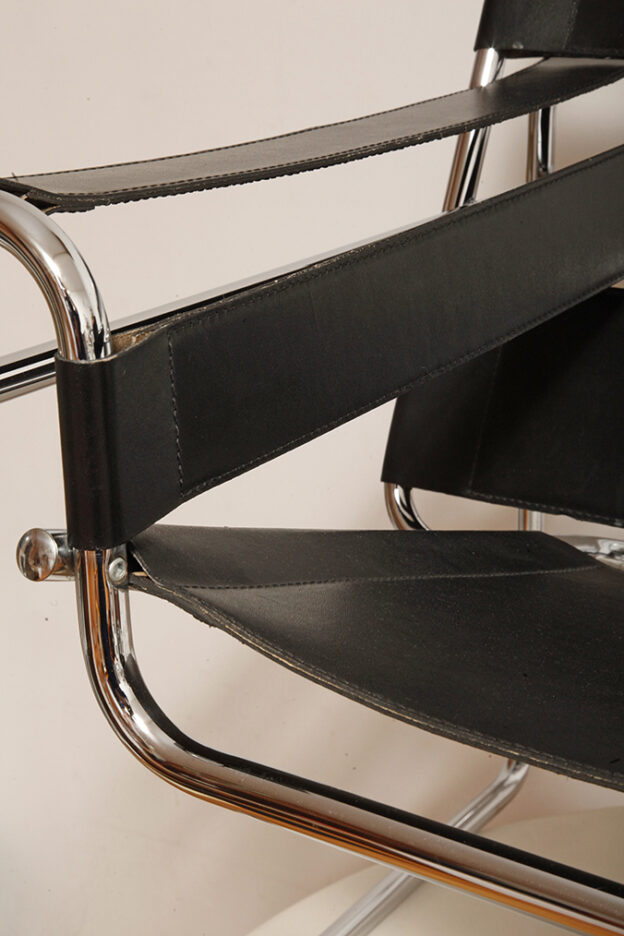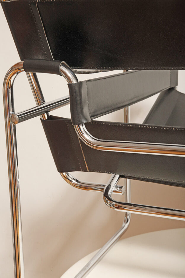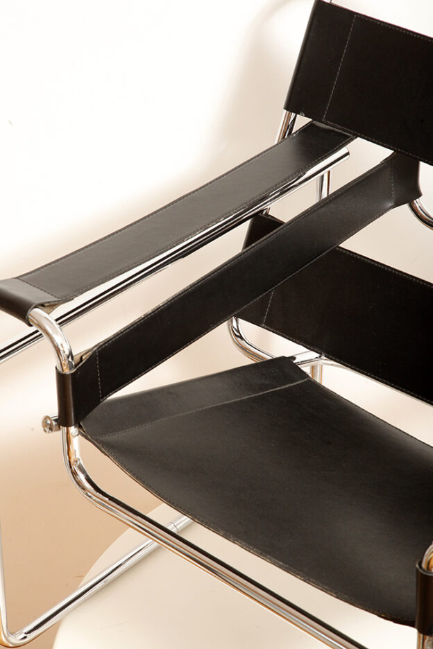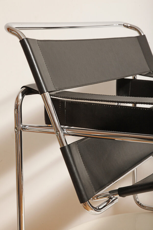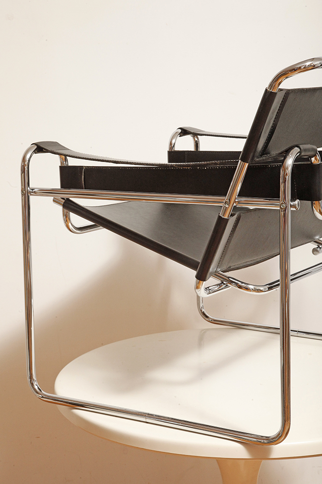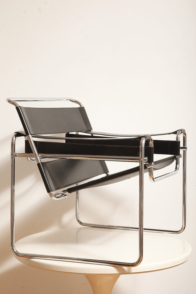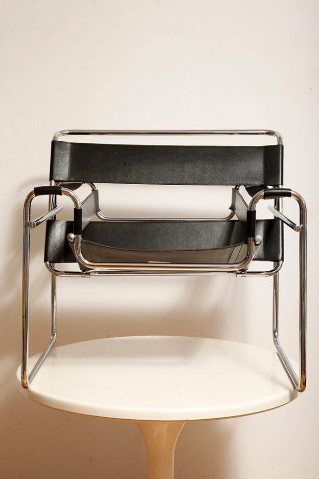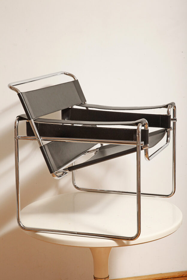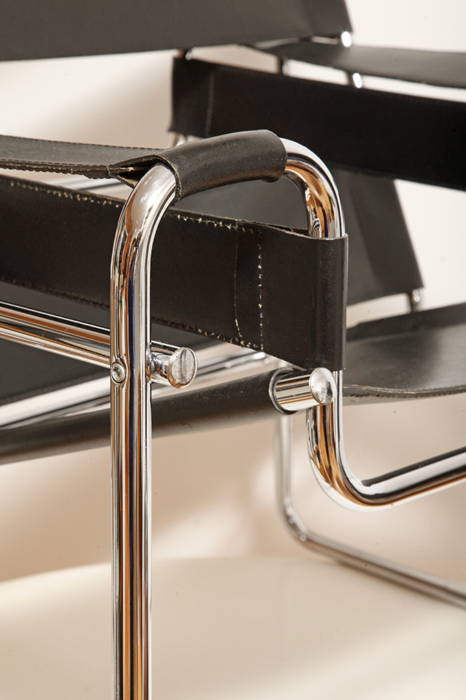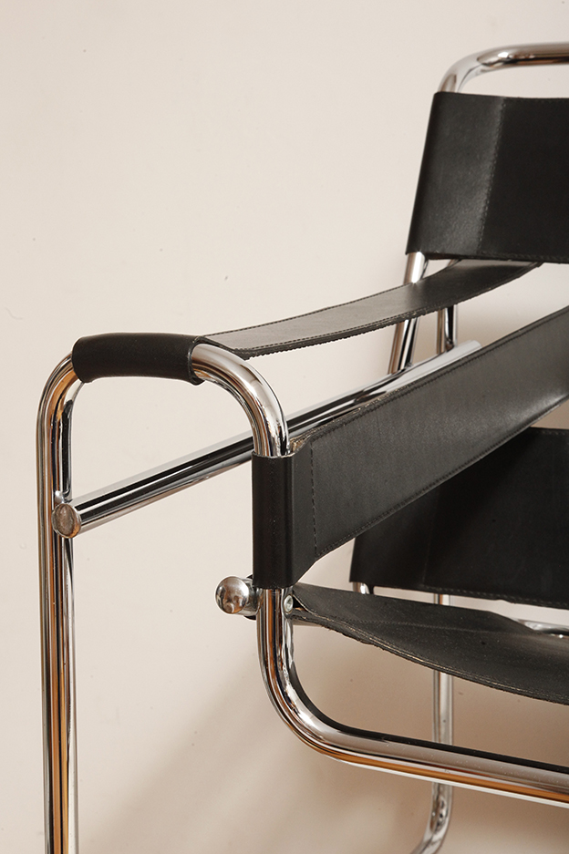 Marcel Breuer urodzony i wychowany w Peczu na Węgrzech, słynny modernistyczny architekt i projektant Marcel Breuer otrzymał stypendium na studia malarstwa i rzeźby w wiedeńskiej Akademii Sztuk Pięknych w 1920 roku, ale szybko je porzucił i złożył podanie do szkoły Bauhaus w Weimarze w Niemczech. Po ukończeniu tam kursów przygotowawczych, w latach 1921-1924 kształcił się w warsztacie meblarskim Bauhausu. Następnie kierował warsztatem meblarskim w nowym Bauhuas w Dessau, gdzie stworzył (1925-1926) fotel, który uznaje się za pierwszy fotel z rur stalowych, zaprezentowany w 1927 roku jako fotel klubowy typu B3 Steel (później przemianowany na Wassily na cześć nauczyciela Bauhausu, Wasilija Kandinskiego).