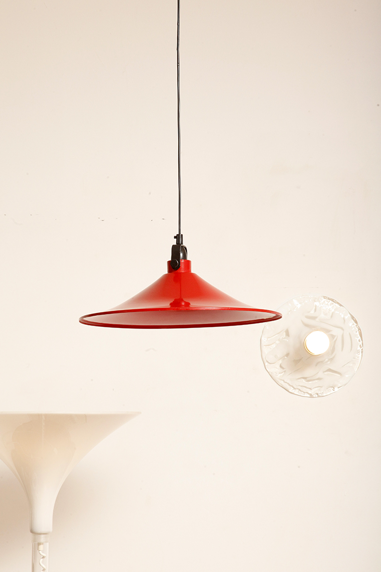 Nieco skandynawska w swoim wyglądzie metalowa świecąca jedną żarówką z dużym gwintem, czyli E27 lampa aż z Finlandii rodem. I powiem z ręką na sercu to pierwszy bodaj w naszym sklepie przedmiot vintage z tego kraju.