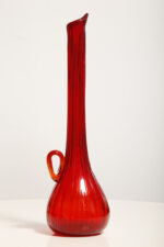 Czerwony szklany ręcznie formowany wazon/naczynie dekoracyjne/karafka, projekt Jerzy Słuczan-Orkusz, Krakowski Instytut Szkła i Ceramiki, lata 70.