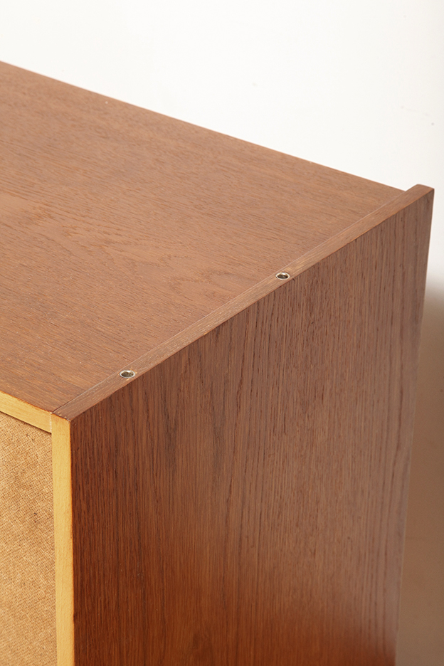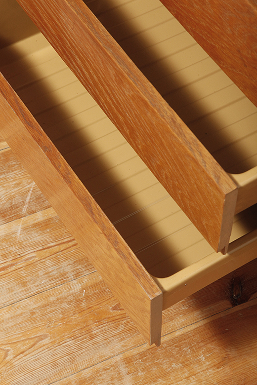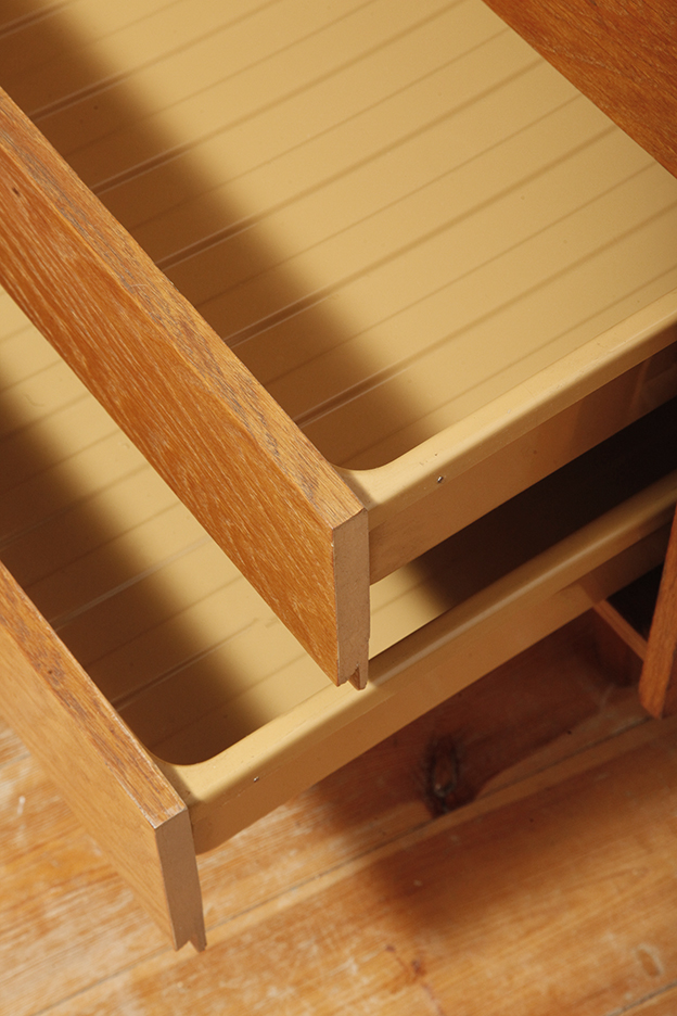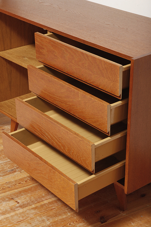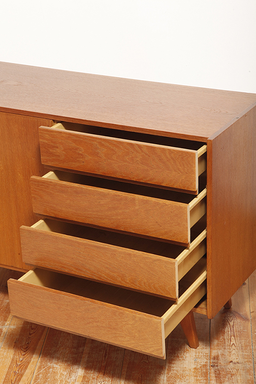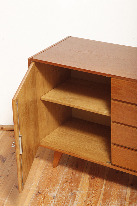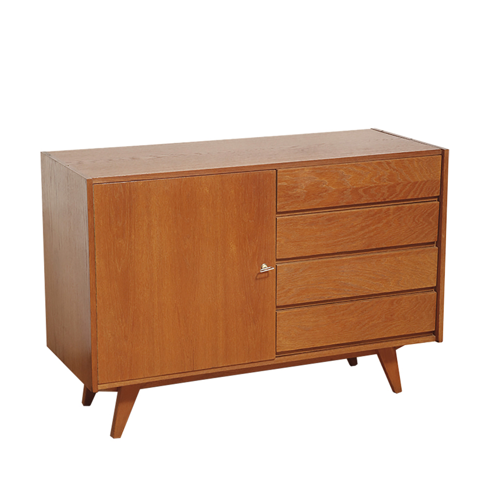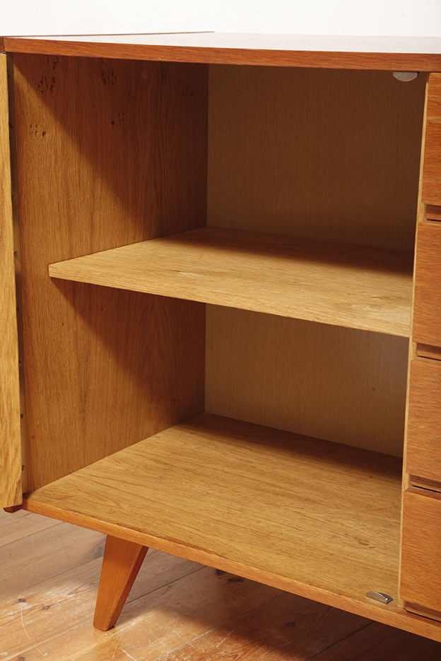 Dębowa szafka/komoda z czterema głębokimi szufladami po prawej stronie, TYP U 458, projekt Jiri Jiroutek dla Interier Praha, Czechosłowacja, lata 60.