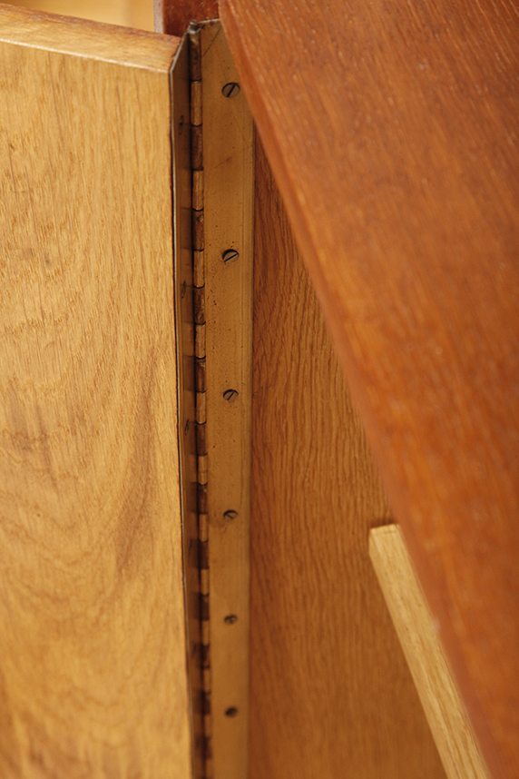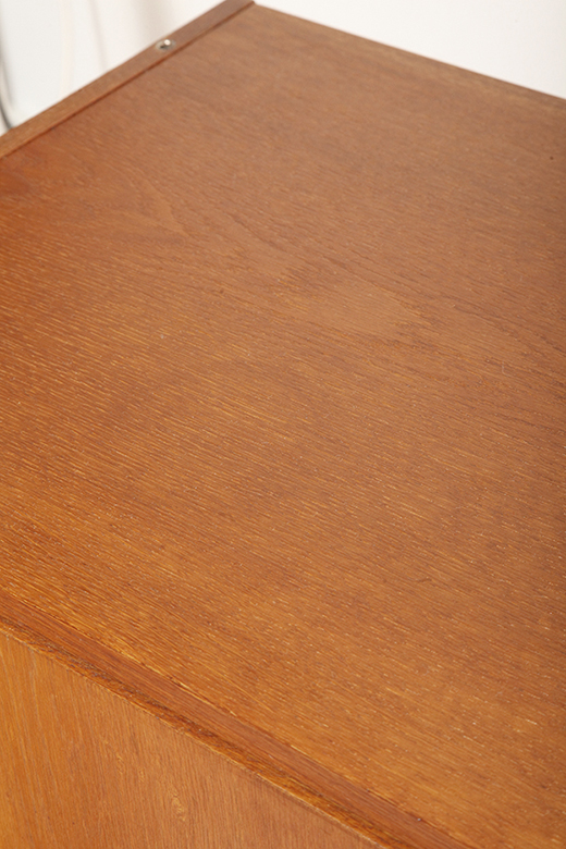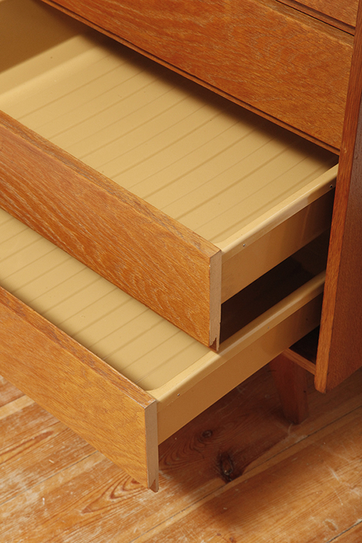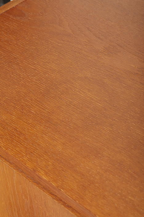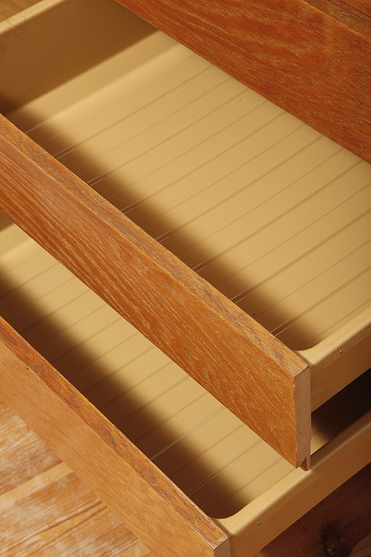Całkowicie oczyszczona ze starych warstw, na nowo pokryta olejowoskiem, dzięki czemu cieszy oko świeżością. Drobne rysy w ilości 2-3 widoczne na froncie dwóch szuflad z lewej strony. Schowały się po poczyszczeniu, ale ciut je jeszcze widać (zdjęcia).