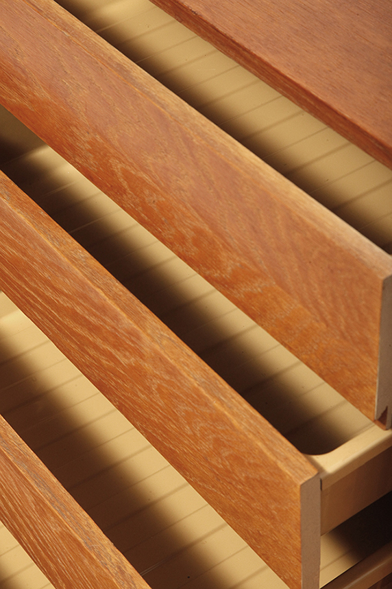 Komoda w najczystszej postaci. Funkcjonalna, zwarta, zgrabna. Osiem pojemnych, głębokich szuflad w dwóch rzędach. Komory szuflad plastikowe, co gwarantuje ich czystość i mocno ułatwia zadbanie o ich higienę.