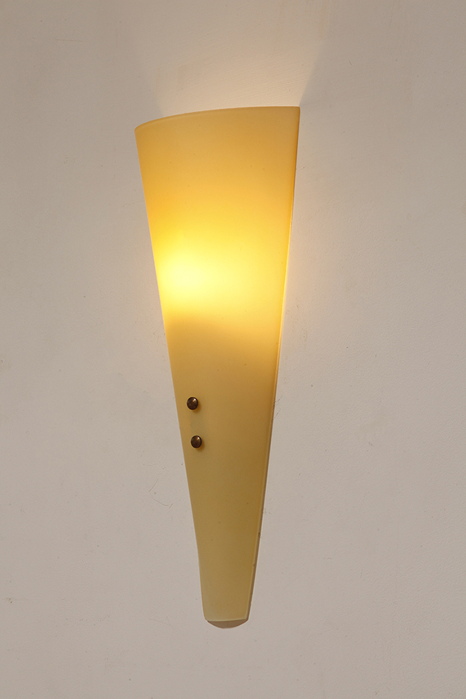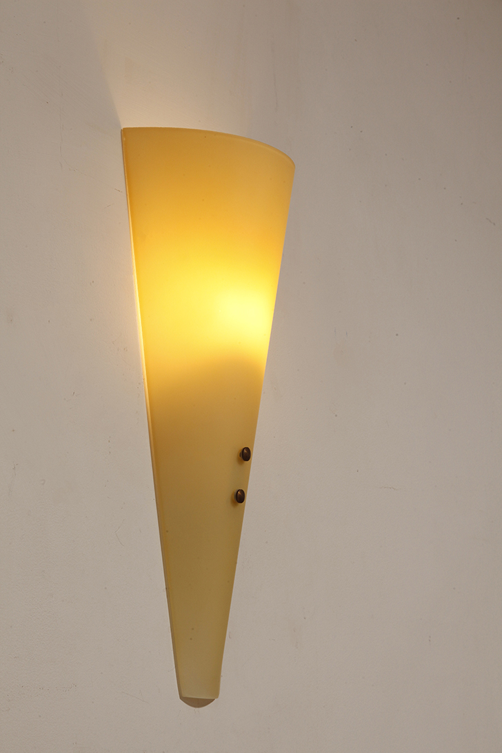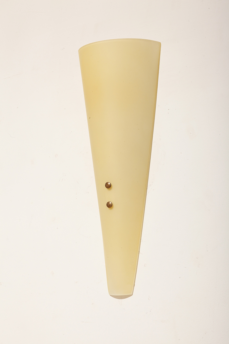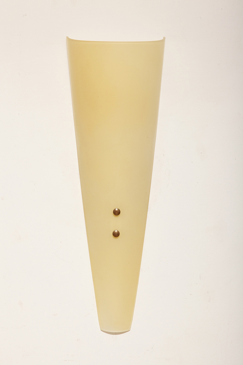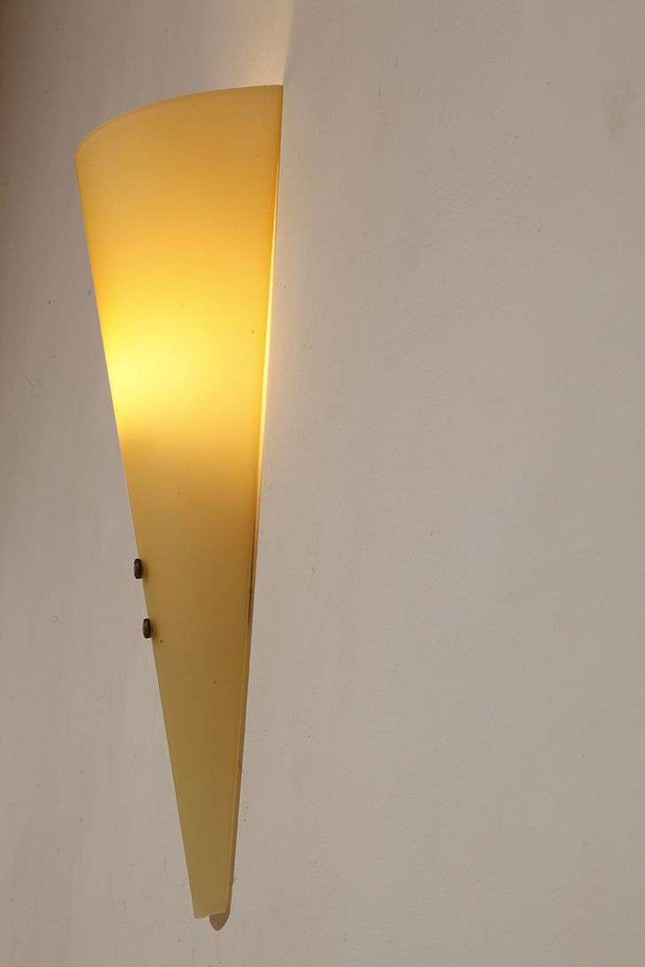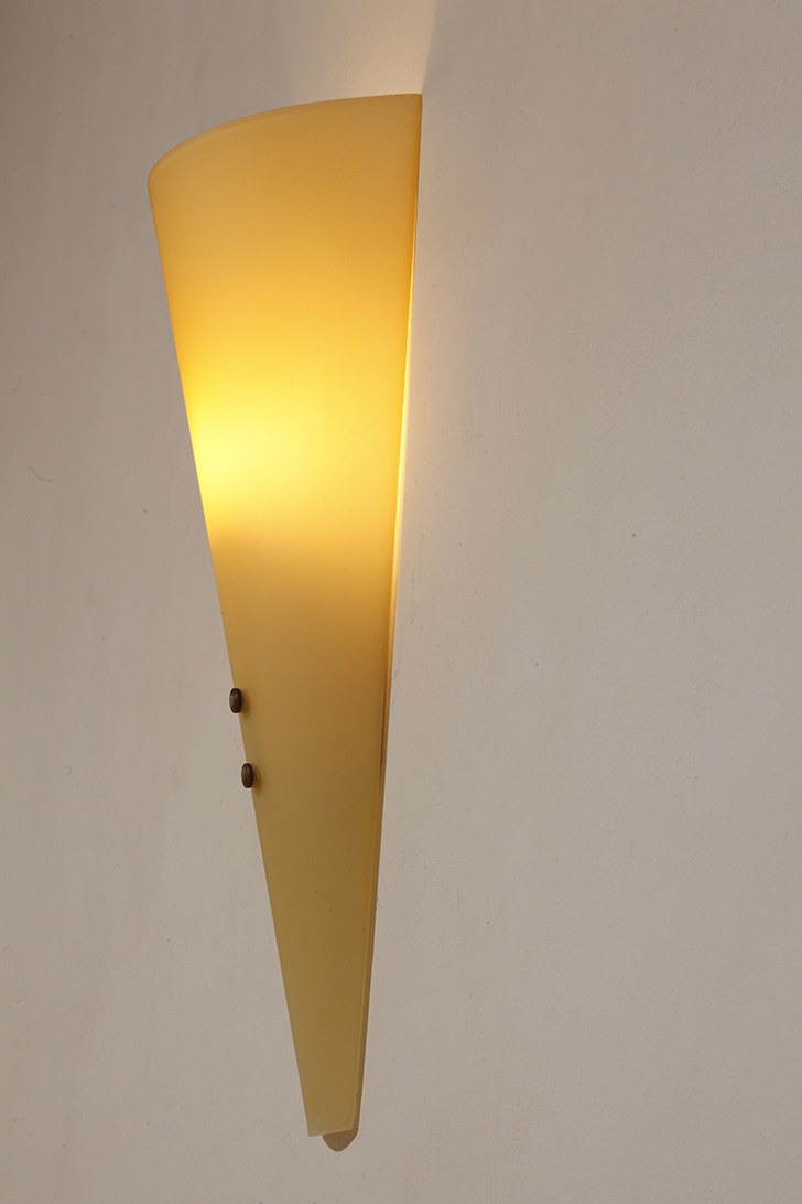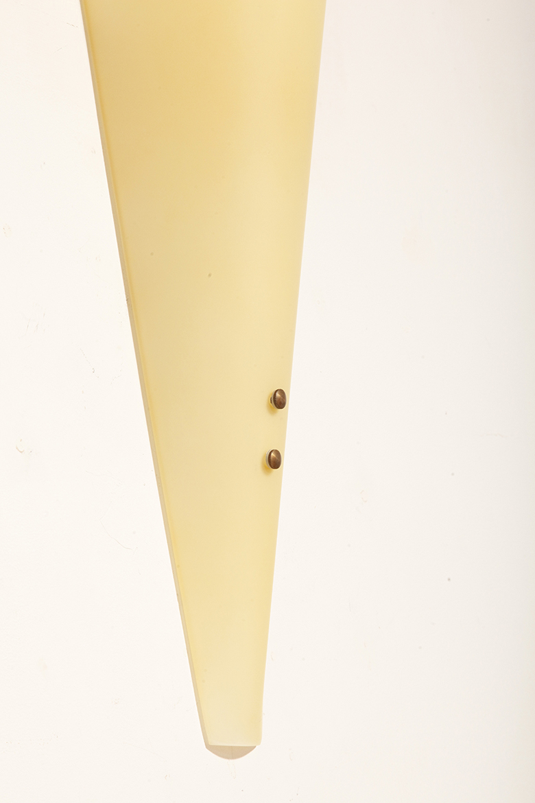 A tu szanowni Państwo mamy duży kinkiet Holenderskiej firmy Steinhauer wykonane z jasnożółtego szkła opalowego osadzonego metalowej oprawie.