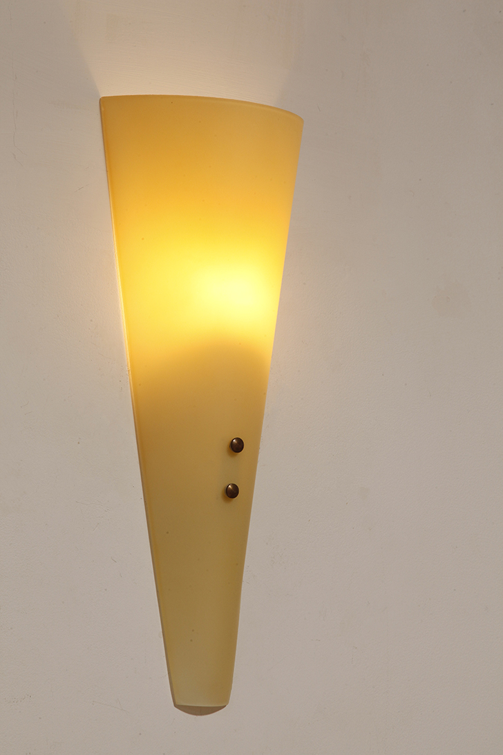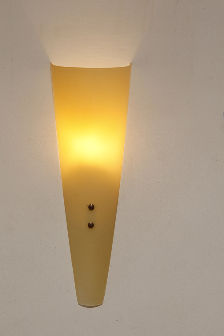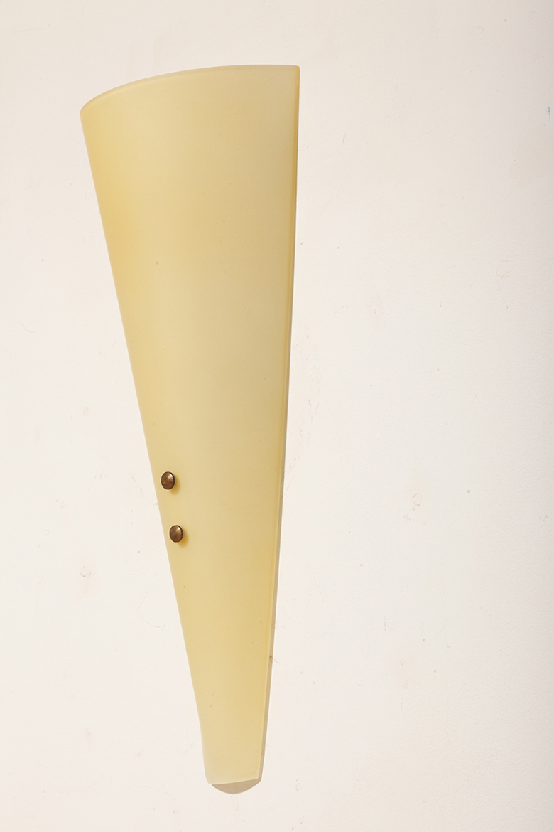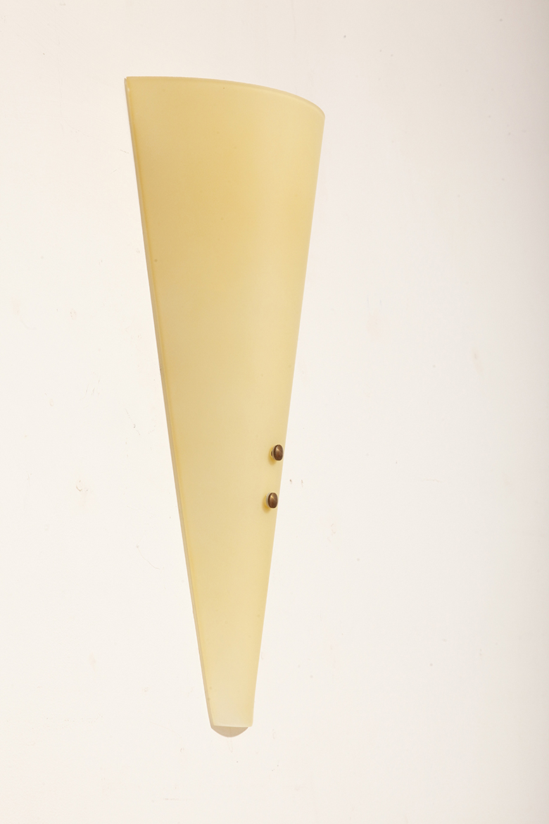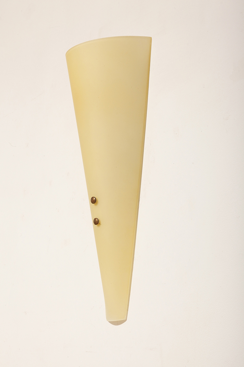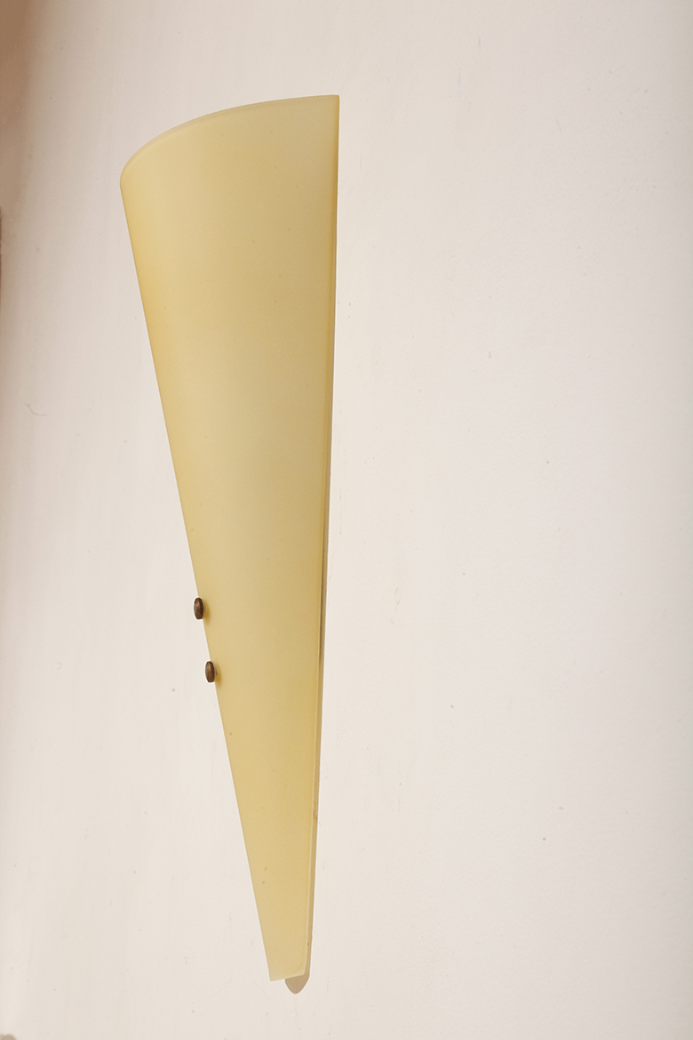 A tu szanowni Państwo mamy duży kinkiet Holenderskiej firmy Steinhauer wykonane z jasnożółtego szkła opalowego osadzonego metalowej oprawie.