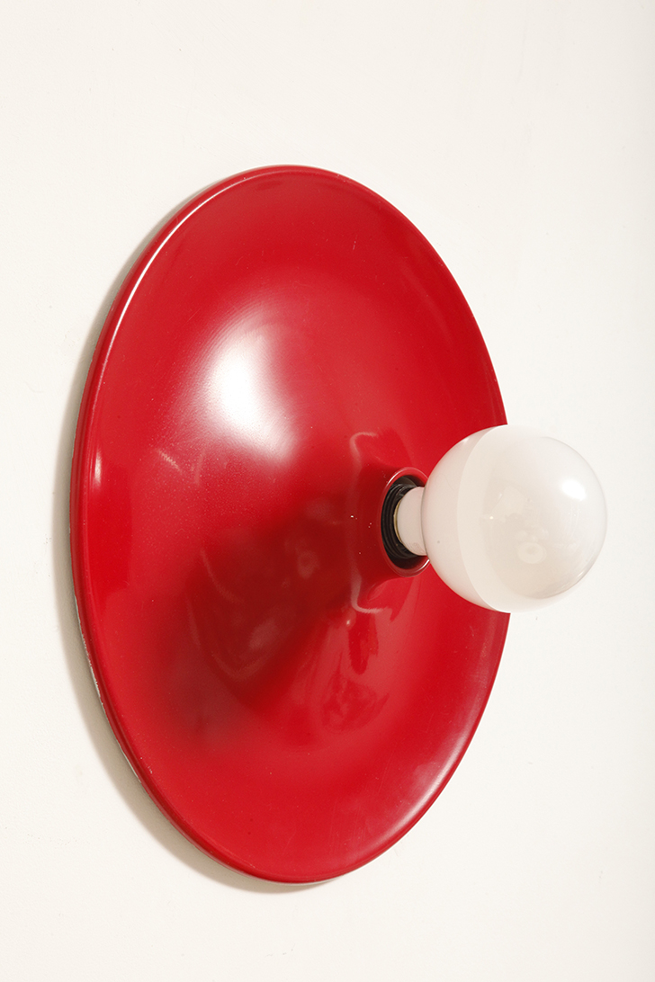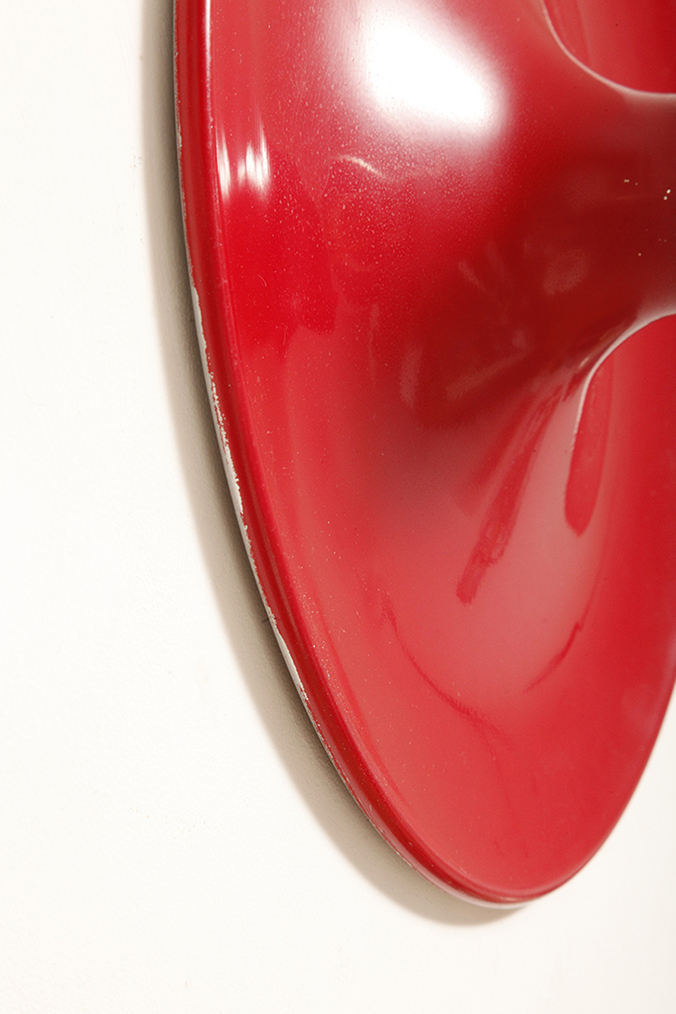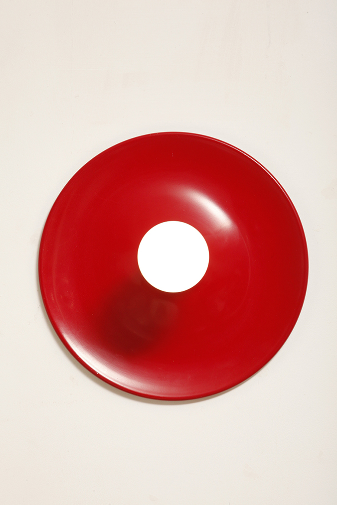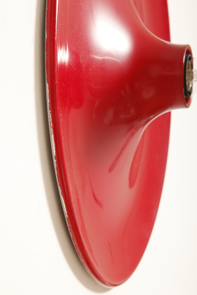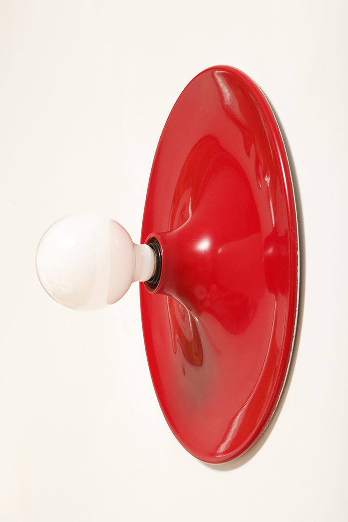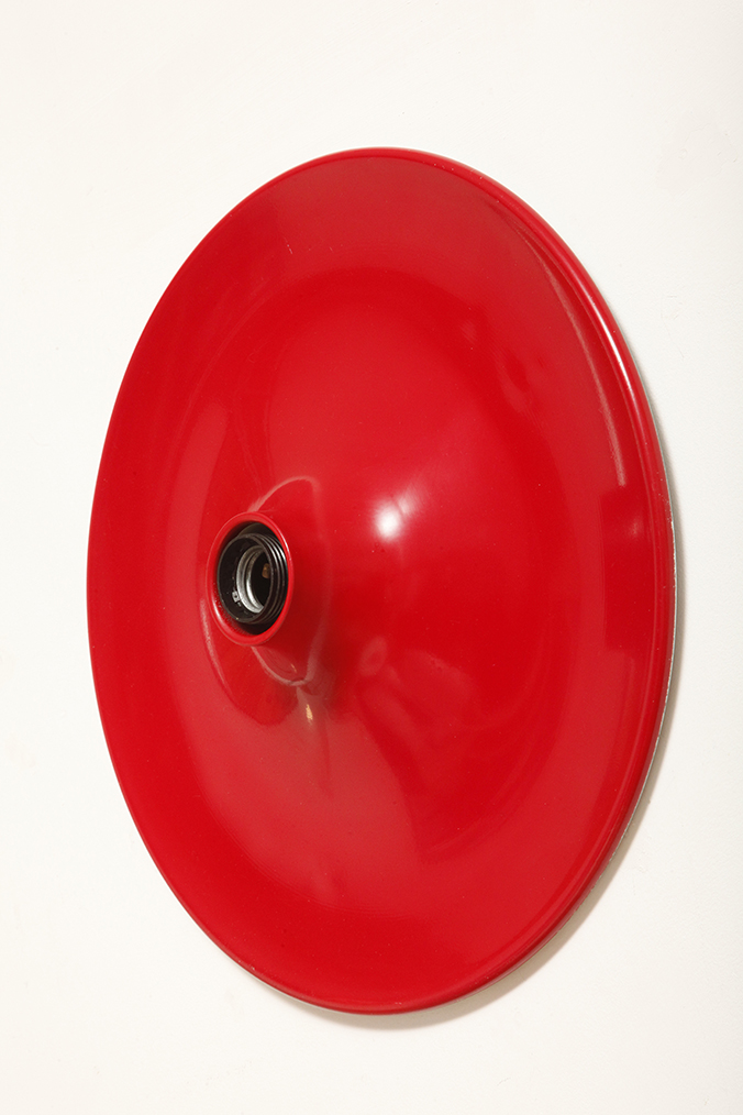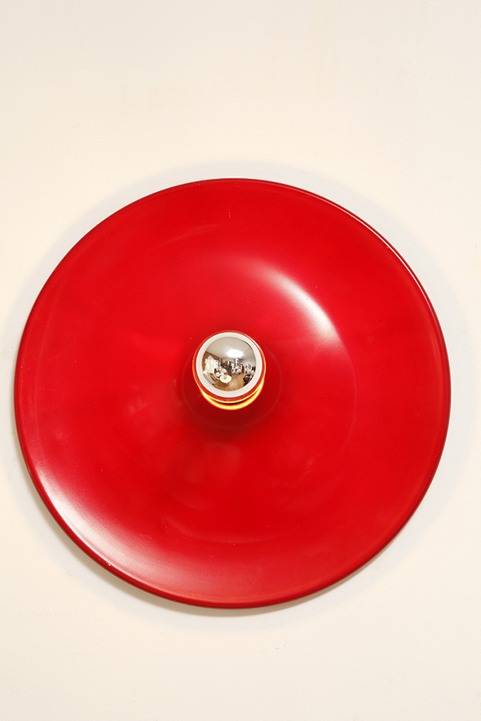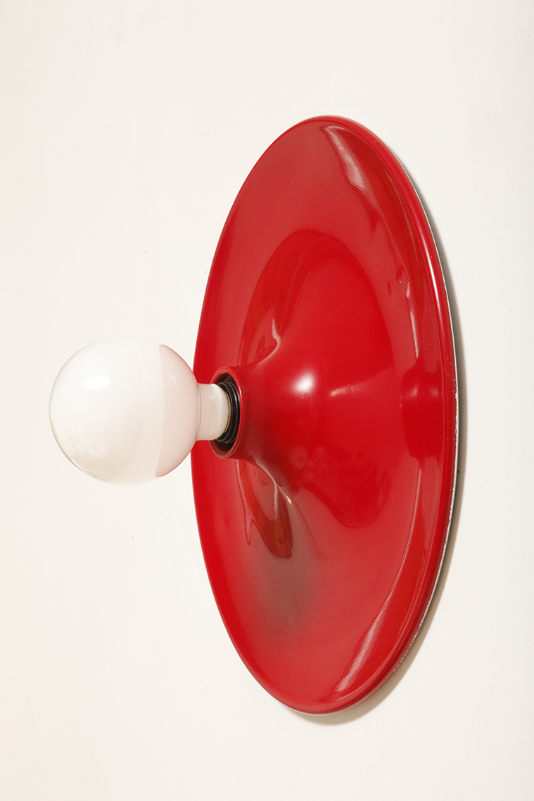 Duża jednopunktowa okrągła lakierowana na czerwono w połysku aluminiowa lampa ścienna/kinkiet, Space Age, Włochy, lata 70