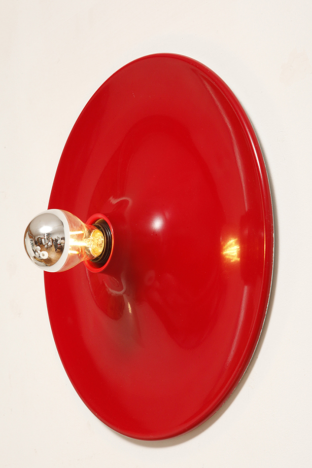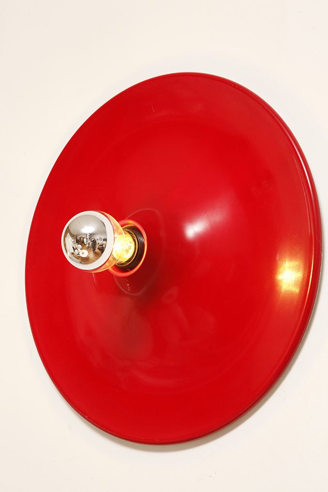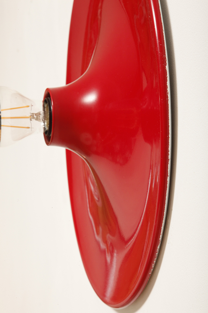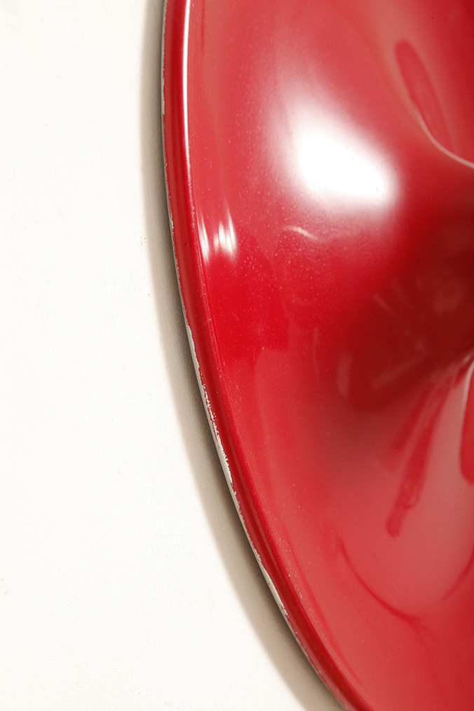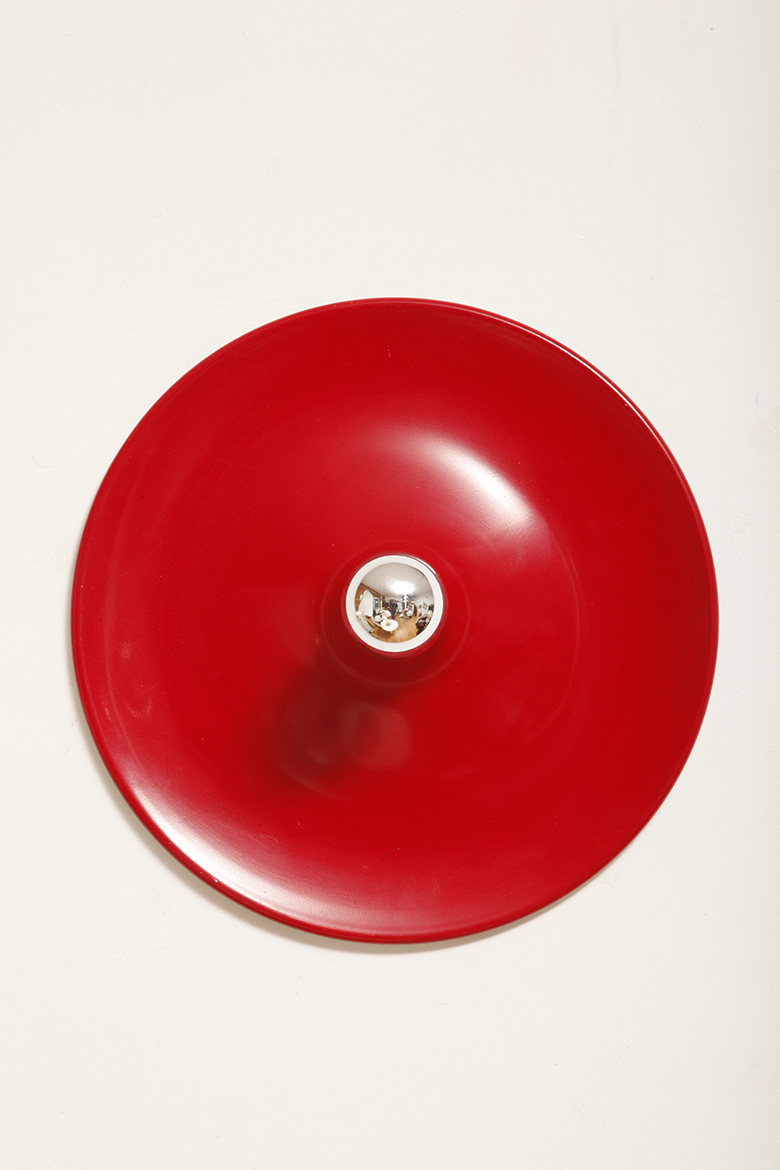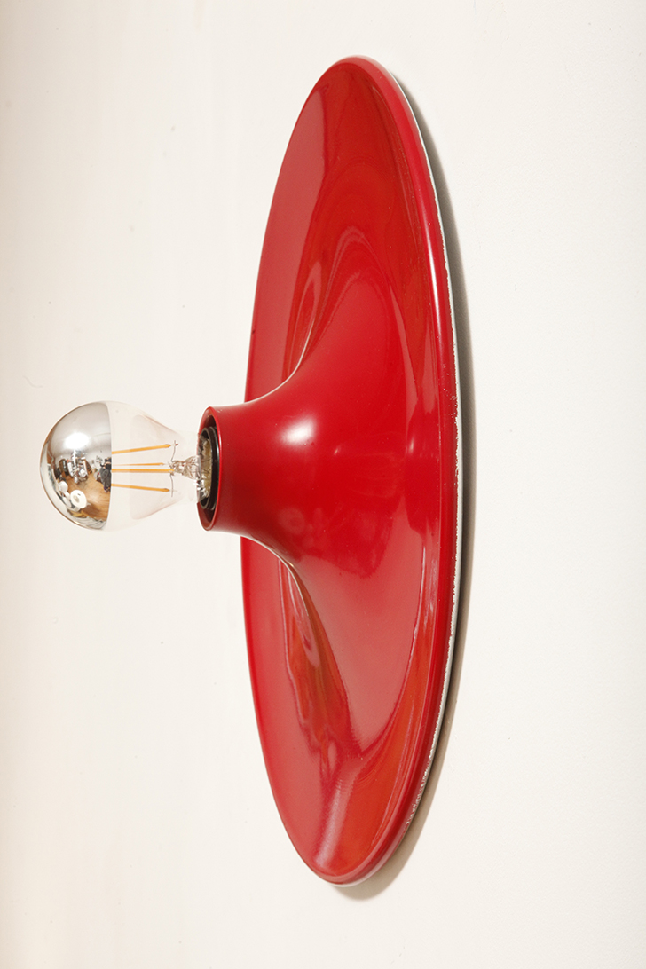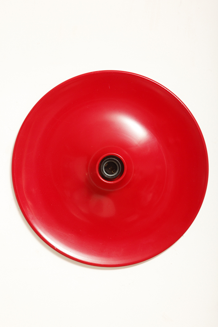 Duża jednopunktowa okrągła lakierowana na czerwono w połysku aluminiowa lampa ścienna/kinkiet, Space Age, Włochy, lata 70