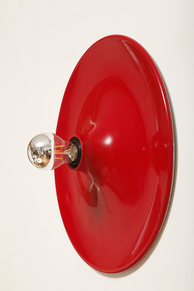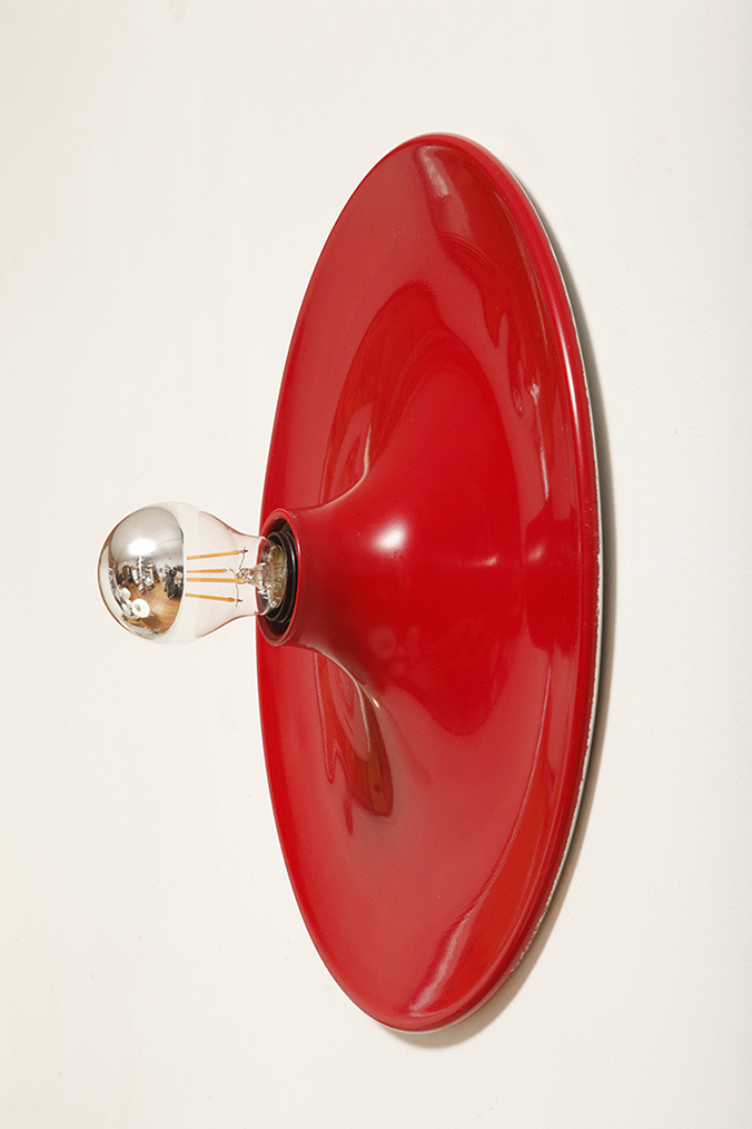 Aluminiowy okrąg w taki sposób wyprofilowany że odbija całym sobą światło z żarówki umieszczonej centralnie.