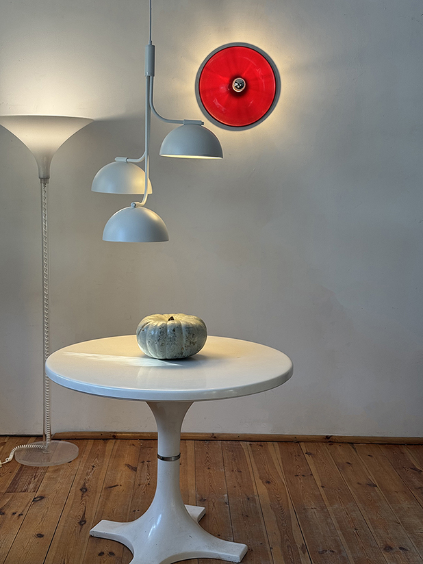 Klasyk Space Age. Lampa zarówno obsługuje pomieszczenie światłem użytkowym jak i dekoracyjnym/estetycznym. Co najmniej dwa w jednym.
