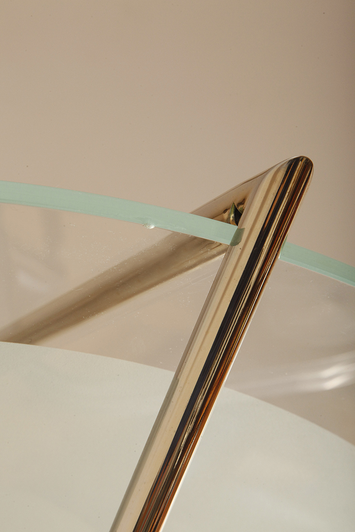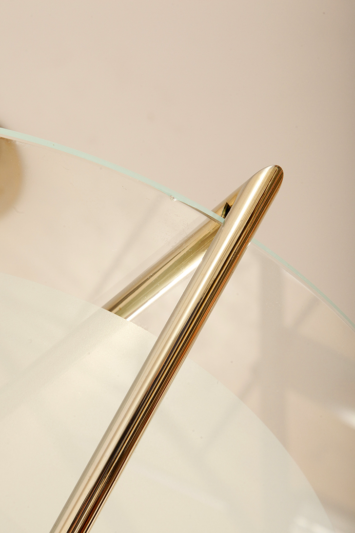 Luigi Fontana założył w Mediolanie w 1881 roku swoją tytułową firmę zajmującą się produkcją szkła płaskiego. Odnosząc coraz większe sukcesy w sektorze budowlanym, który przyciągał nowych inwestorów, w tym międzynarodową firmę szklarską Saint-Gobain, Luigi Fontana & Partners otwierał sklepy w kraju i za granicą, stając się jeden z największych producentów szkła we Włoszech. W latach 1930–1932, mając nadzieję na podbój sektora szkła artystycznego i dekoracji, Fontana zatrudnił słynnego włoskiego architekta i projektanta Gio Pontiego (1891–1979), a następnie dyrektora artystycznego firmy ceramicznej Richarda Ginori, aby konsultował i tworzył nowe projekty dla rynku krajowym, co doprowadziło do powstania kultowego obecnie modelu wiszącego Ponti 0024 (1931) i lampy stołowej Bilia (1931/32). W 1933 roku w wyniku tej współpracy powstał #Fontana Arte, oddział huty szkła artystycznego firmy Fontana. W tym samym roku #Fontana Arte przejęła warsztat szklarski włoskiego projektanta Pietro Chiesy (1892-1948), Bottega di Pietro Chiesa, a Ponti i Chiesa podzielili się rolą dyrektora artystycznego rozwiniętej firmy. Wkrótce zyskały szerokie uznanie za różnorodne wyrafinowane przedmioty szklane, obejmujące witraże, oświetlenie, lustra dekoracyjne, elementy rzeźbiarskie, a nawet meble wykonane ze szkła, z których większość charakteryzowała się niezwykłą jak na tamte czasy czystością formy. Wczesne sukcesy obejmowały stolik kawowy Fontana firmy Chiesa (1932), wazon Cartoccio (1932), lampę podłogową Luminator (1933) i serię 006 (1933/37). W latach czterdziestych i wczesnych pięćdziesiątych Fontana Arte opracowała kilka nowych produktów, opierając się zamiast tego na iteracjach projektów Chiesy z lat trzydziestych XX wieku. Ten twórczy konserwatyzm zrodził się ze zniszczeń lat wojny i zawirowań gospodarczych, które bezpośrednio po nich nastąpiły. Kilka prywatnych zamówień od hoteli, biur i muzeów pomogło utrzymać firmę do czasu powojennego ożywienia gospodarczego we Włoszech. W 1954 roku urodzony we Francji projektant Max Ingrand (1908-1969) objął stanowisko dyrektora artystycznego i zapoczątkował nową erę mody i uznania dla #Fontana Arte. Od żyrandoli, kinkietów i lamp po meble, lustra i przedmioty dekoracyjne – bogata, czasami wykonywana na zamówienie, produkcja firmy w okresie powojennym zapewniła jej reputację producenta w stylu glamour i au courant. Jednym z dzieł z lat 50., który do dziś pozostaje bestsellerem, jest stół Fontana autorstwa Ingranda (1954). Warto zauważyć, że wiele dzieł wyprodukowanych przez Ingranda we współpracy z Pietro Raimondim (z których niewiele jest publikowanych) w latach 50. i 60. jest obecnie popularnych na rynku vintage. W 1967 roku, dwa lata przed przedwczesną śmiercią Ingranda, Ponti powrócił do Fontana Arte jako dyrektor artystyczny. Choć krótkotrwały, jego druga kadencja zaowocowała dwiema ikonicznymi kolekcjami: Pirellina i Pirellone (1967).