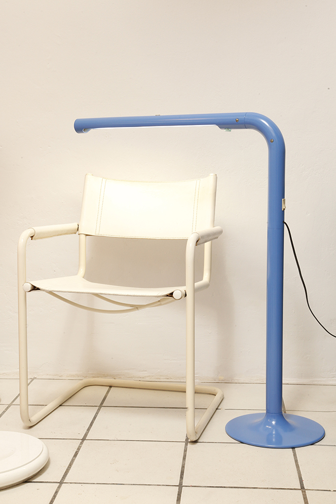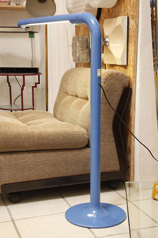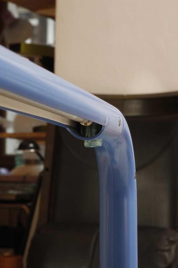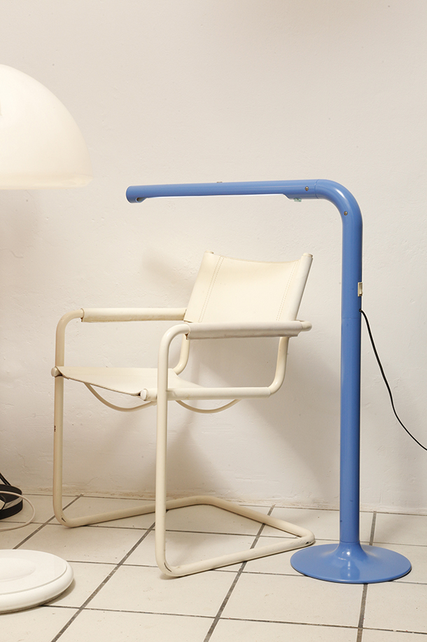 Wyjątkowo reprezentacyjna przez swoją chromowaną grubą nogę i ciężka podstawę, a zarazem funkcjonalna, łatwa w użytku prosta bryła zdecydowanie nawiązująca do stylistyki Space Age.