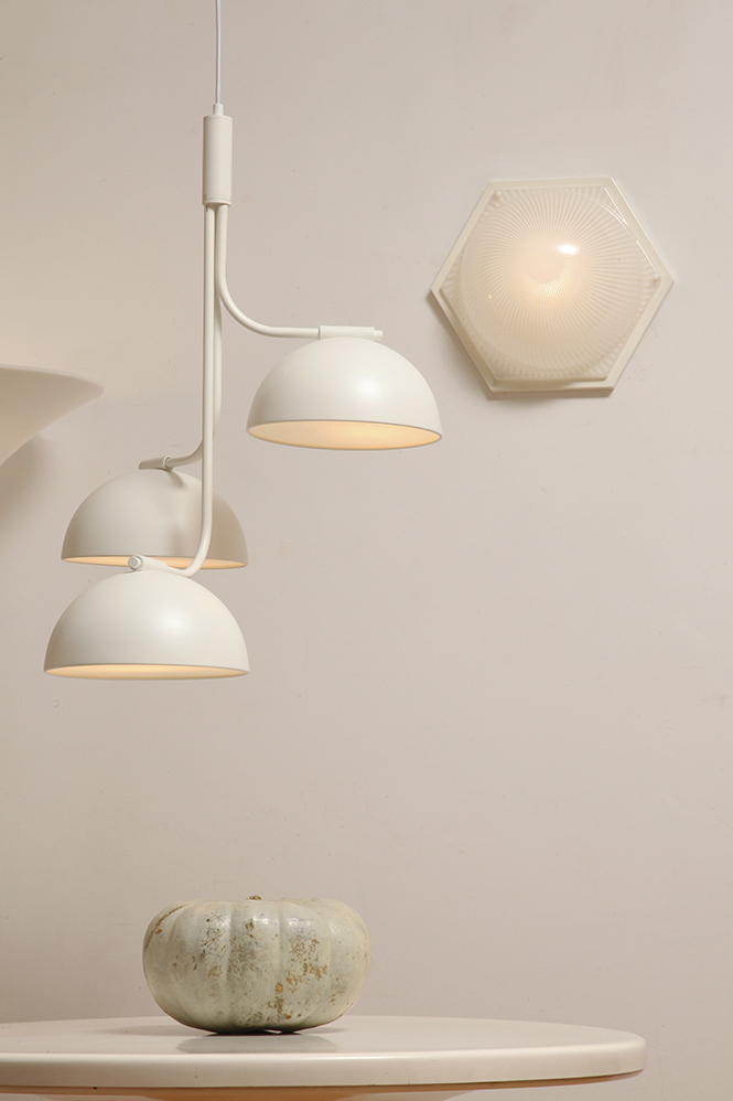 Wizualnie lampa czysta i przejrzysta. Klosz. kształcie kopuły nam kojarzy się z namiotem cyrkowym. Pewnie przez te paski.