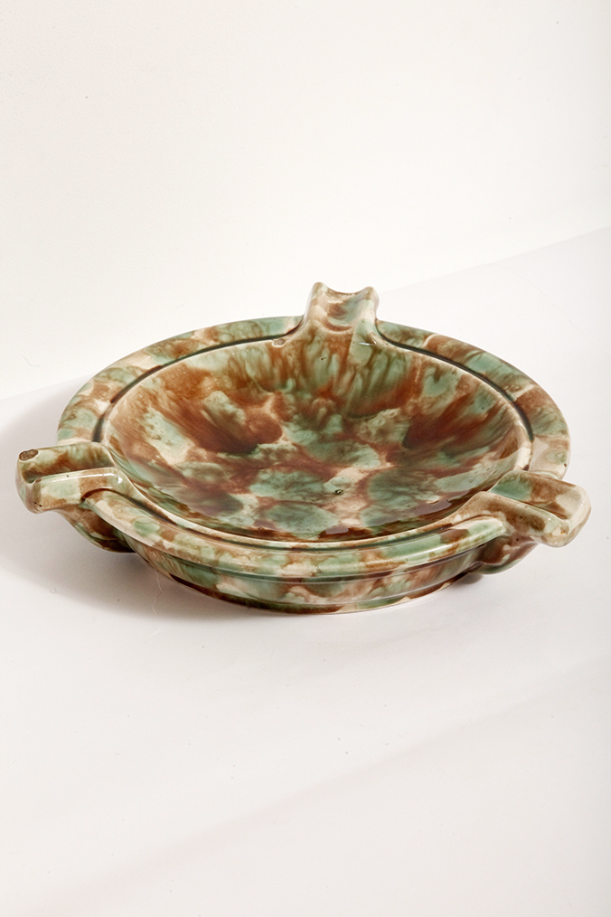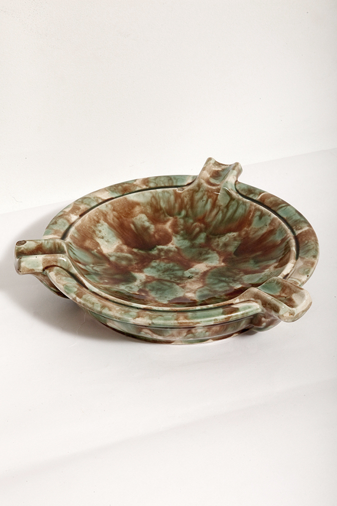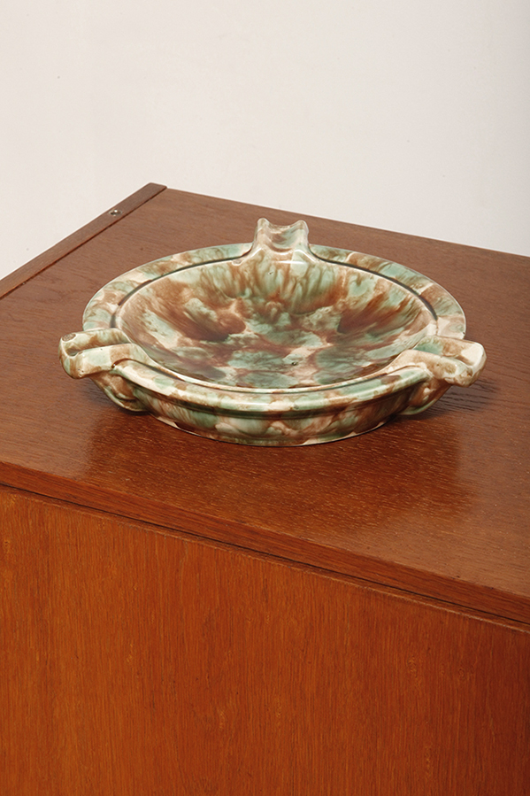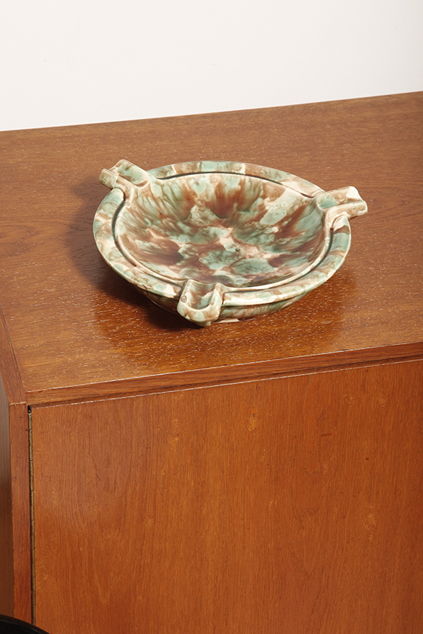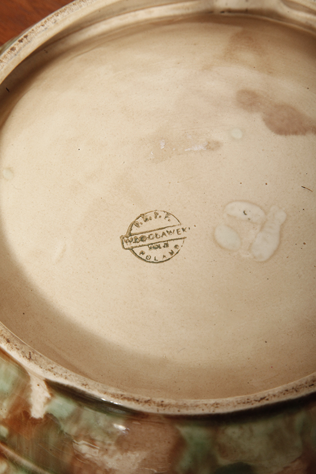 Strona główna » Sklep » Ceramika » Duża zielono-brązowa fajansowa okrągła popielnica, Polskie Zjednoczone Fabryki Fajansu „Włocławek” we Włocławku, Polska, lata 1945-1955