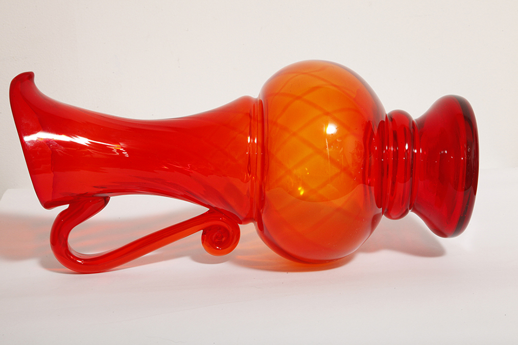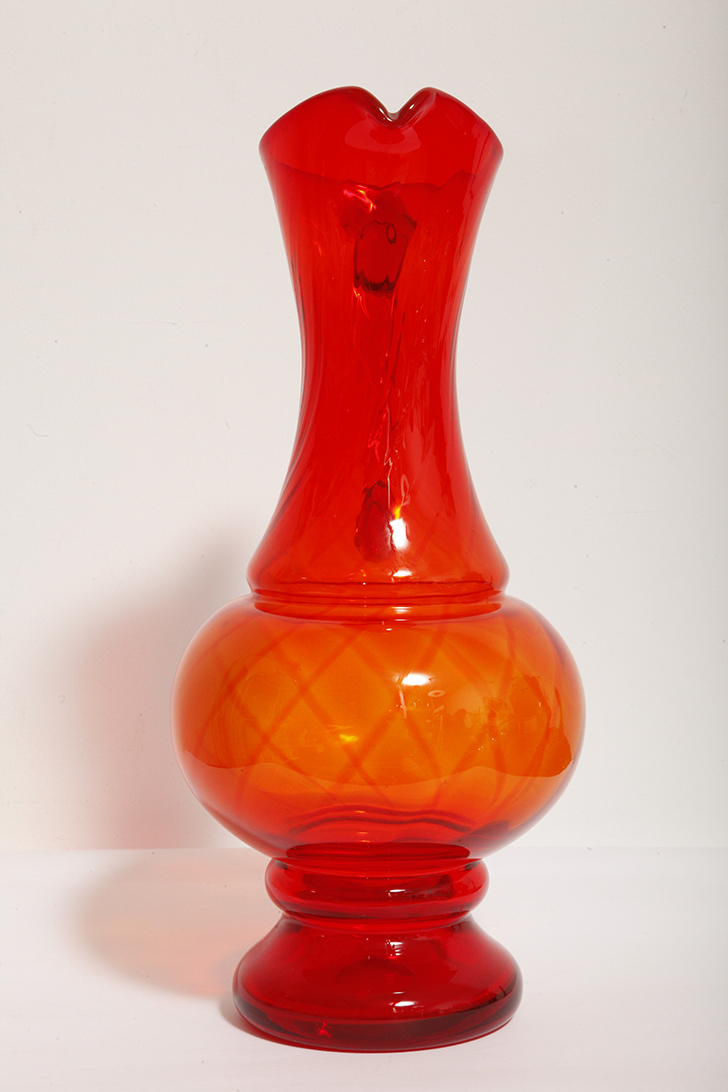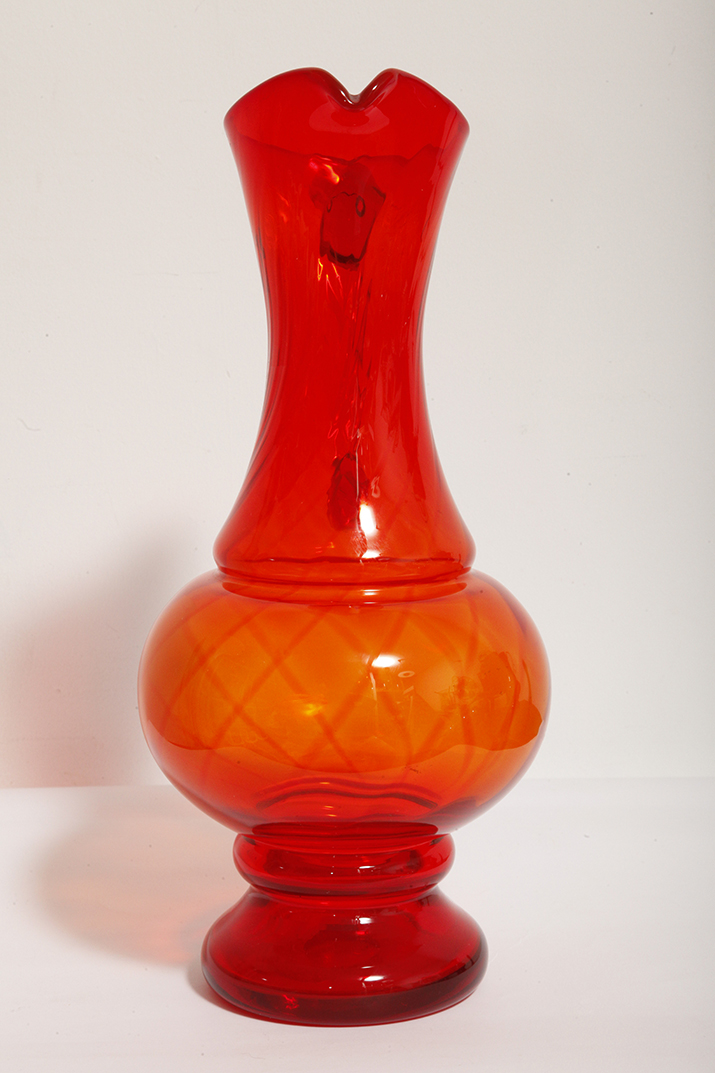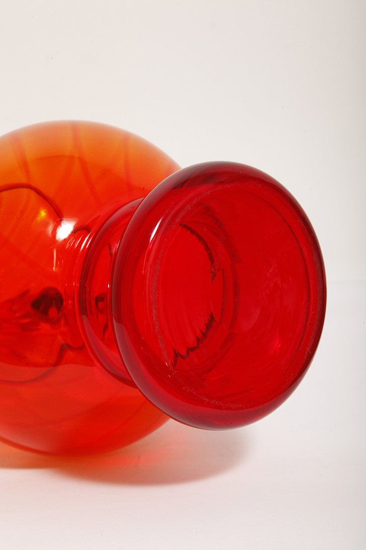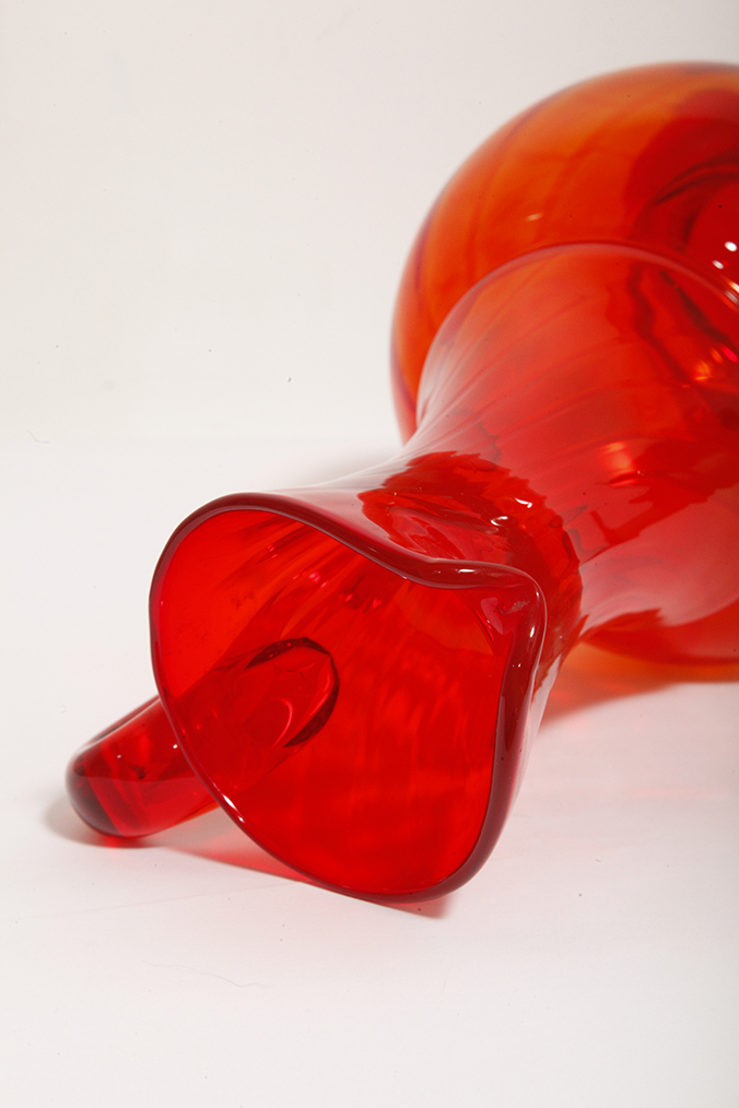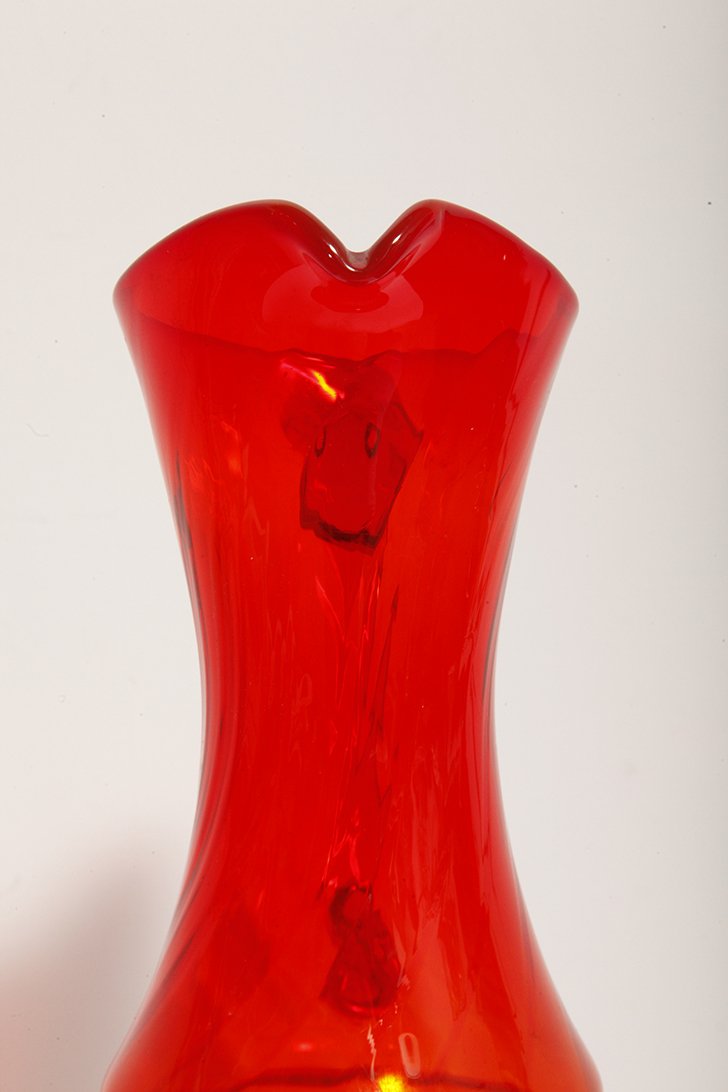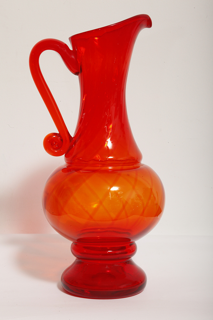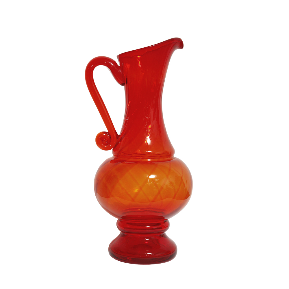 Duży szklany czerwony dzbanek „Verona”, projekt Ludwik Fiedorowicz, Huta Szkła Gospodarczego „Ząbkowice” w Dąbrowie Górniczej, Polska, wzór z 1982 roku
