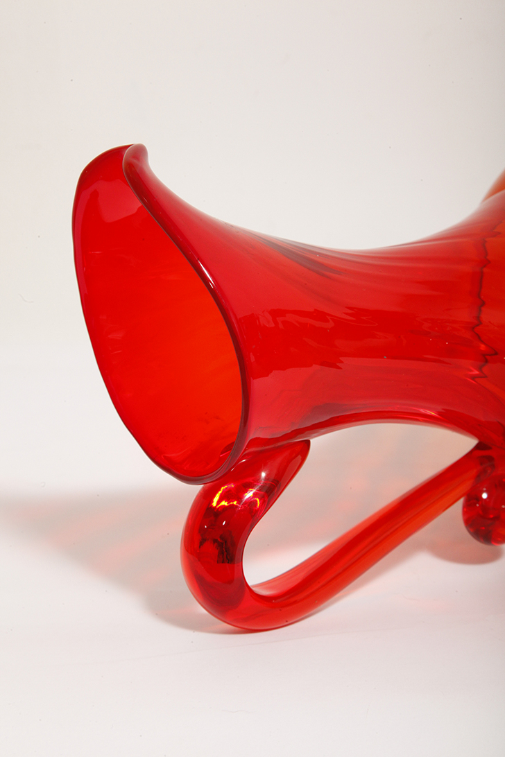 Szkło sodowe, formowane ręcznie, barwione w masie.