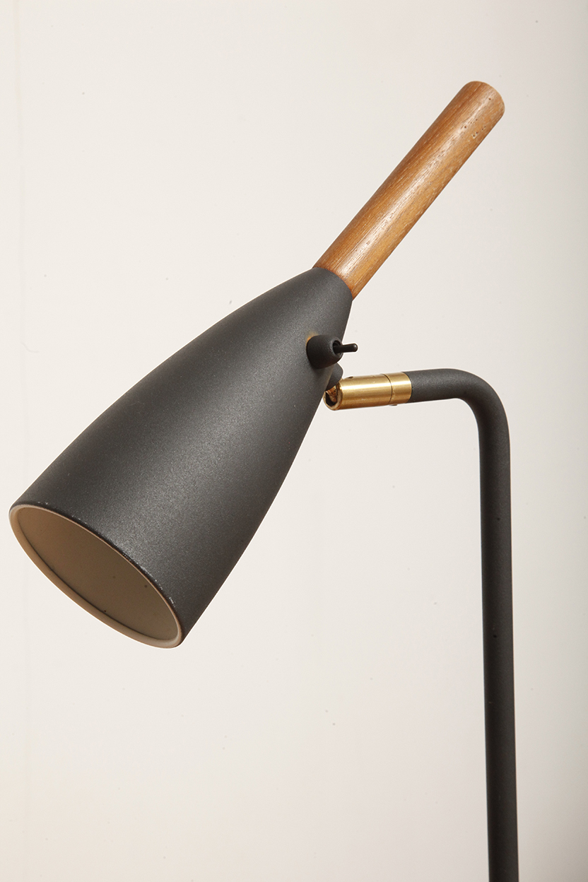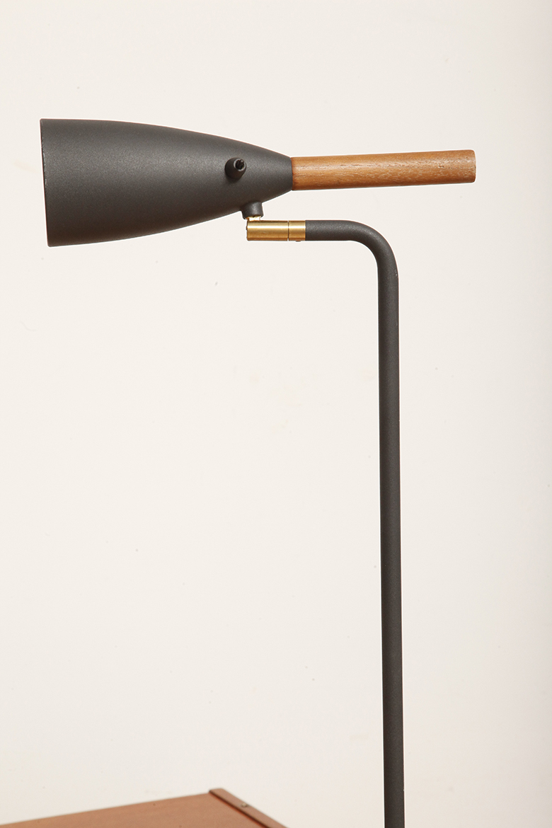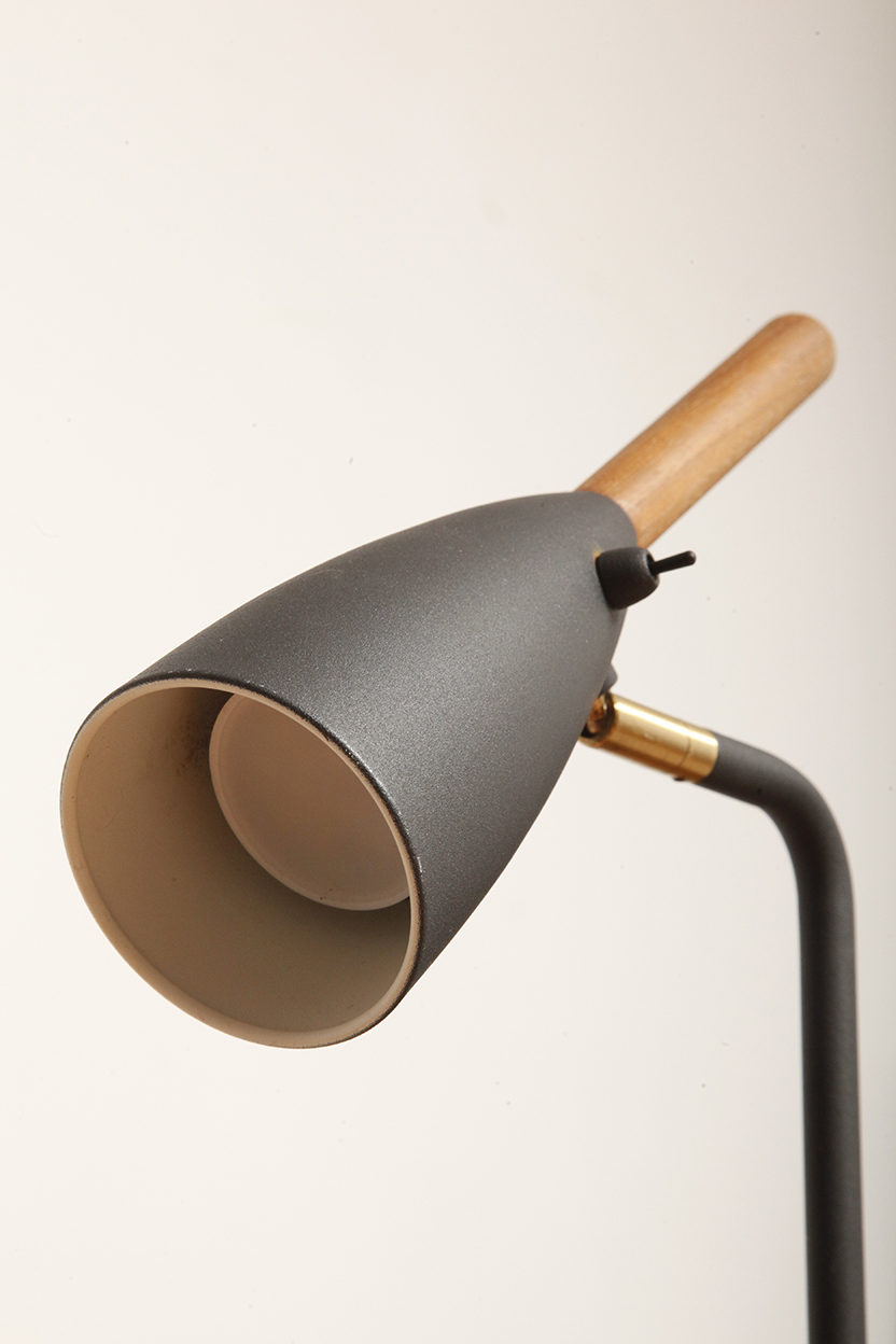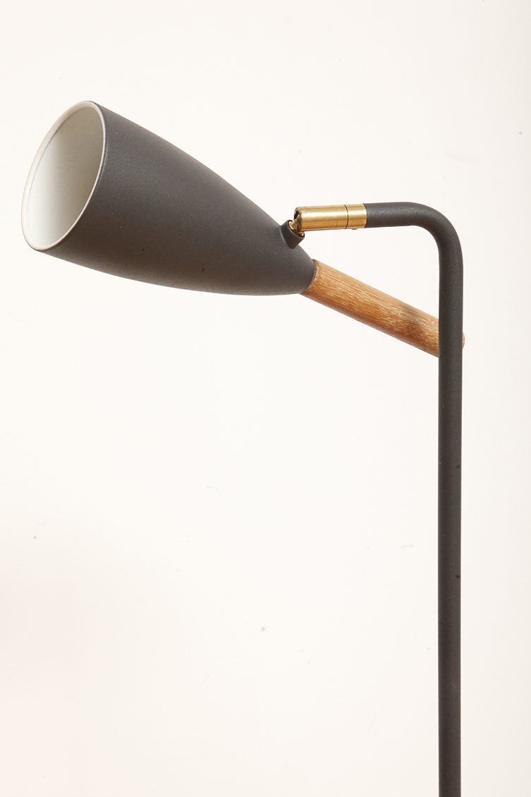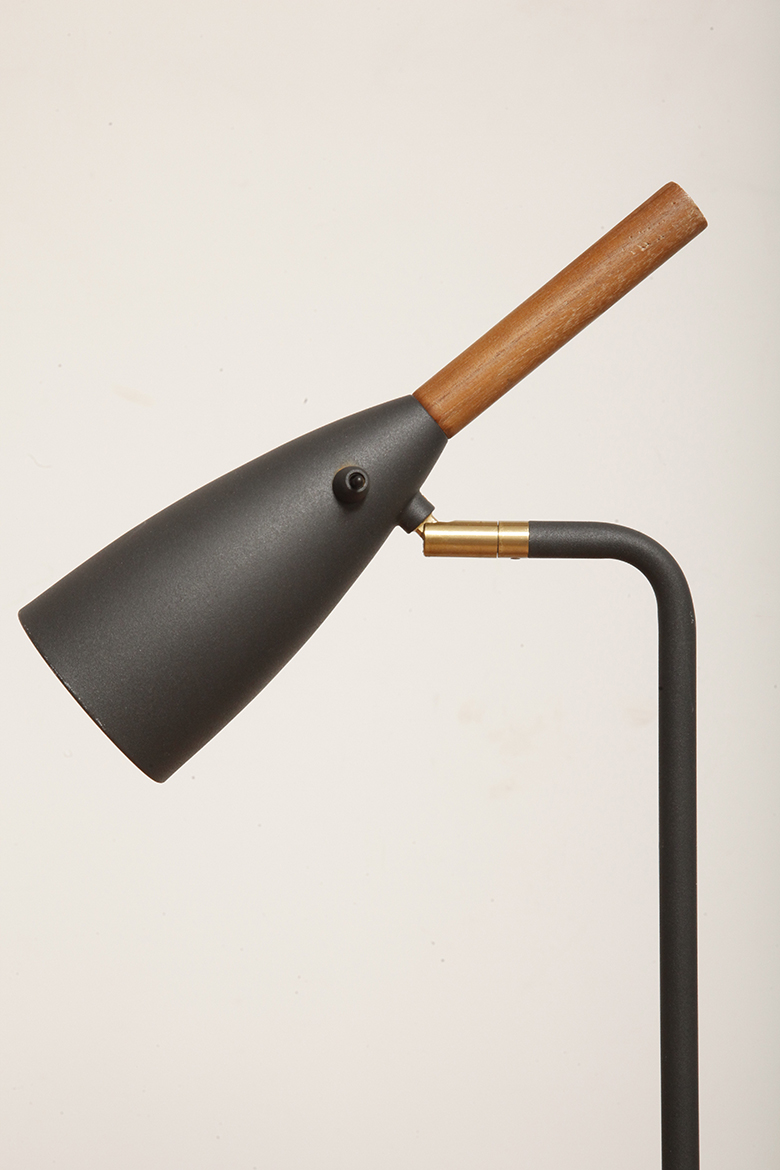 Lampa charakteryzuje się wieloma dopracowanymi detalami, takimi jak proste, krótkie ramię z ruchomym kloszem na łożysku kulkowym, dyskretnie zintegrowany przewód w podstawie oraz eleganckie umiejscowienie przycisku włączania/wyłączania w kloszu lampy.