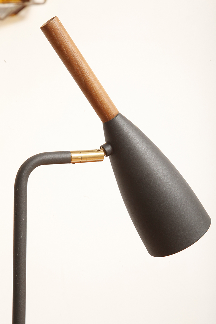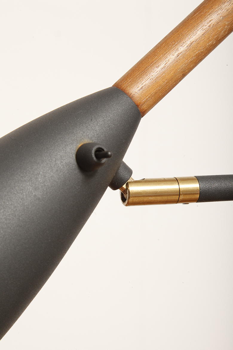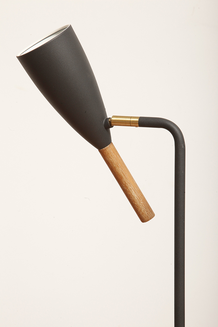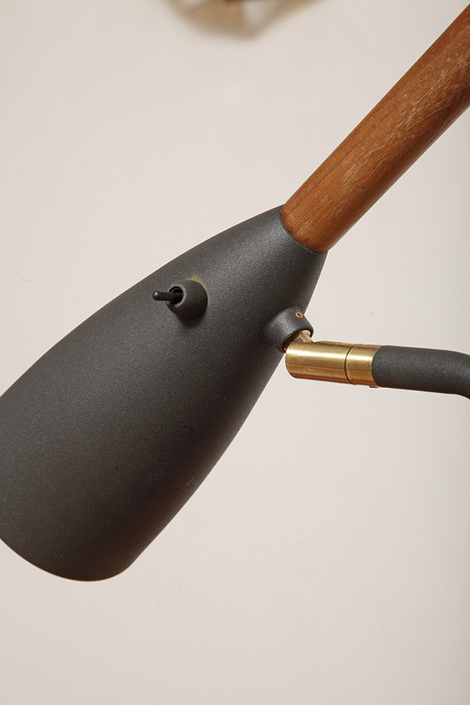 Klosz zaopatrzony w drewniany uchwyt z orzecha włoskiego ociepla chłodne wejrzenie lampy, a dodatkowo bardzo ułatwia ustawienie kierunku światła.