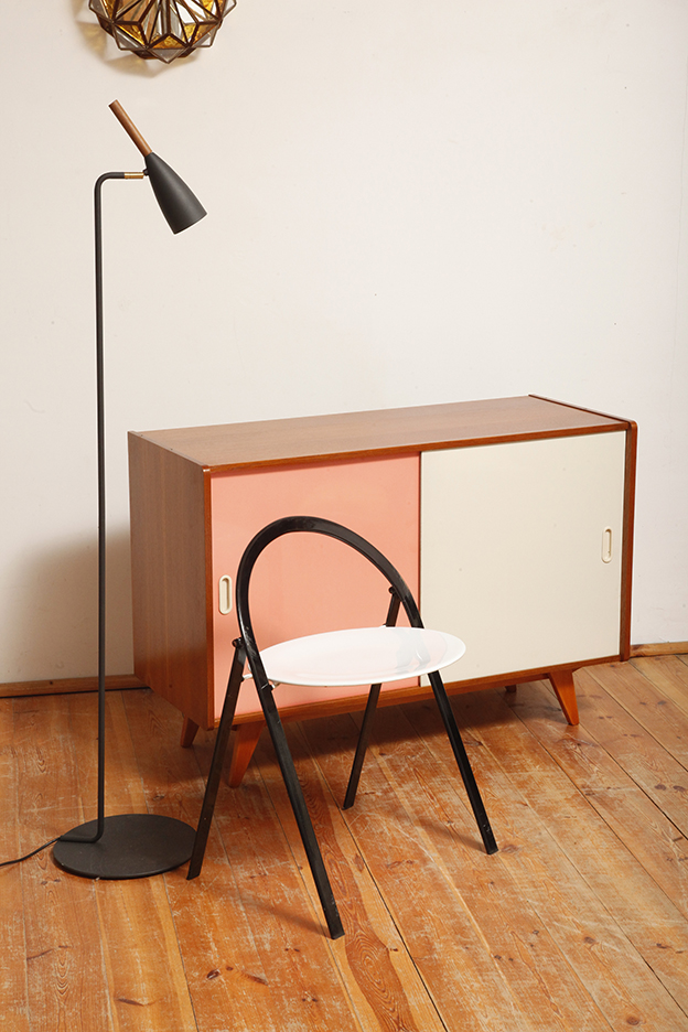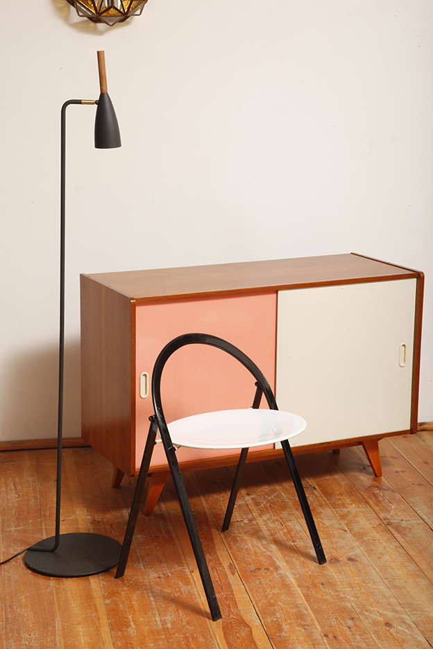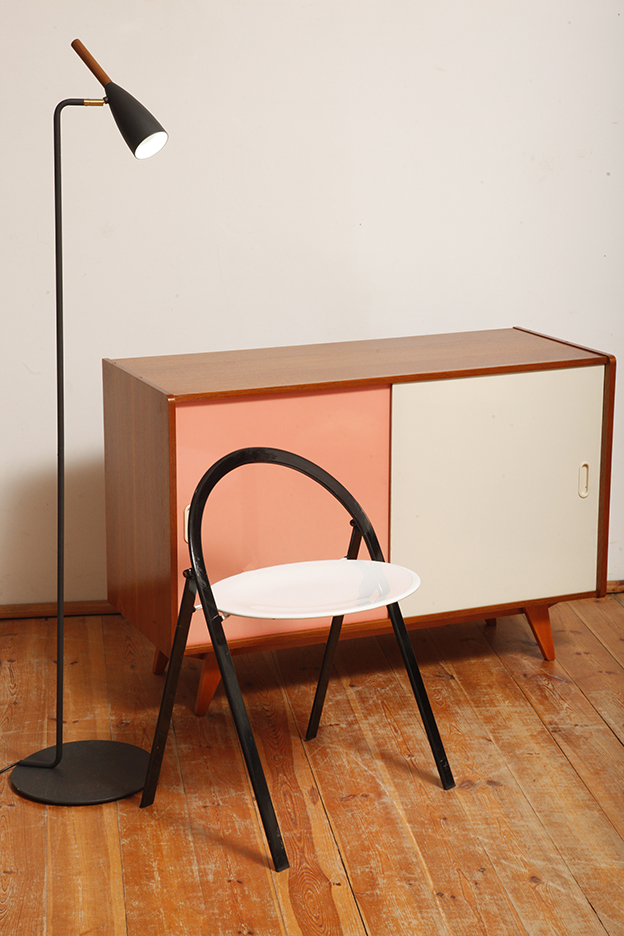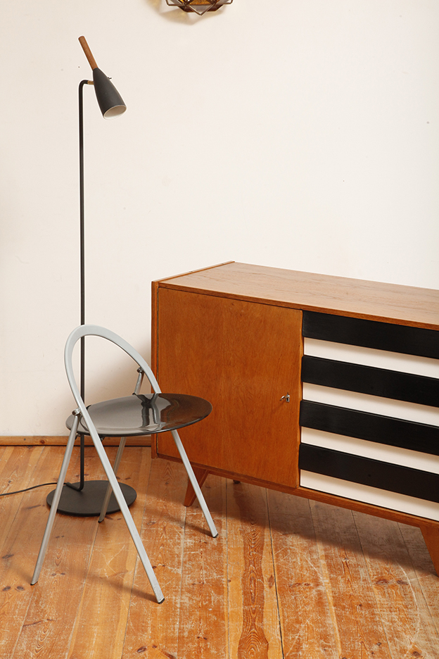 Jest szczupła, wręcz smukłą wiec nie zajmuje realnie i optycznie dużej przestrzeni. Delikatnie nachylona do przodu co dodaje jej tego czegoś. Okrągła płaska podstawa jest dociążona dzięki czemu lampa jest stabilna. Łatwa i przyjemna w użytkowaniu, o prostych nieprzegadanych liniach cieszy oko.