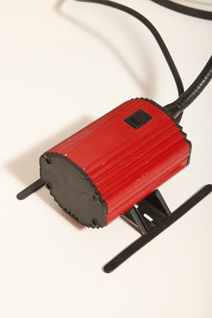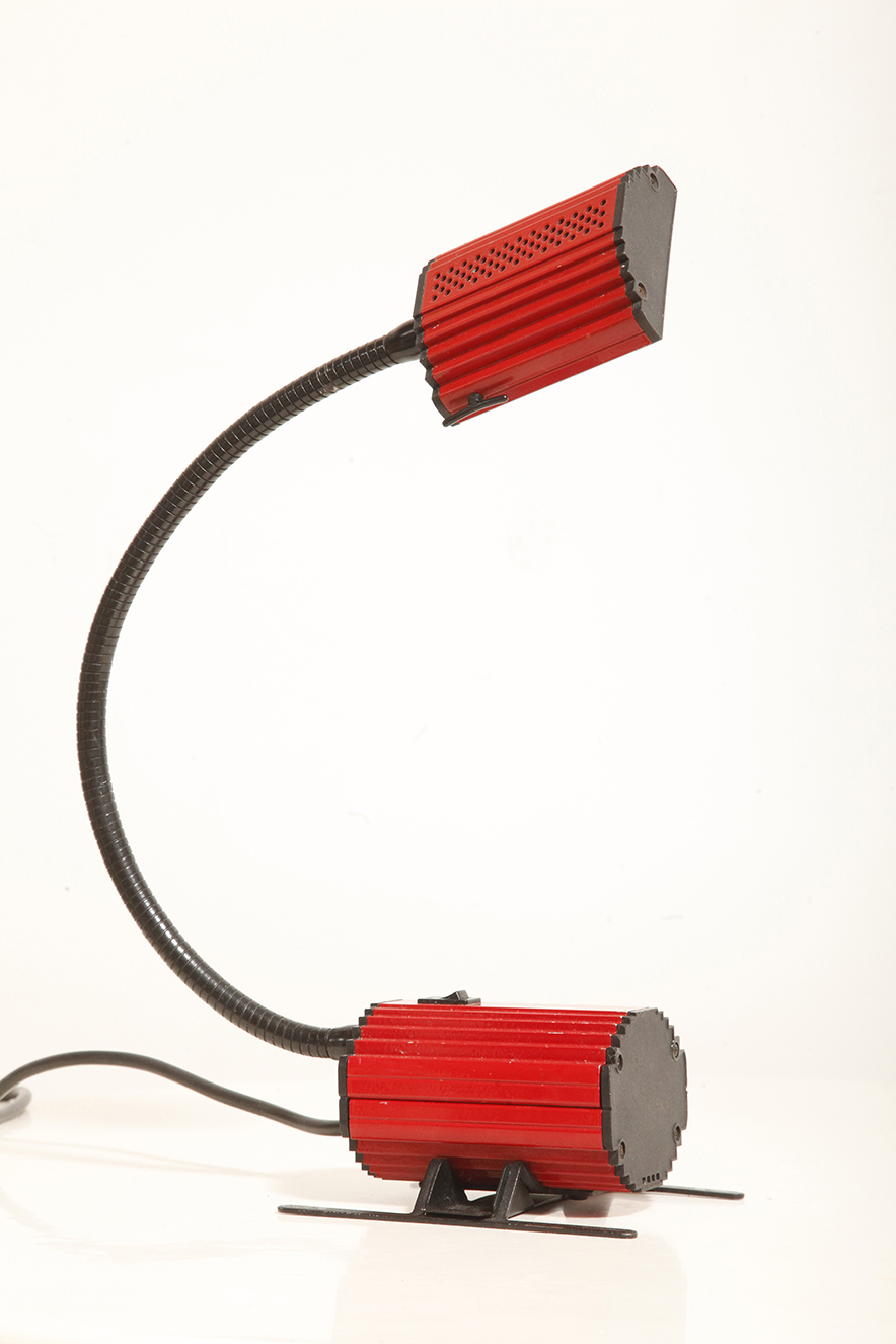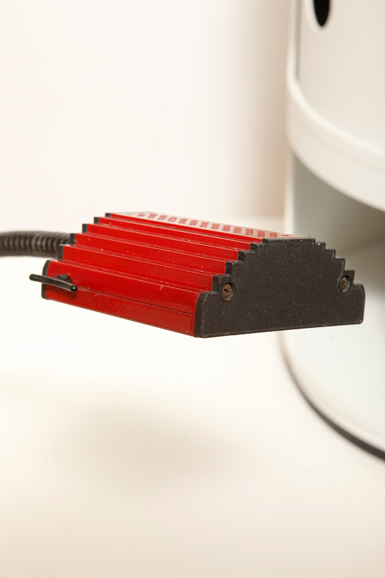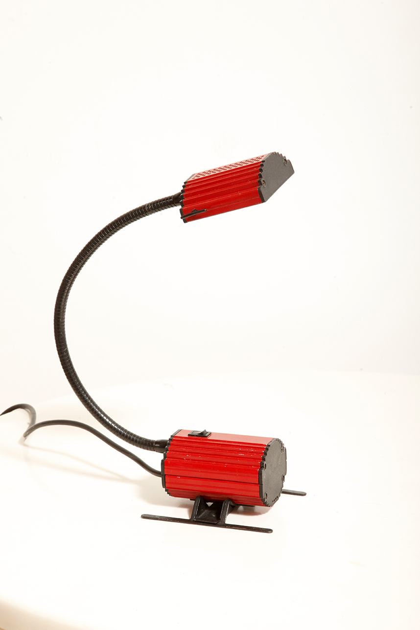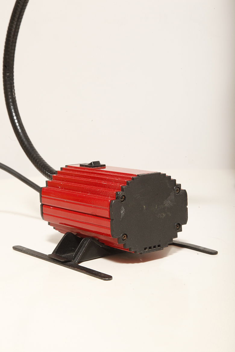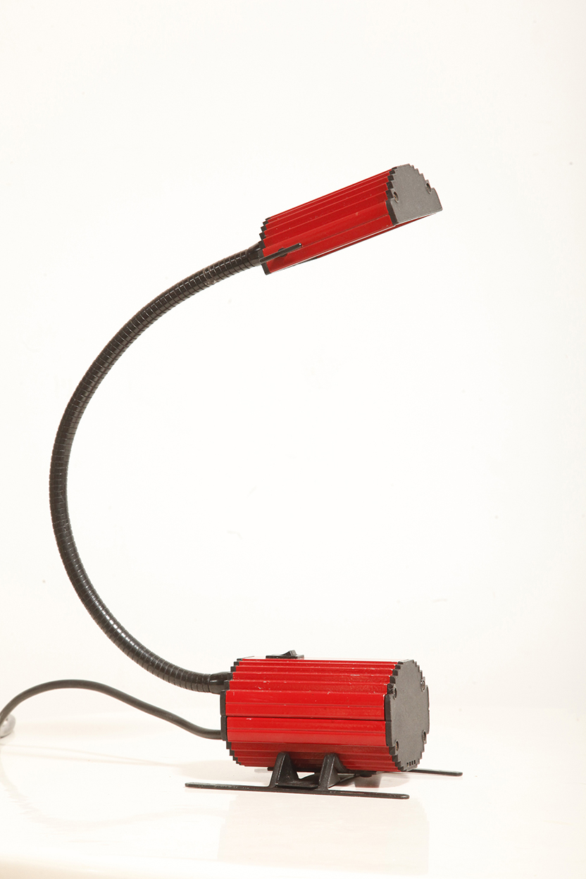 Projekt nawiązuje do statków kosmicznych z pikselowych gier wideo z lat 80. Czyli innymi słowy lampka jest jedyna w swoim rodzaju. Mi osobiście kojarzy się raczej z nieco niebezpiecznym zwierzątkiem, a mianowicie ze skorpionem. Pewnie przez podobieństwo jakby anatomiczne. Długie giętkie ramię wychodzące z tułowia. Co prawda nic nie wiem, o czerwonych skorpionach, ale co ja tam wiem w ogóle o życiu. No i skorpiony nie mają płóz, a ta lampka ma.