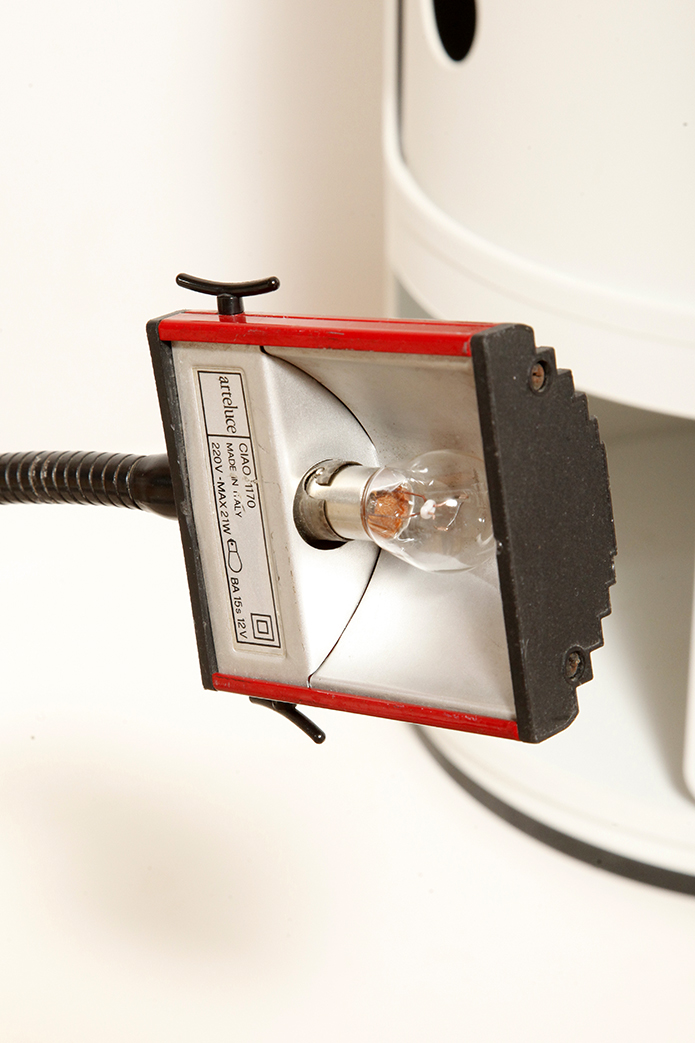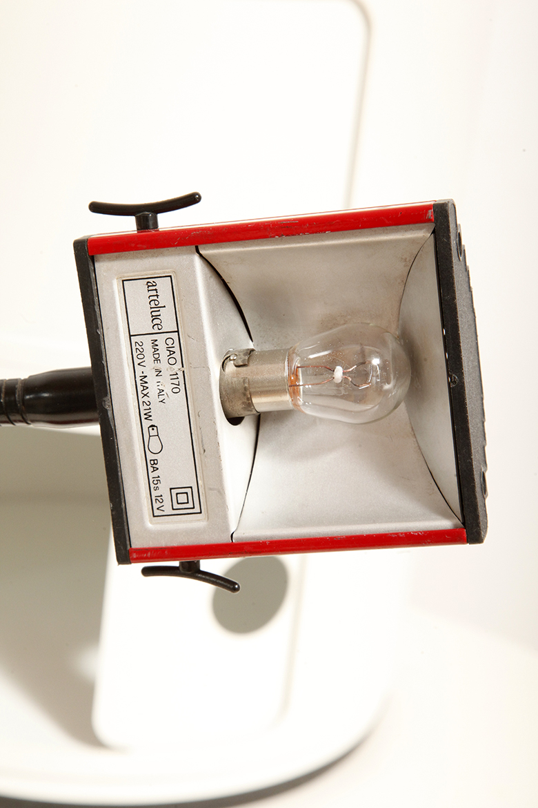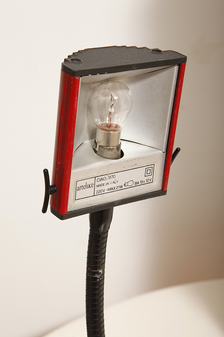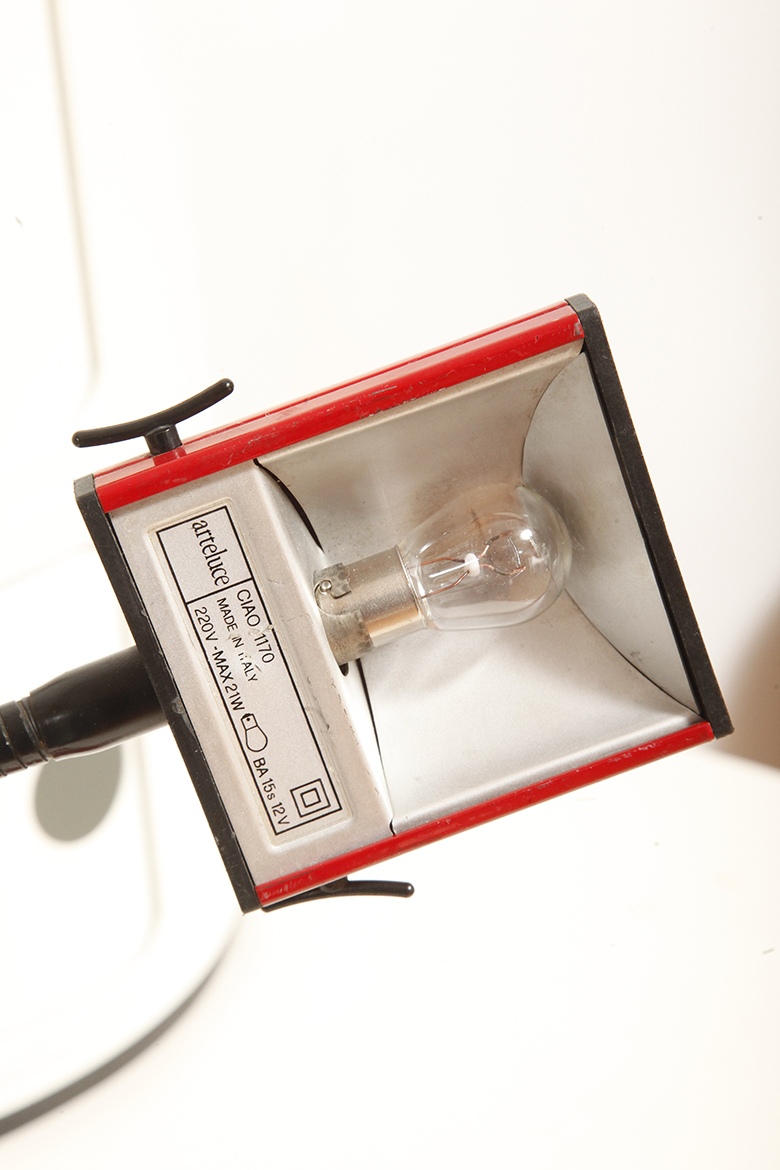 Lampa biurkowa o wdzięcznym imieniu „CIAO 1170” zaprojektowana była w latach 80. przez Ezio Didone dla Arteluce Milano.
