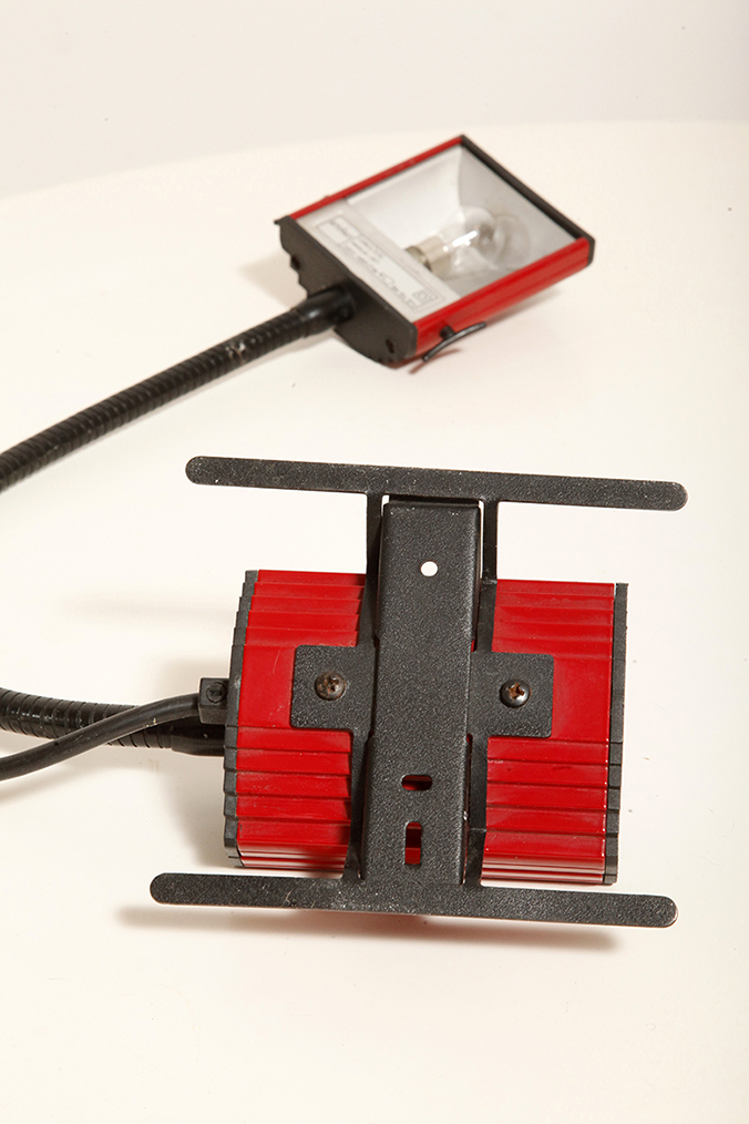 Jednopunktowa czerwono-czarna lampa biurkowa/nocna/lampa ścienna/kinkiet „Ciao 1170” z kloszem na ruchomym giętym ramieniu, projekt Ezio Didone dla firmy Arteluce, Włochy, lata 80.