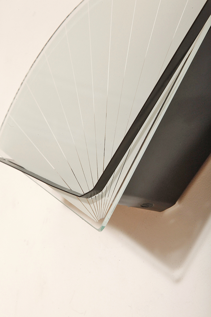 Przypomina nieco kobiecy wachlarz. Promieniście rozchodzące się linie na szklanym kloszu podbijają to wrażenie.