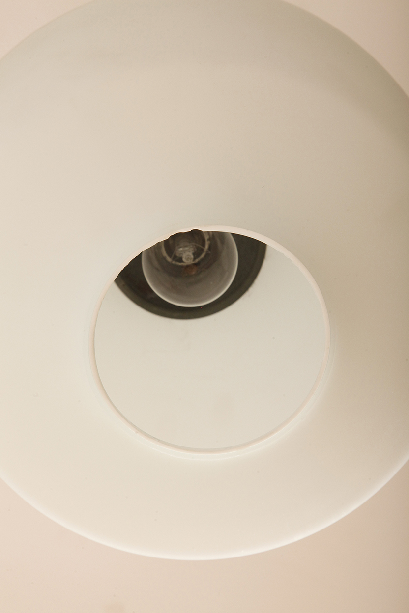 Gdy użyta w niej żarówka nie ma zbytnio dużej mocy szyjka klosza jest nieco mocniej wycieniona w stosunku do reszty lampy.
