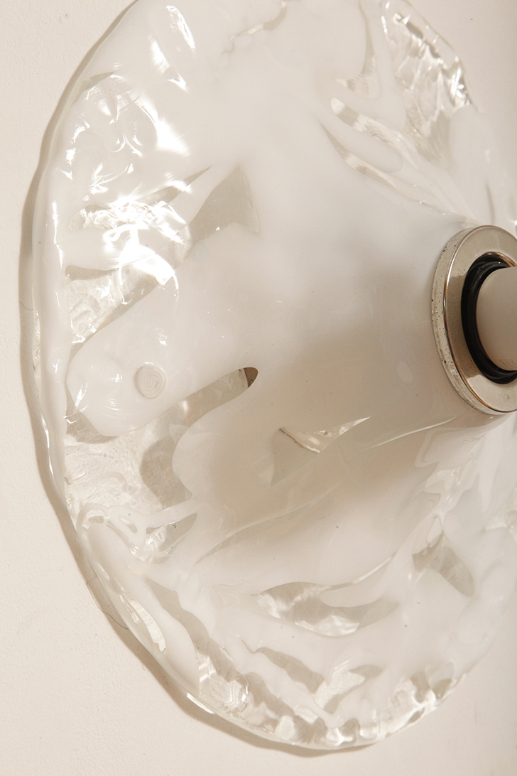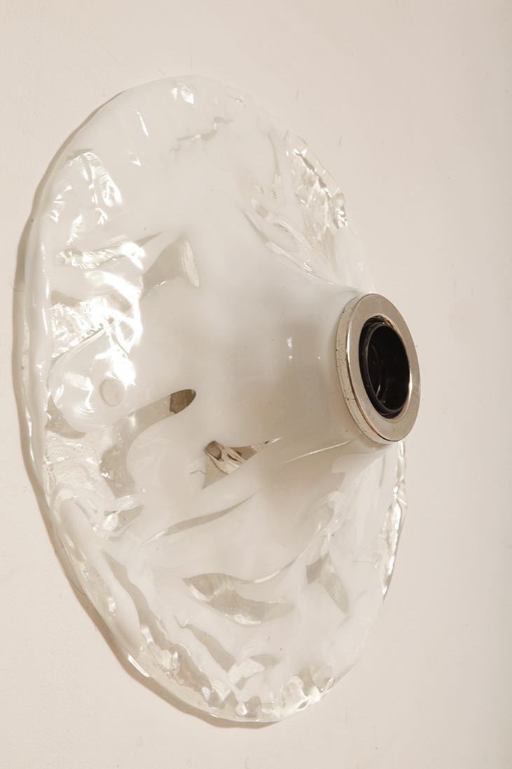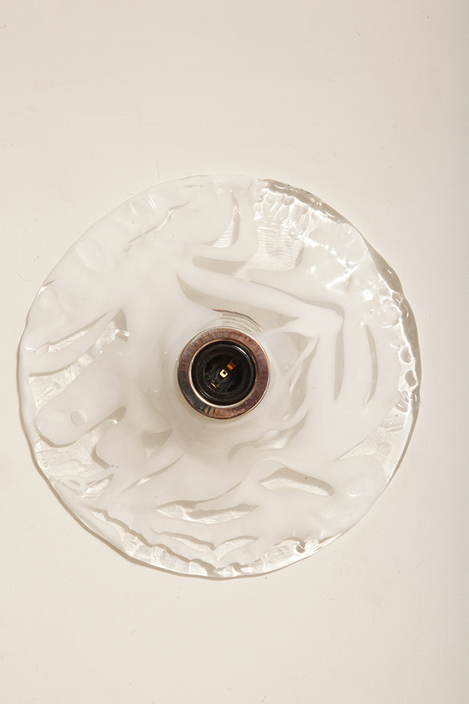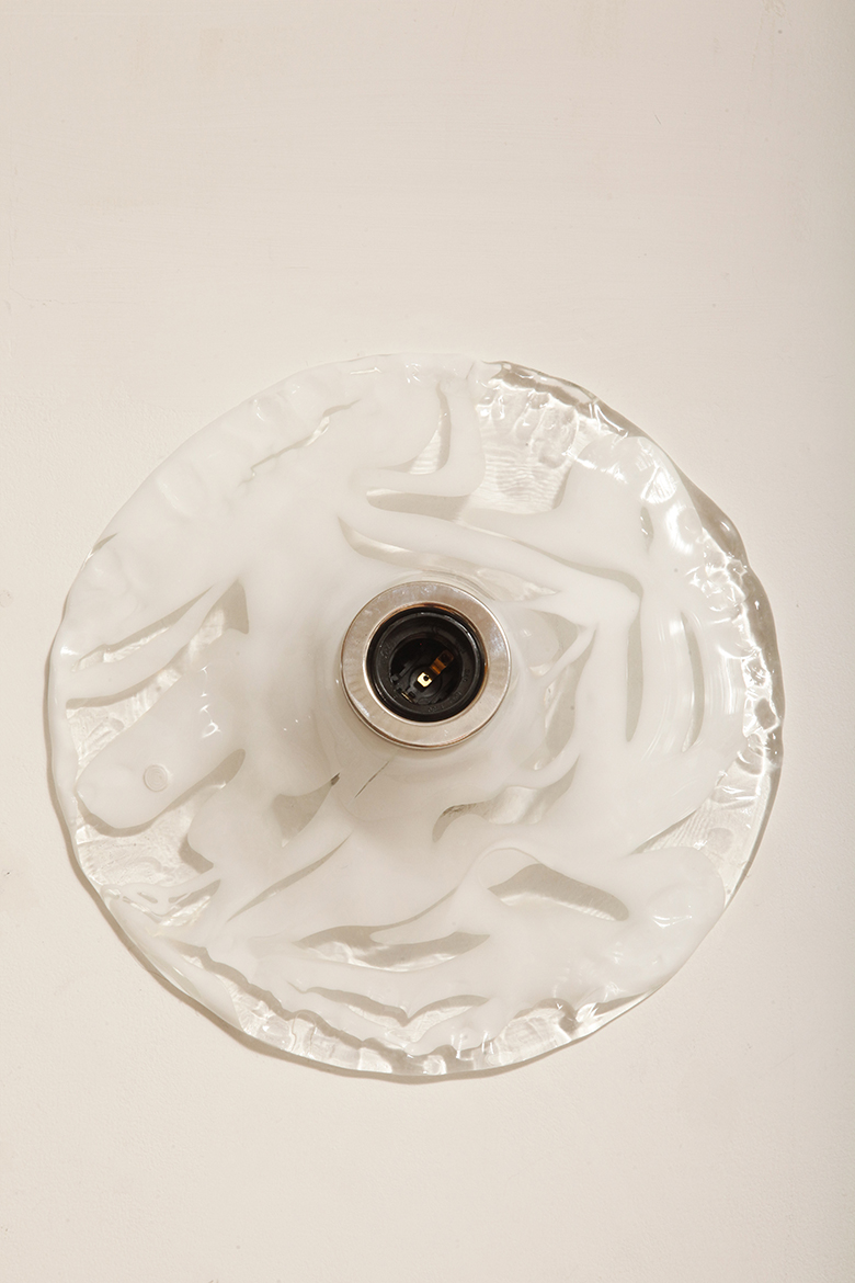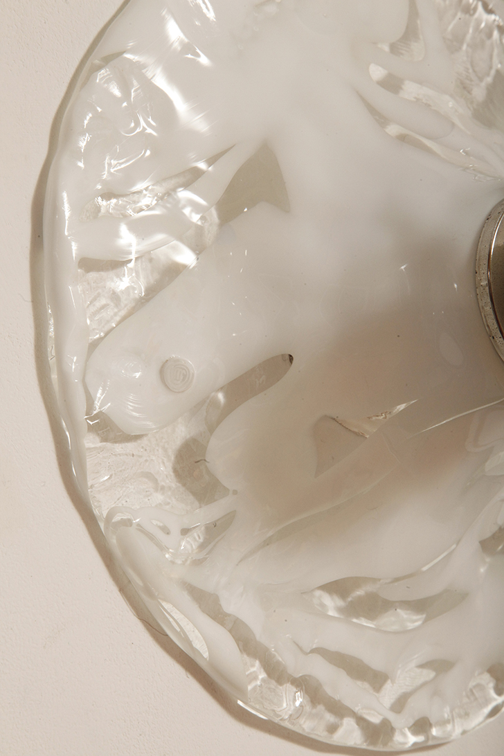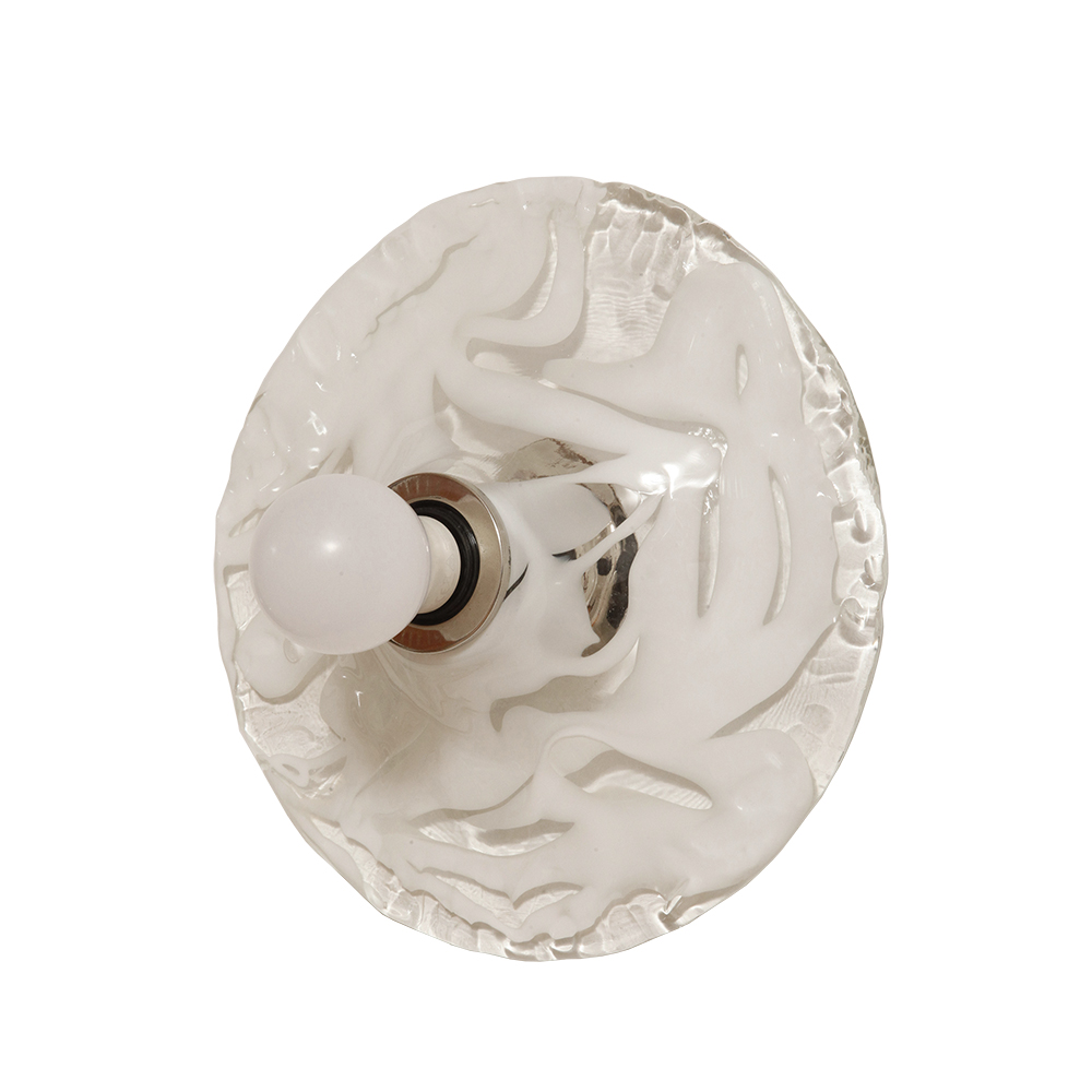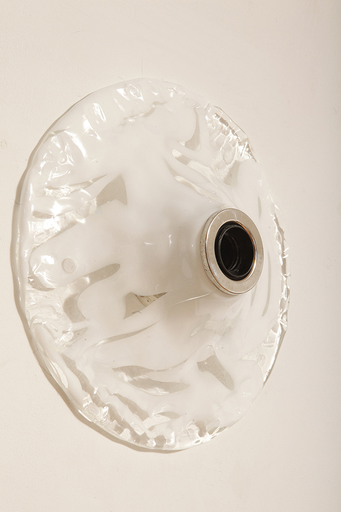 Jednopunktowa mlecznobiała okrągła lampa ścienna/kinkiet w niesymetryczne wzory ze szkła Murano, Space Age, La Murrina, Włochy, lata 70