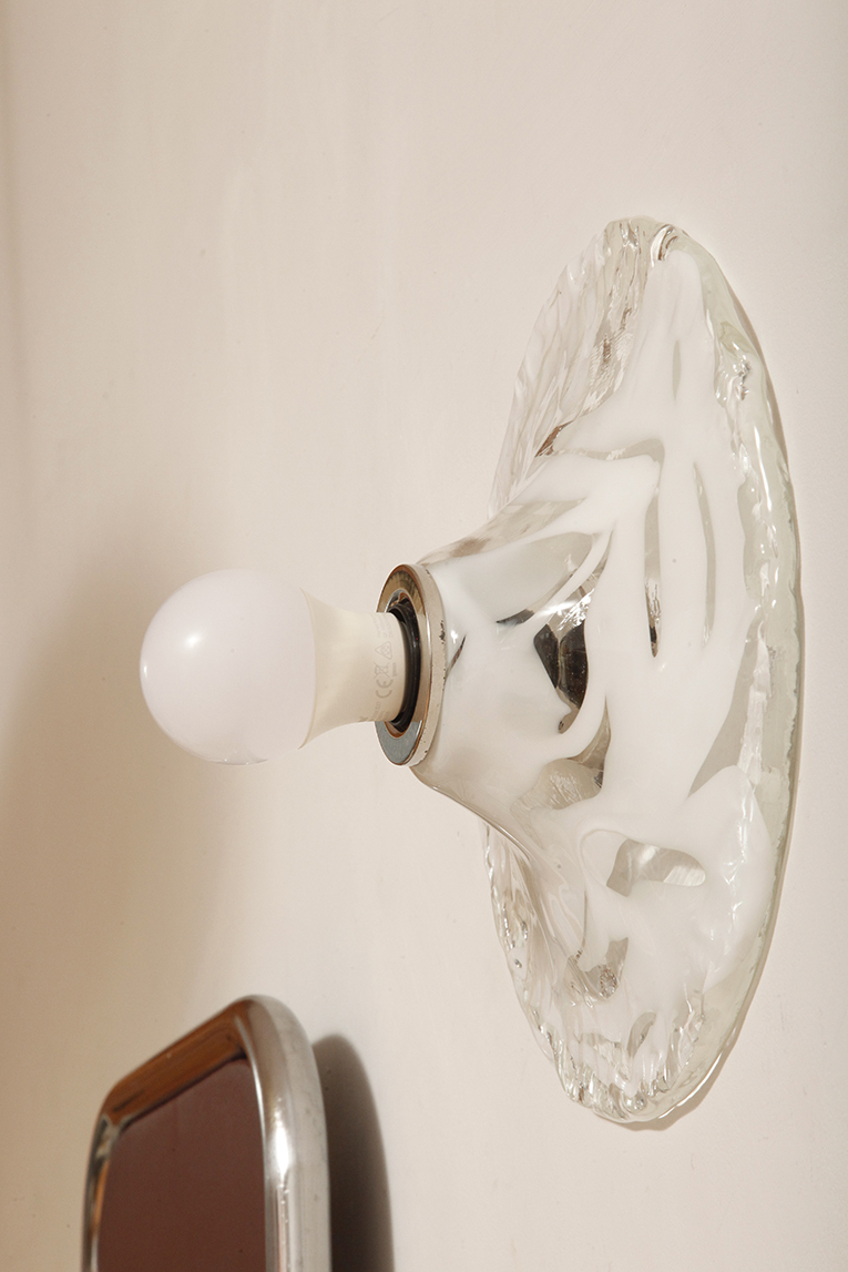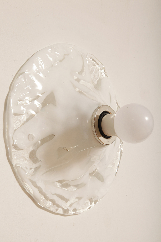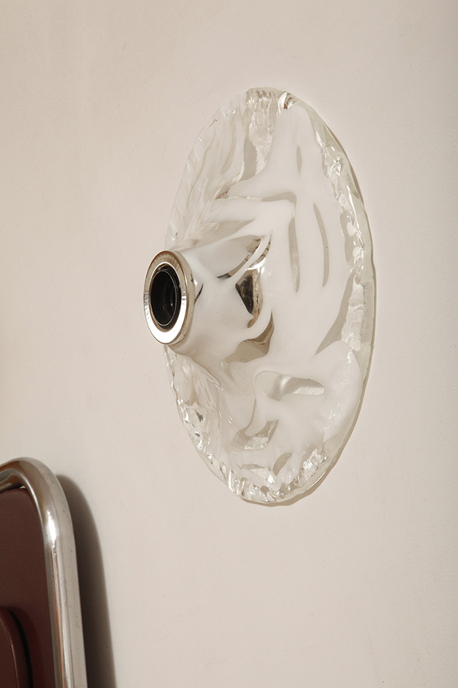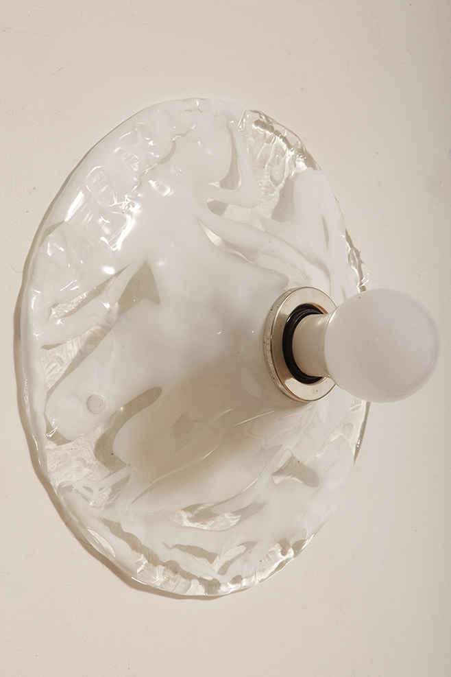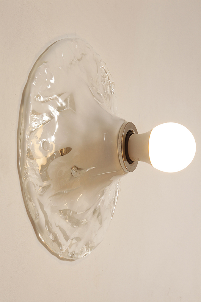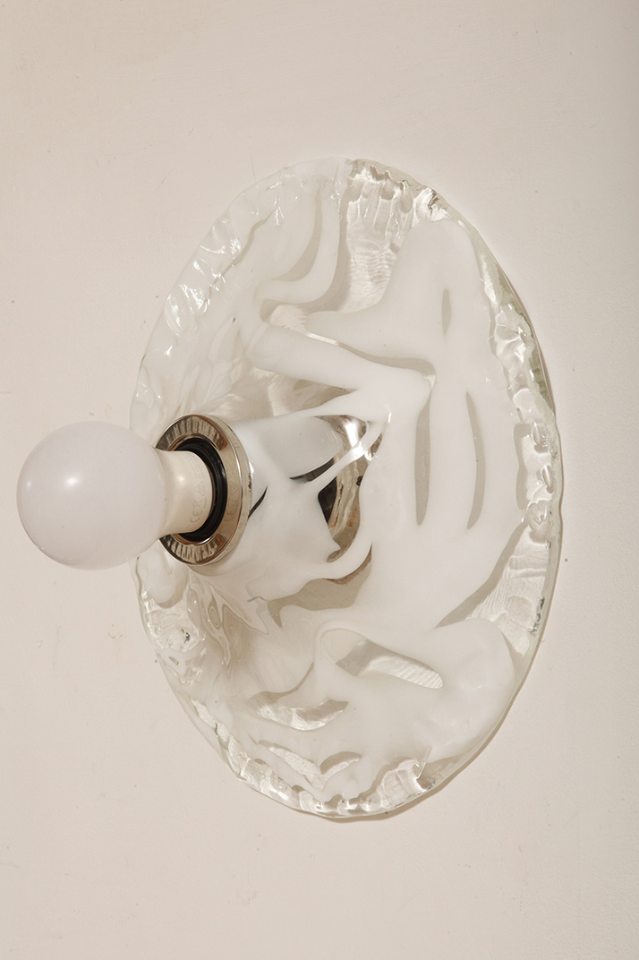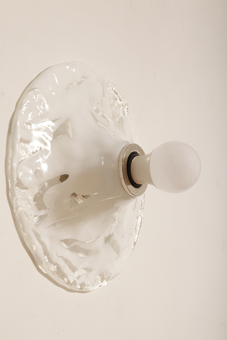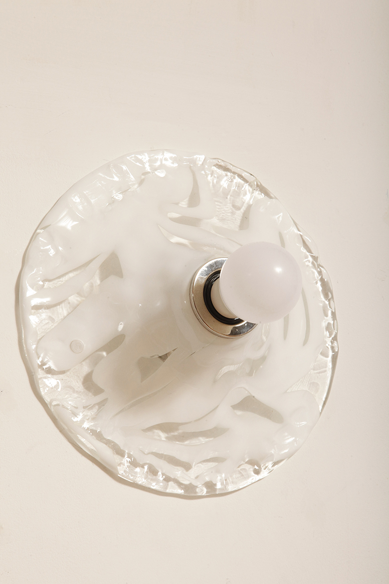 Jednopunktowa mlecznobiała okrągła lampa ścienna/kinkiet w niesymetryczne wzory ze szkła Murano, Space Age, La Murrina, Włochy, lata 70