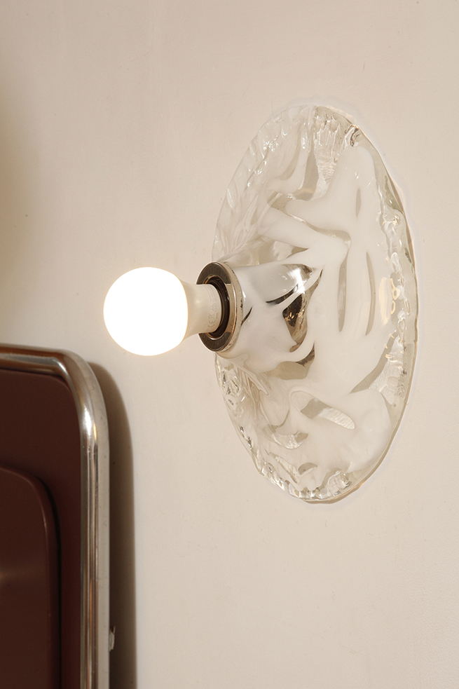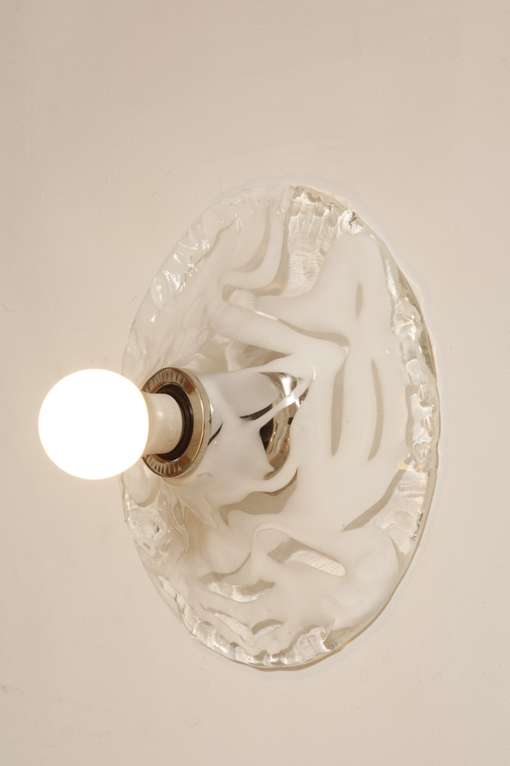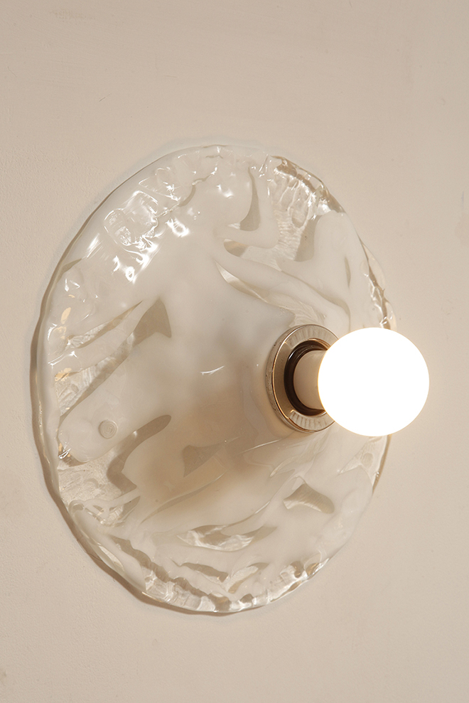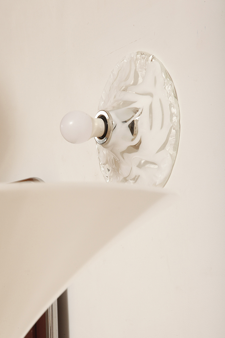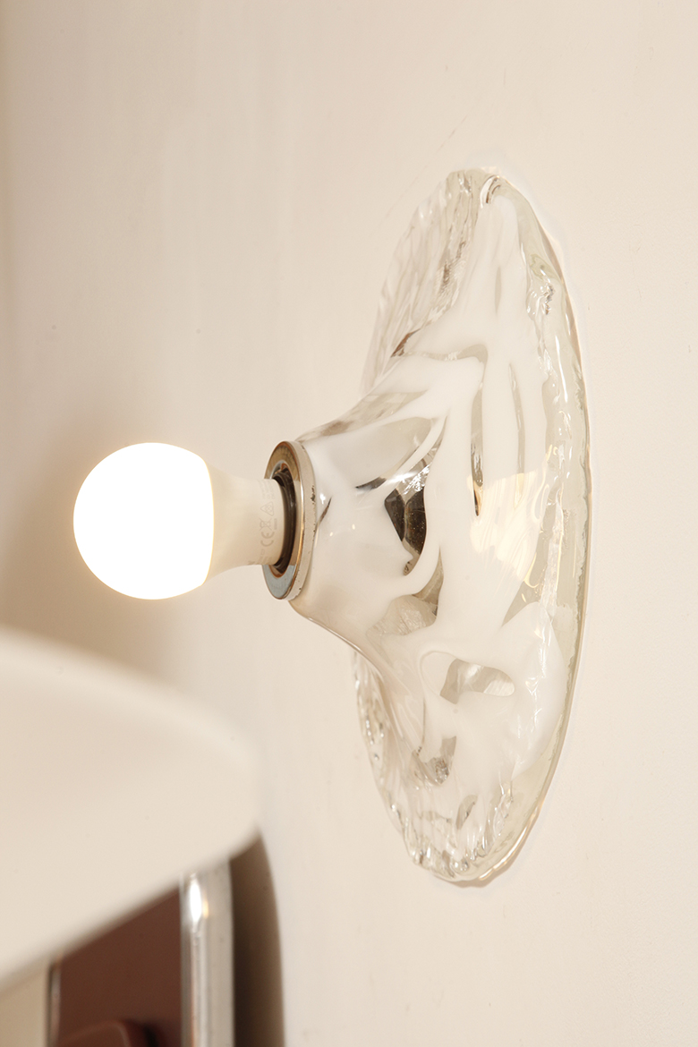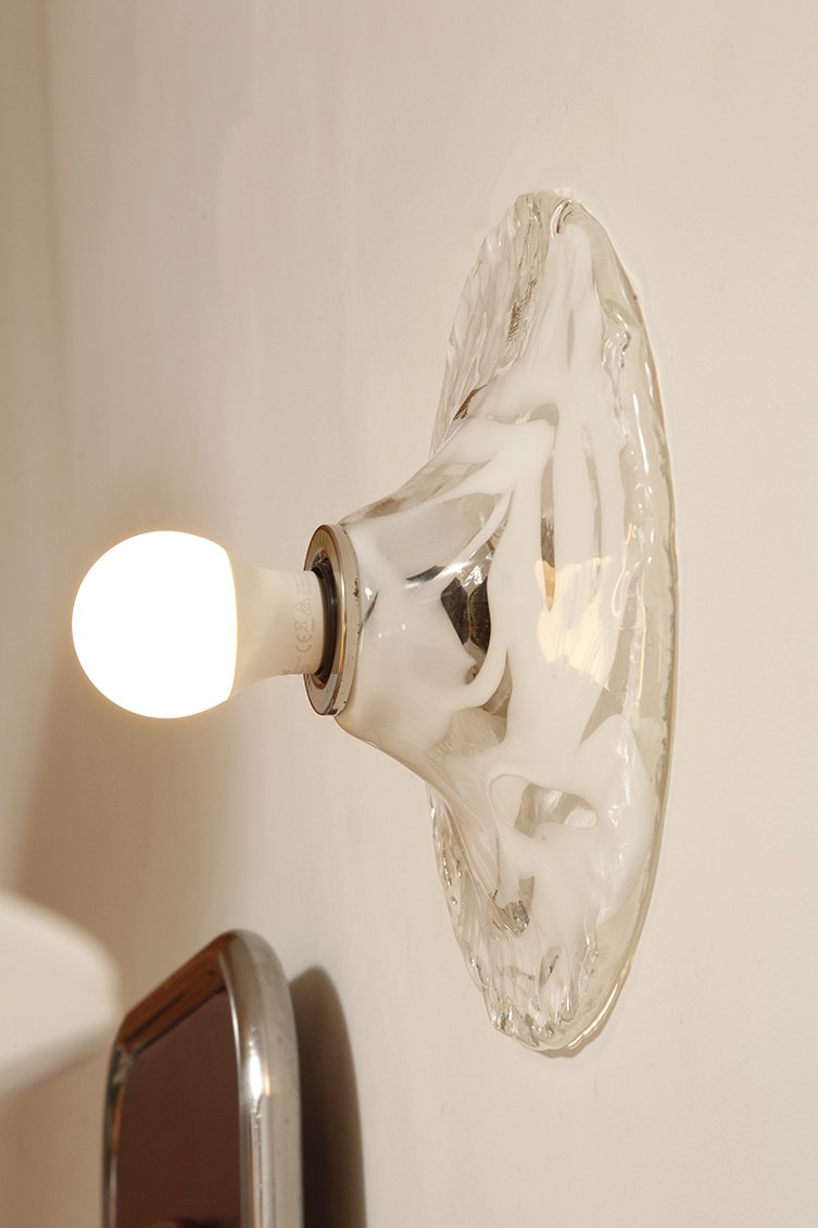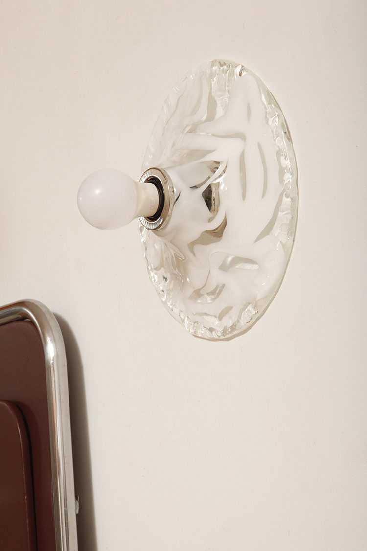 Jednopunktowa mlecznobiała okrągła lampa ścienna/kinkiet w niesymetryczne wzory ze szkła Murano, Space Age, La Murrina, Włochy, lata 70