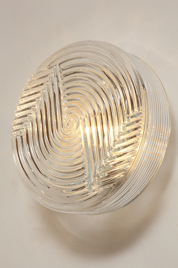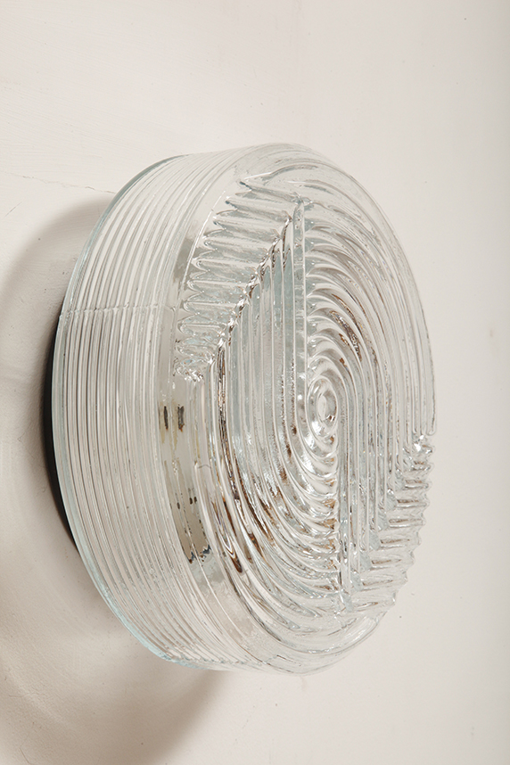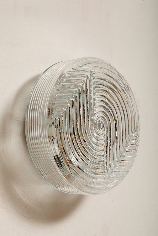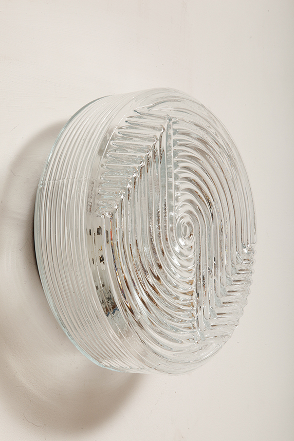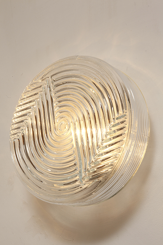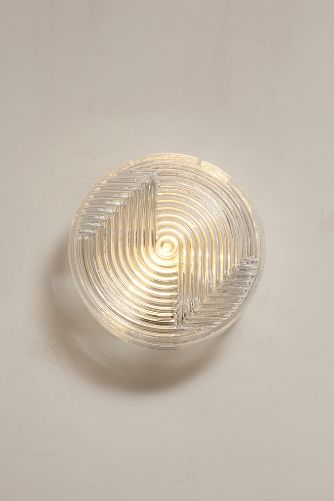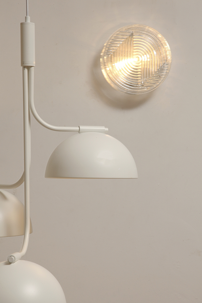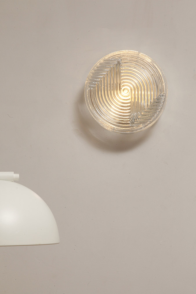 Dodaj elegancki i dyskretny akcent do każdego wnętrza dzięki tej vintage’owej lampie ściennej od PRISMA, o designie inspirowanym formami organicznymi. Lampa wykonana jest z satynowanego, tłoczonego szkła, z delikatną teksturą na zewnątrz i koncentrycznymi, wypukłymi kręgami w centrum, które tworzą subtelną grę światła i cieni. Falowany kształt przypomina stylizowany kwiat, co czyni ją idealną do wnętrz retro, minimalistycznych czy nawet industrialnych.