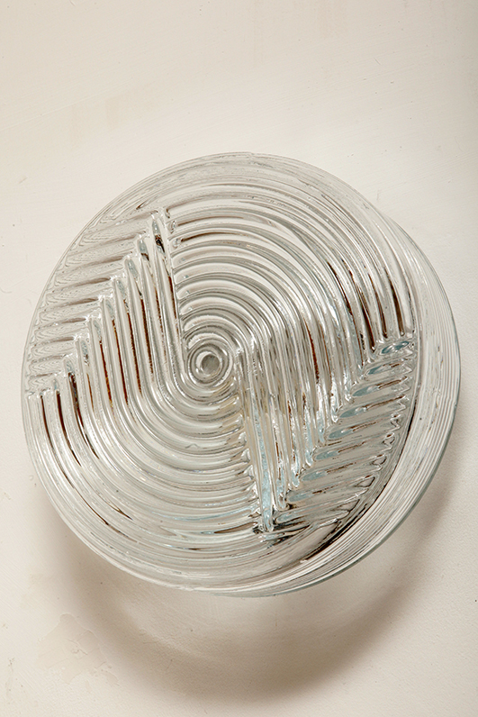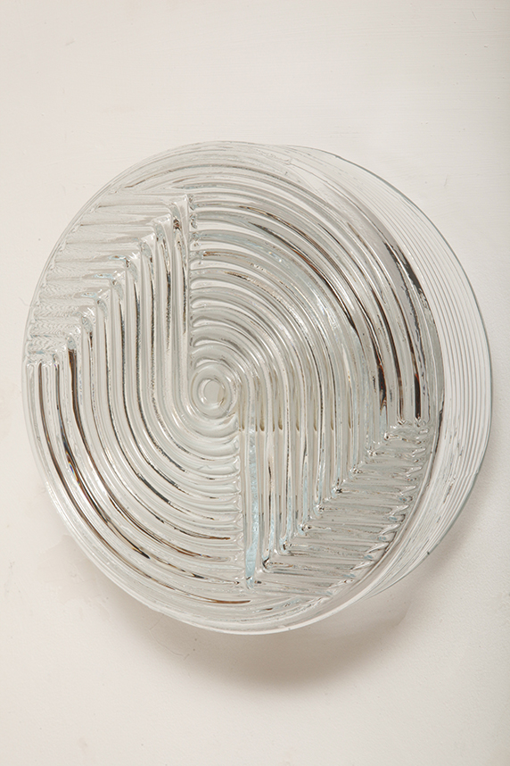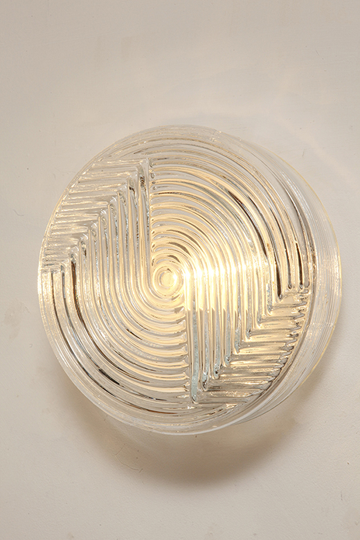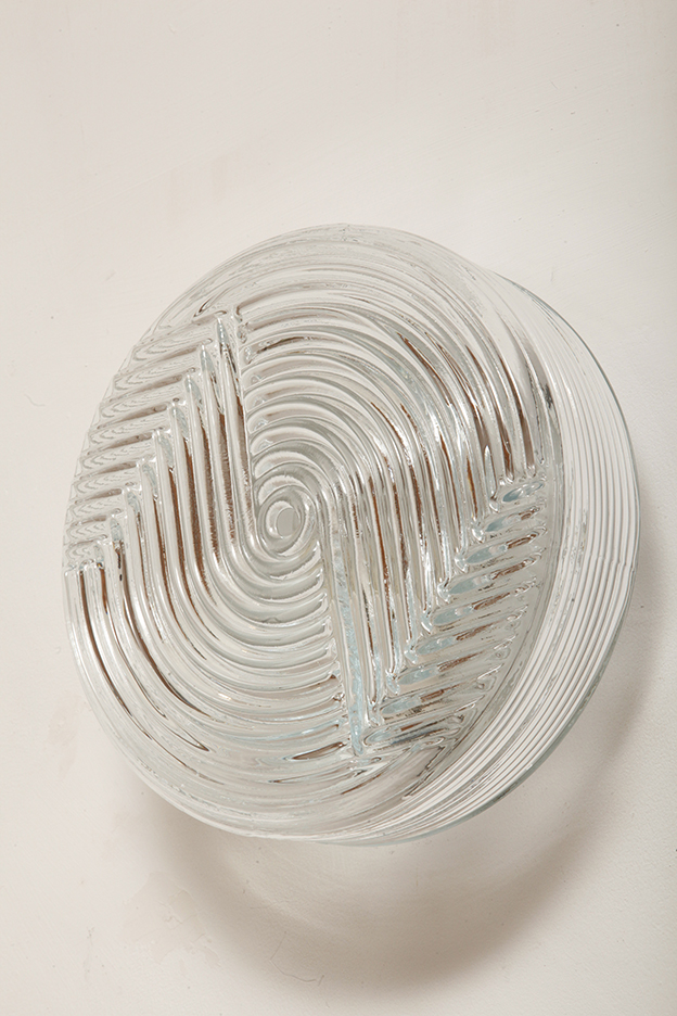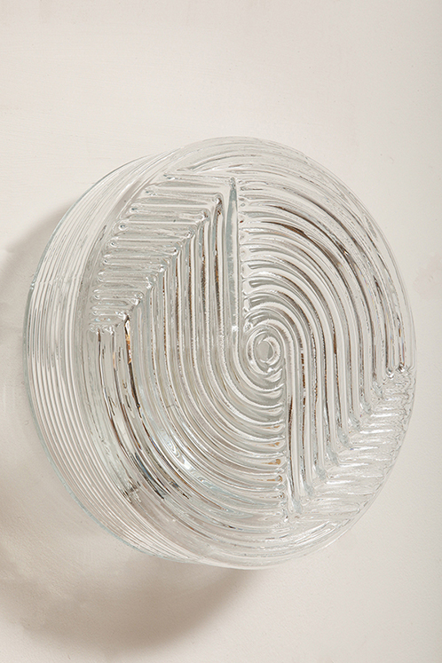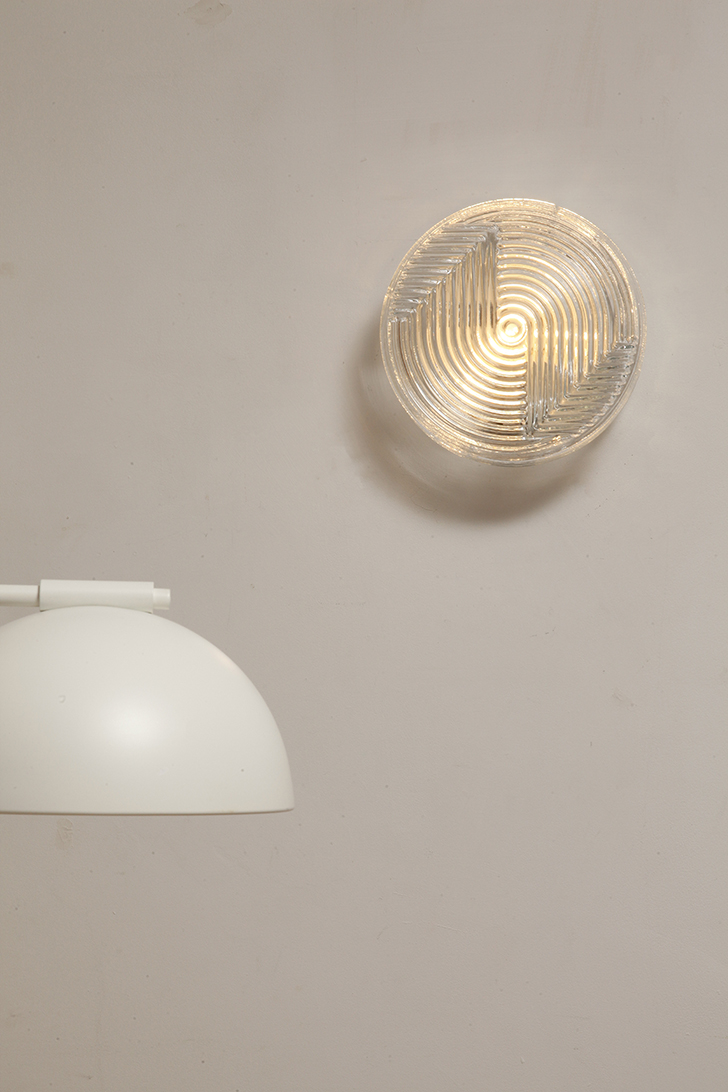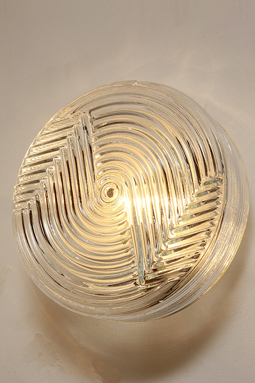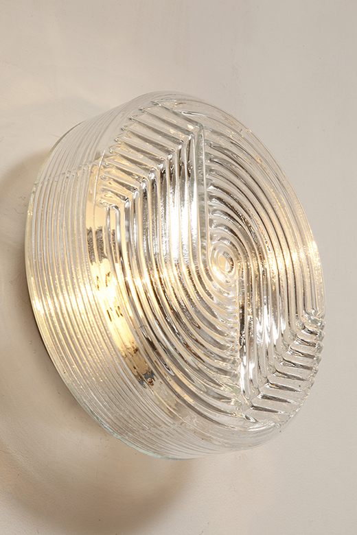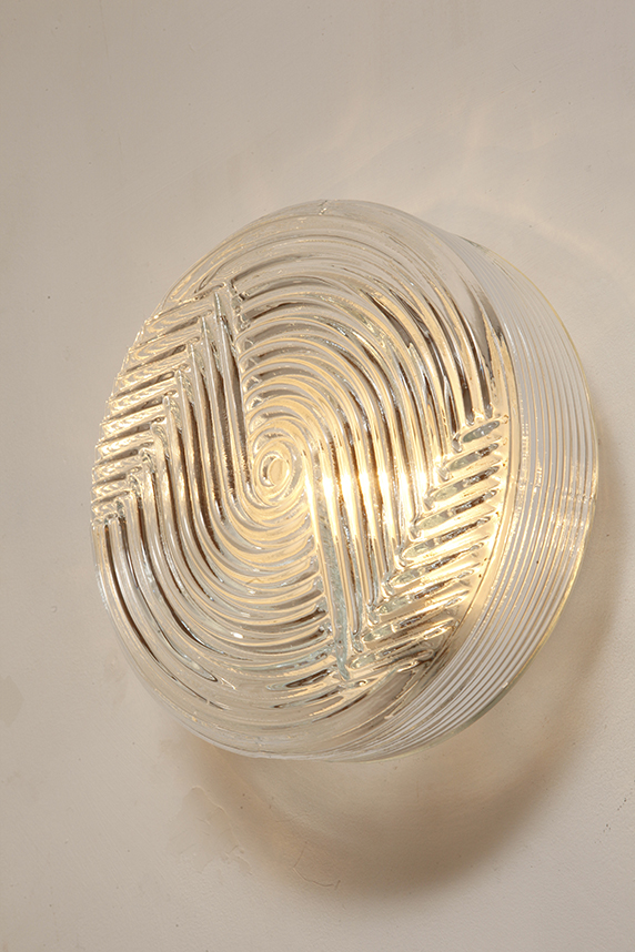 Dodaj elegancki i dyskretny akcent do każdego wnętrza dzięki tej vintage’owej lampie ściennej od PRISMA, o designie inspirowanym formami organicznymi. Lampa wykonana jest z satynowanego, tłoczonego szkła, z delikatną teksturą na zewnątrz i koncentrycznymi, wypukłymi kręgami w centrum, które tworzą subtelną grę światła i cieni. Falowany kształt przypomina stylizowany kwiat, co czyni ją idealną do wnętrz retro, minimalistycznych czy nawet industrialnych.