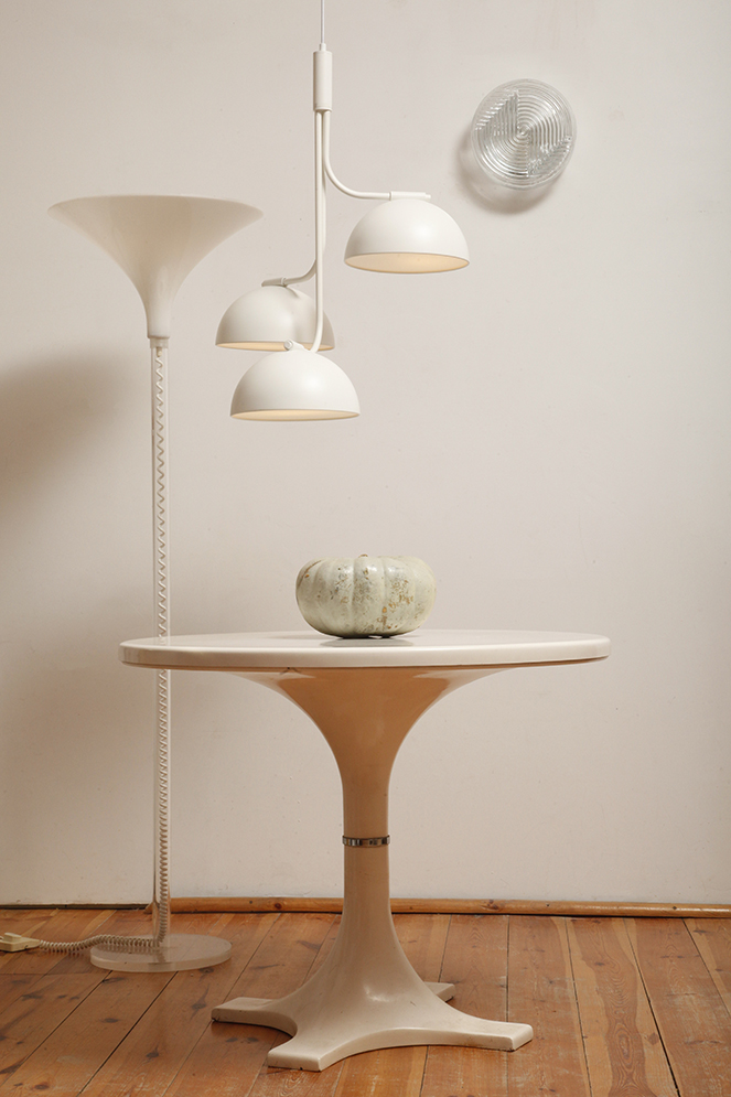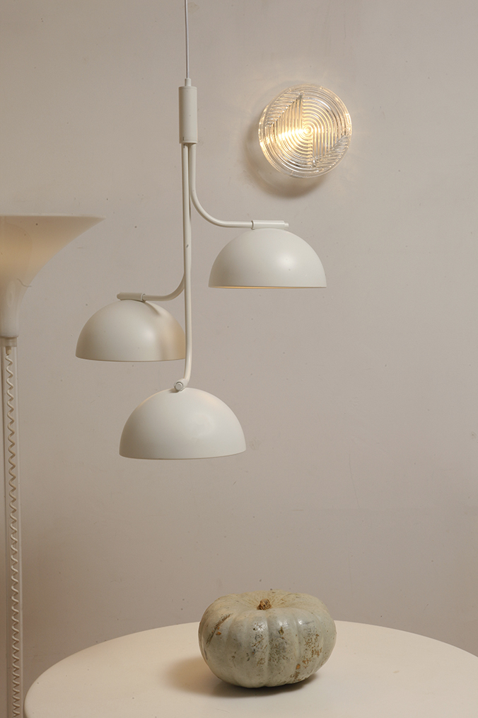 Różne skojarzenia mam patrząc na tę lampę. Dajmy na to tak ameba. Dostrzegam pewne podobieństwa. Ma też coś w sobie z sygnalizacji świetlnej, ale też z kwiatowego kielicha. Dość tego ! Kinkiet jest piękny. Mlecznobiały i matowy.