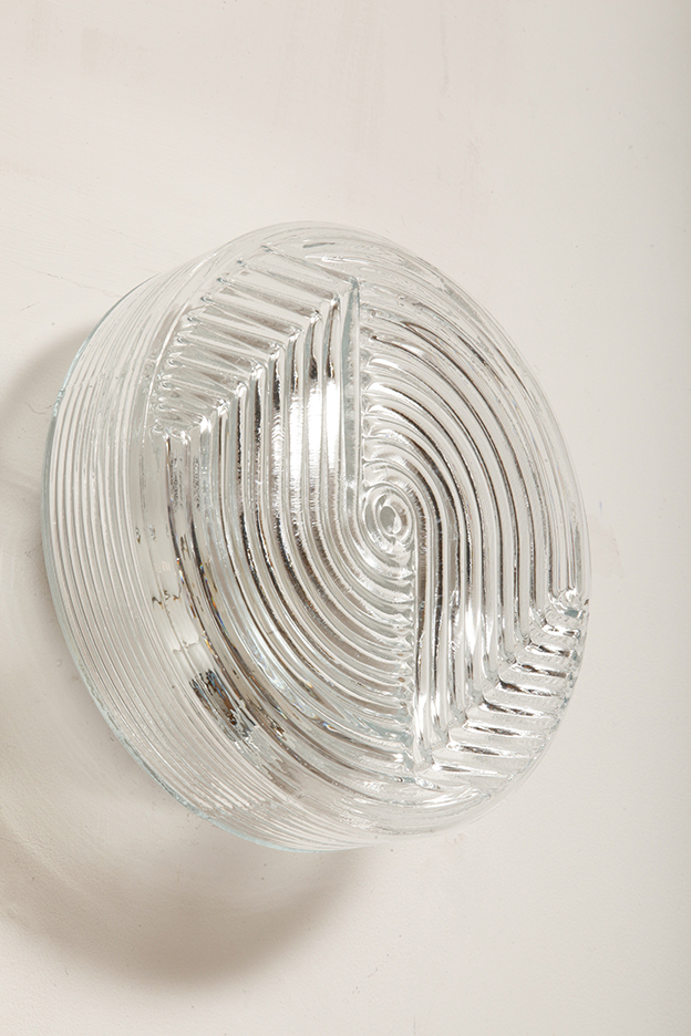 Kinkiet jest piękny. Przeźroczysty i czysty. A reliefowy wzór od frontu nawiązuje do stylistyki art deco. Boczne ścianki także są reliefowane. I lampa paluszki lizać wyszła z tego.