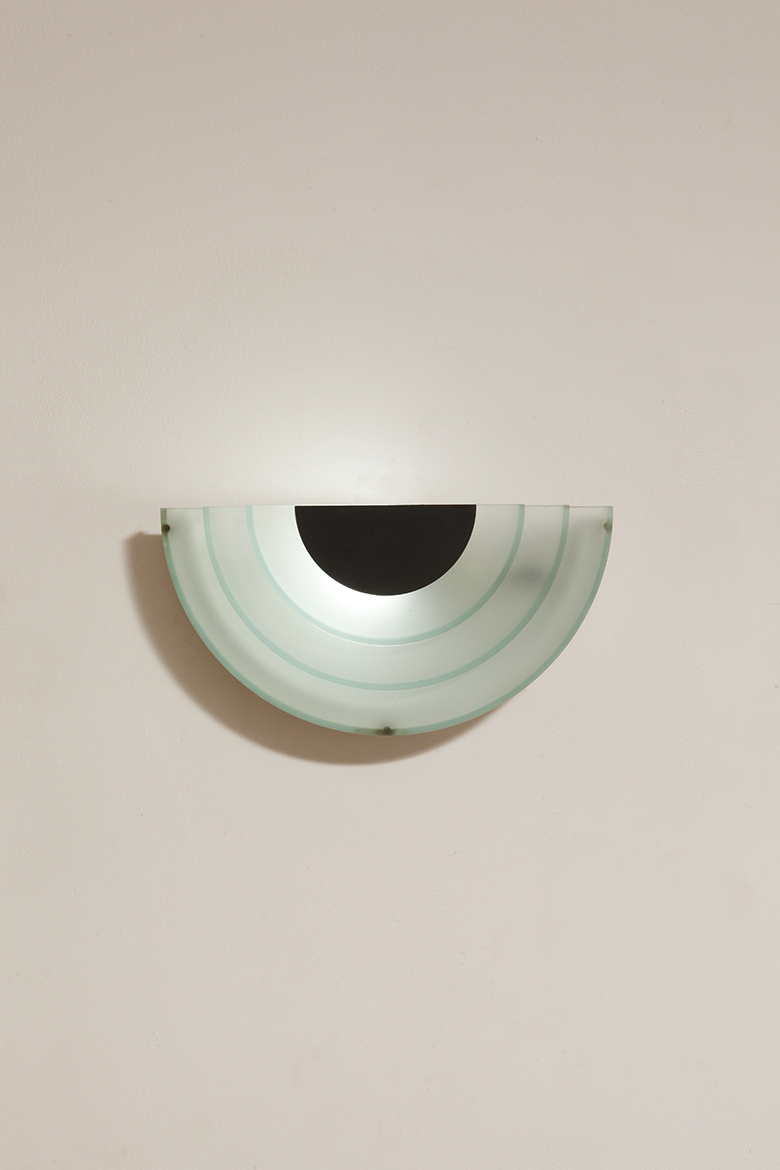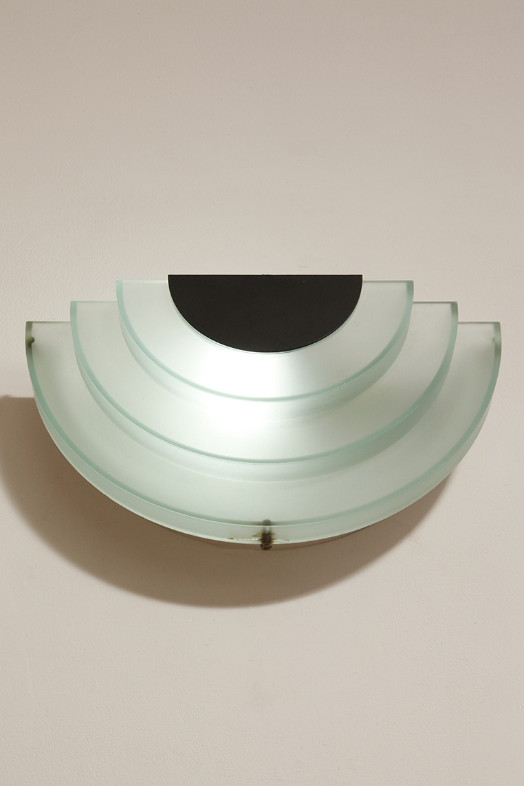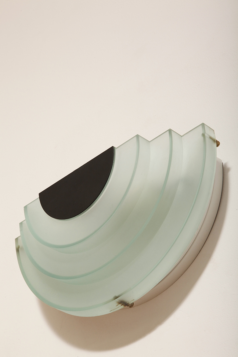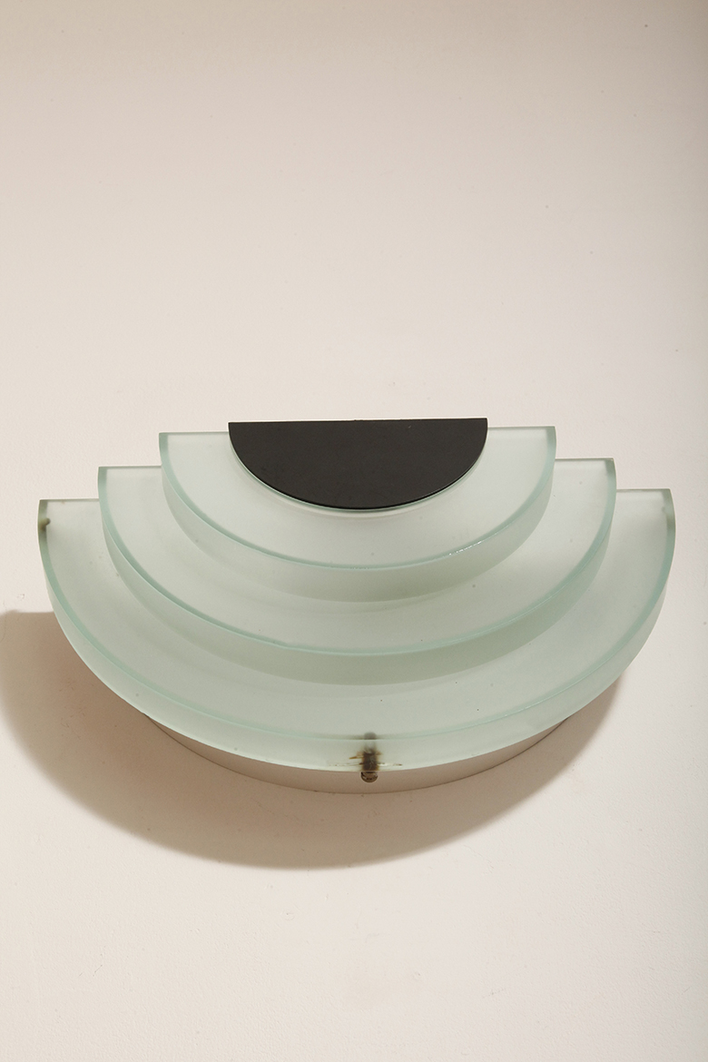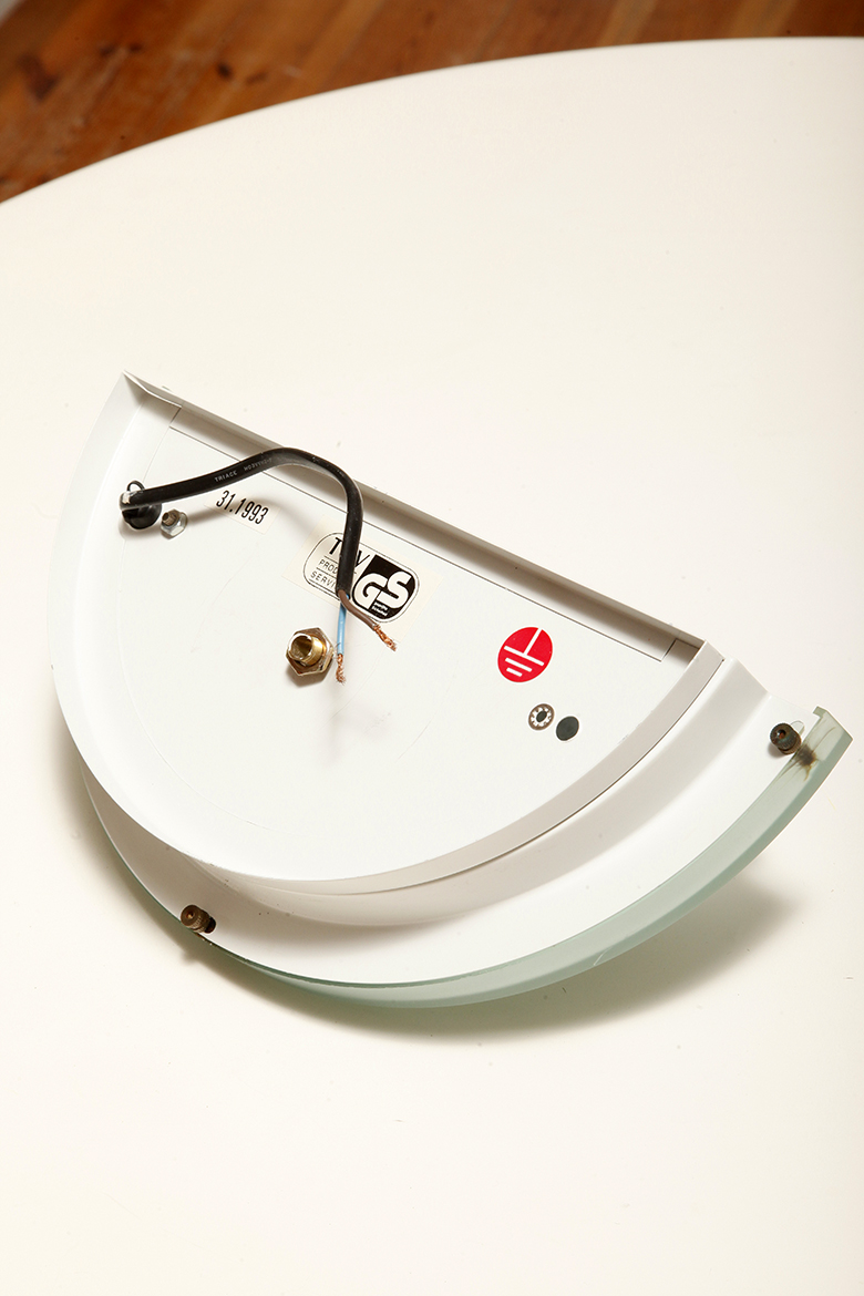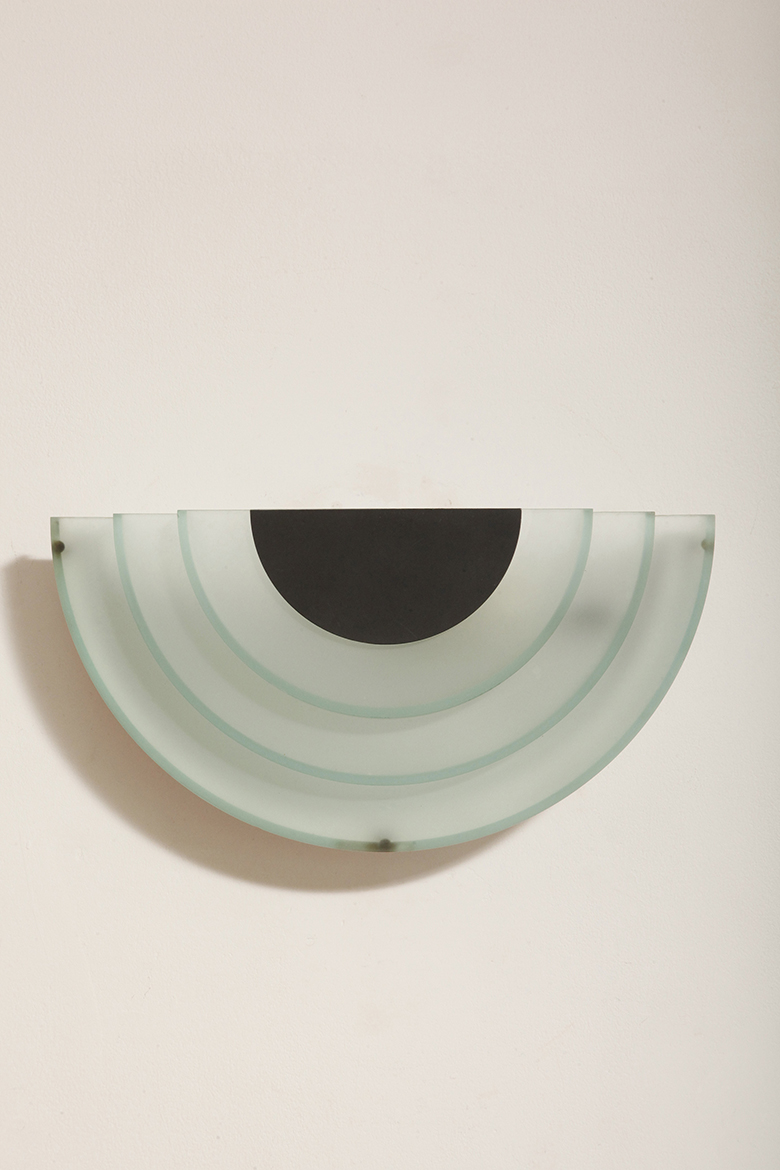 Kaskadowy w pięknym morskim kolorze w zielonym odcieniu klosz akrylowy z czarnym półkolem w środku robi całą lampę. Jest w nich duch memphisowego stylu zrodzonego we włoskim Milanówku (Milano), czyli w Mediolanie. Co trzeba napisać i właśnie to teraz robię, klosze (mamy dwie takie lampy) mają delikatne pęknięcia akrylowego klosza w miejscach mocowania ich na uchwyci ściennym. Tam gdzie wkręcane są nieduże śrubki (zdjęcia). Technicznie to bez znaczenia, bo pęknięcie są jedynie przy samych otworach, a wizualnie zupełnie niewidoczne gdy lampa wisi na ścianie.