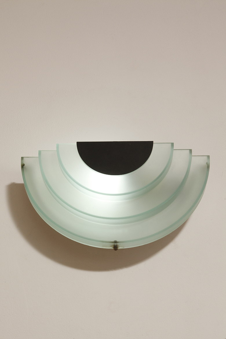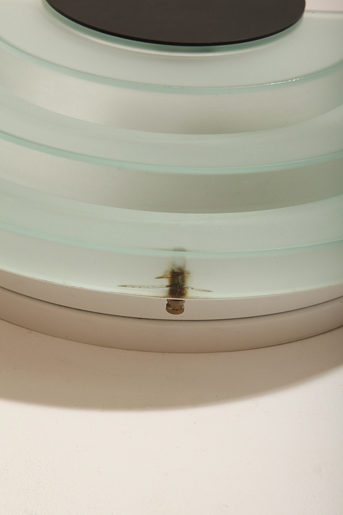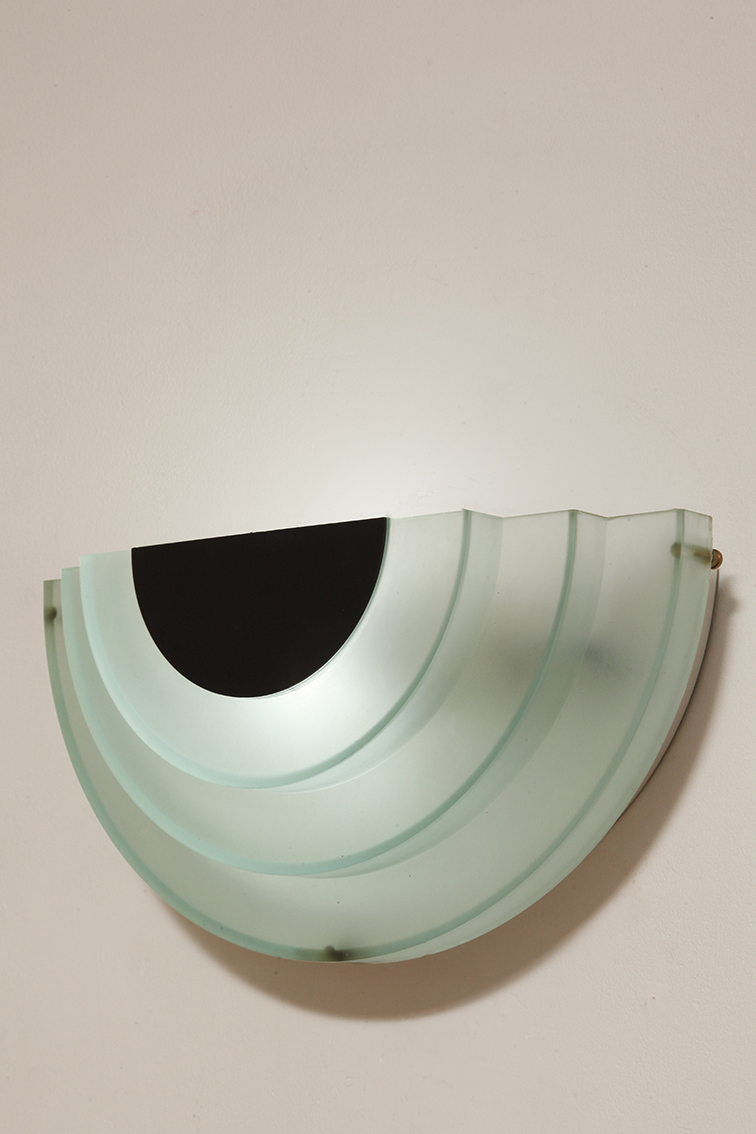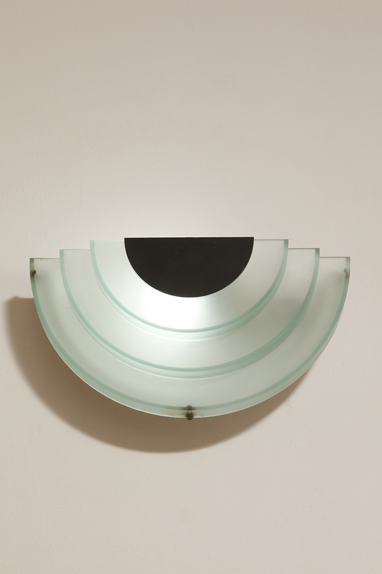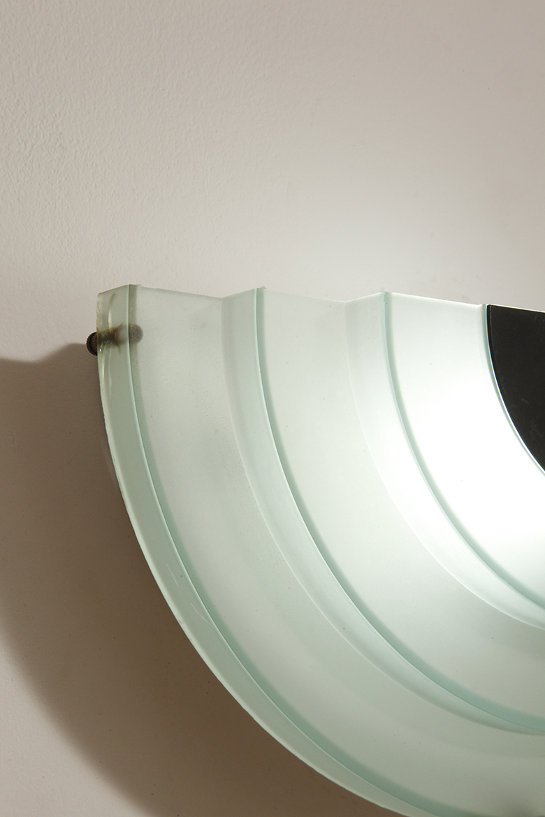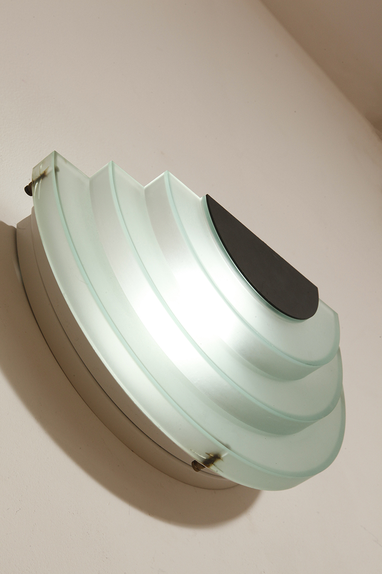Kaskadowy w pięknym morskim kolorze w zielonym odcieniu klosz akrylowy z czarnym półkolem w środku robi całą lampę. Jest w nich duch memphisowego stylu zrodzonego we włoskim Milanówku (Milano), czyli w Mediolanie. Co trzeba napisać i właśnie to teraz robię, klosze (mamy dwie takie lampy) mają delikatne pęknięcia akrylowego klosza w miejscach mocowania ich na uchwyci ściennym. Tam gdzie wkręcane są nieduże śrubki (zdjęcia). Technicznie to bez znaczenia, bo pęknięcie są jedynie przy samych otworach, a wizualnie zupełnie niewidoczne gdy lampa wisi na ścianie.