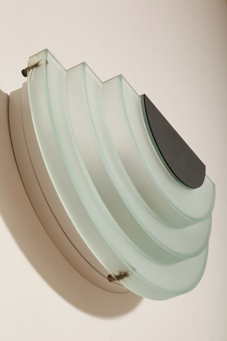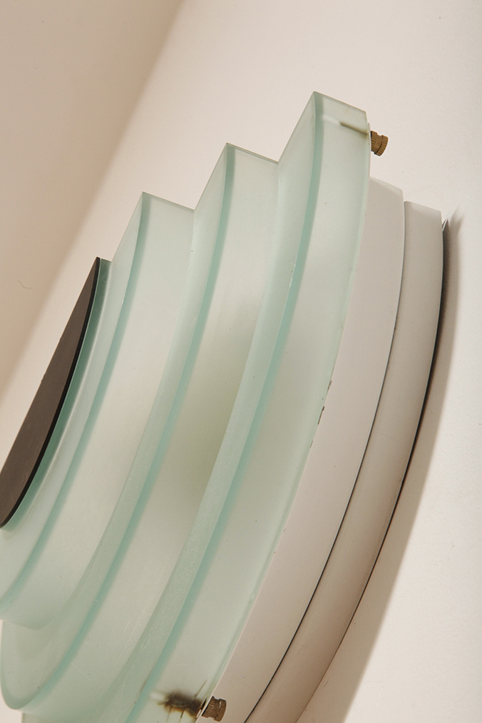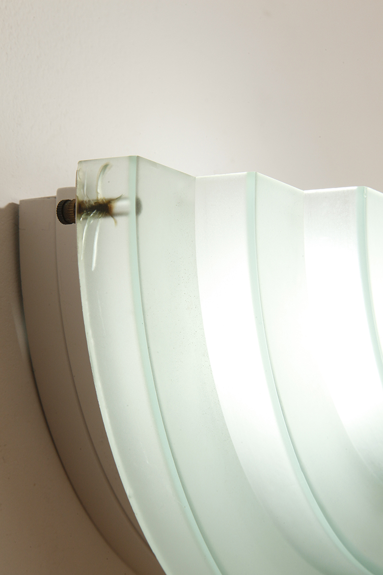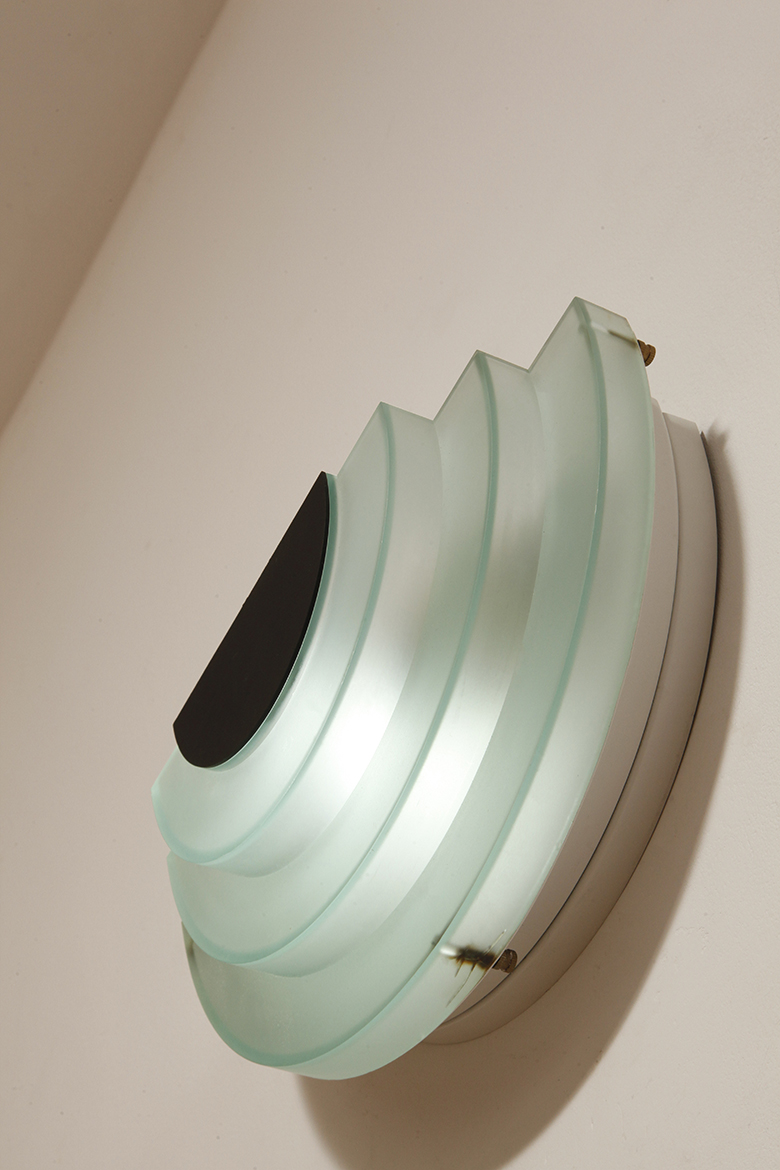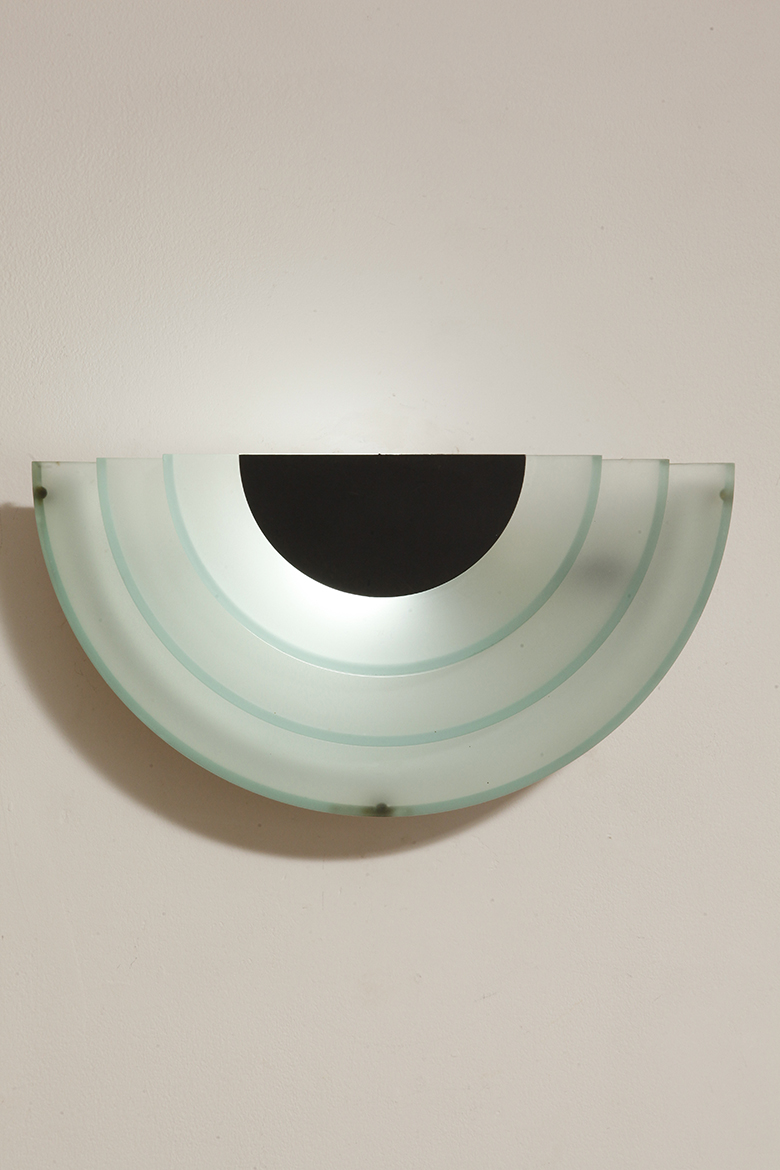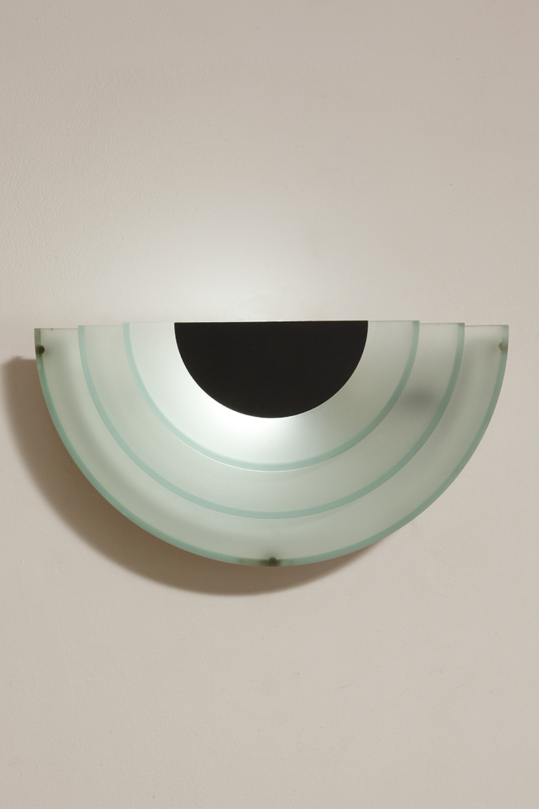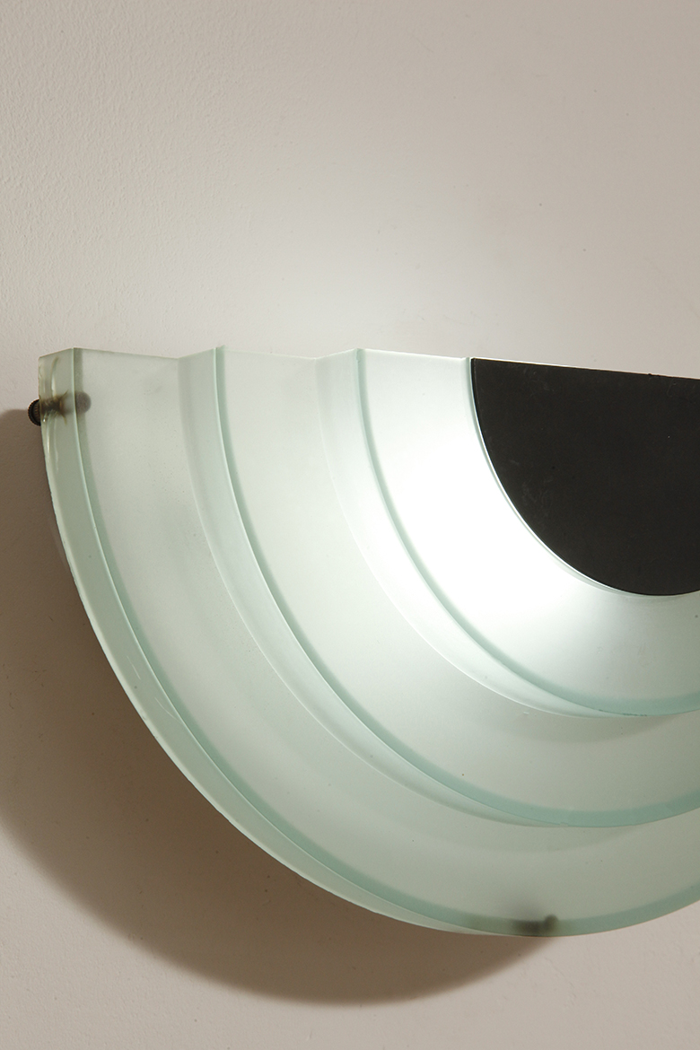 Kaskadowy w pięknym morskim kolorze w zielonym odcieniu klosz akrylowy z czarnym półkolem w środku robi całą lampę. Jest w nich duch memphisowego stylu zrodzonego we włoskim Milanówku (Milano), czyli w Mediolanie. Co trzeba napisać i właśnie to teraz robię, klosze (mamy dwie takie lampy) mają delikatne pęknięcia akrylowego klosza w miejscach mocowania ich na uchwyci ściennym. Tam gdzie wkręcane są nieduże śrubki (zdjęcia). Technicznie to bez znaczenia, bo pęknięcie są jedynie przy samych otworach, a wizualnie zupełnie niewidoczne gdy lampa wisi na ścianie.