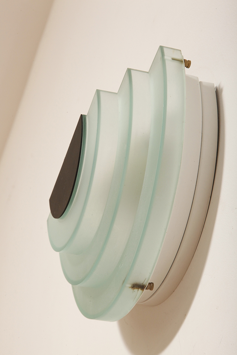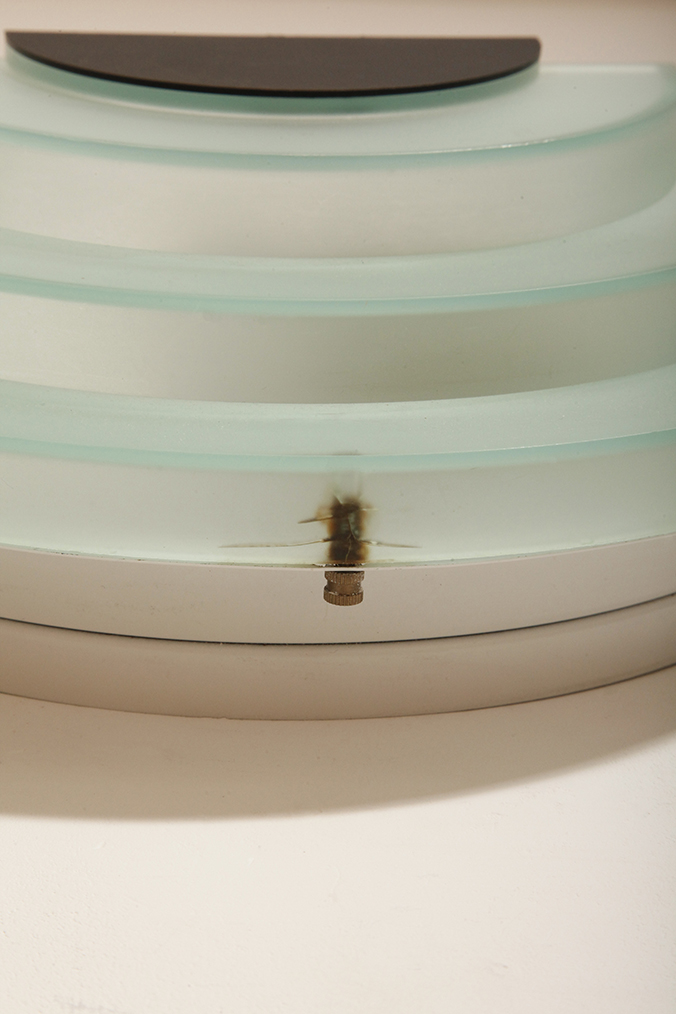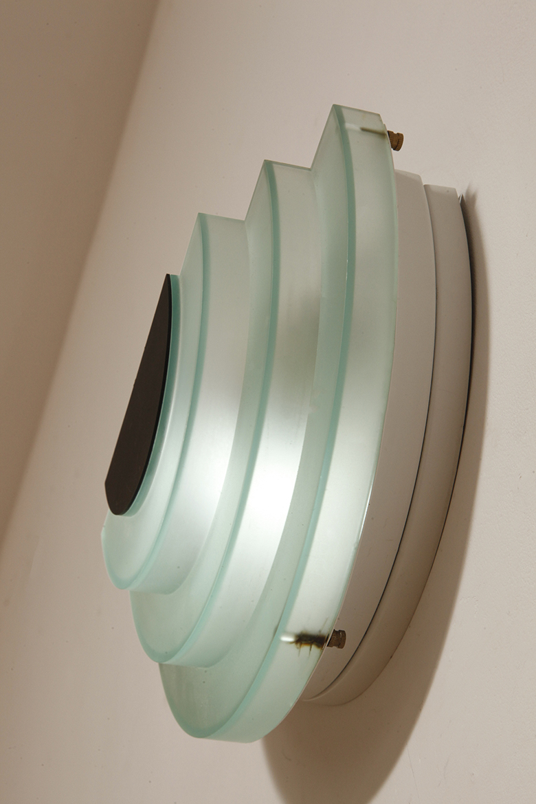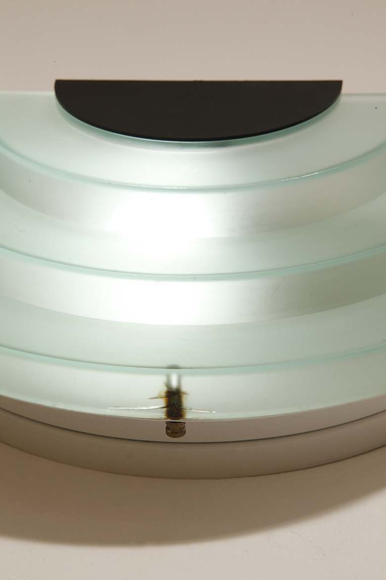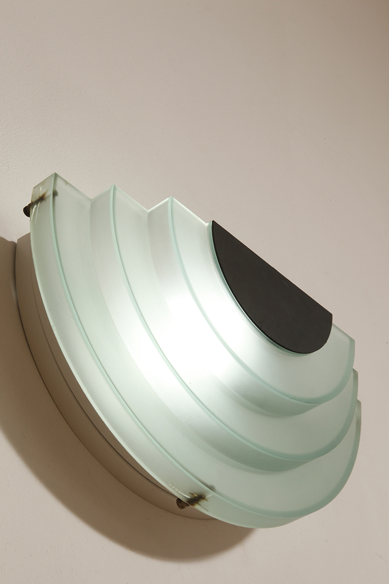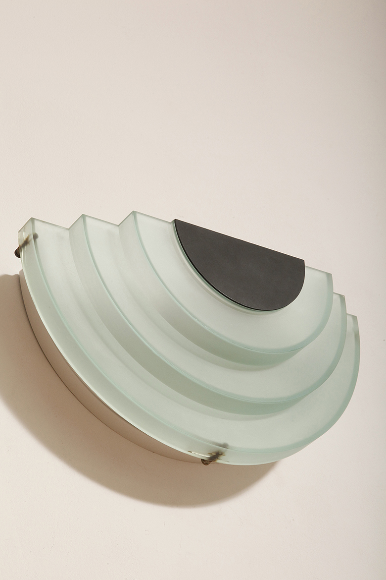 Kaskadowy w pięknym morskim kolorze w zielonym odcieniu klosz akrylowy z czarnym półkolem w środku robi całą lampę. Jest w nich duch memphisowego stylu zrodzonego we włoskim Milanówku (Milano), czyli w Mediolanie. Co trzeba napisać i właśnie to teraz robię, klosze (mamy dwie takie lampy) mają delikatne pęknięcia akrylowego klosza w miejscach mocowania ich na uchwyci ściennym. Tam gdzie wkręcane są nieduże śrubki (zdjęcia). Technicznie to bez znaczenia, bo pęknięcie są jedynie przy samych otworach, a wizualnie zupełnie niewidoczne gdy lampa wisi na ścianie.