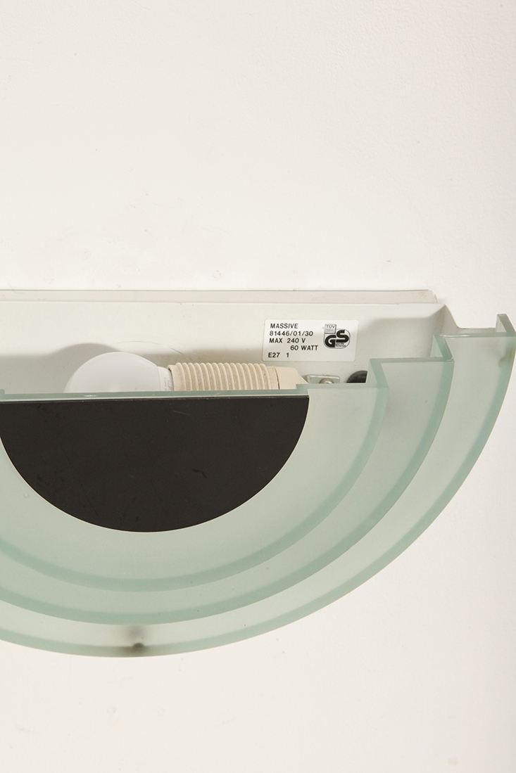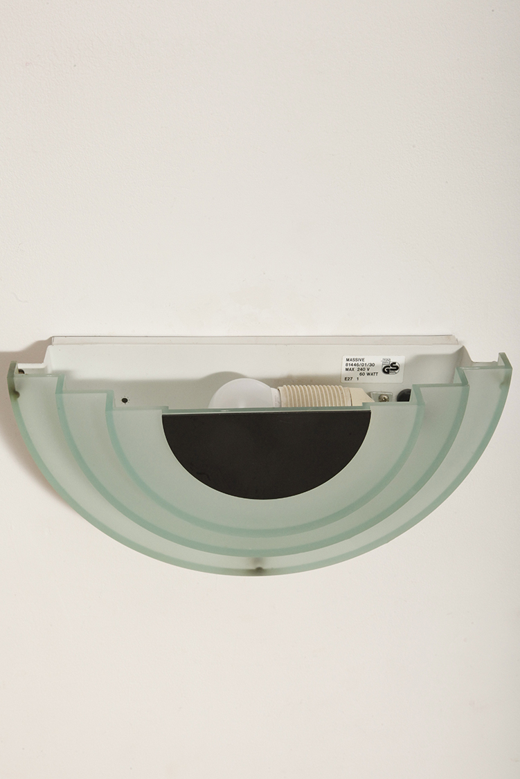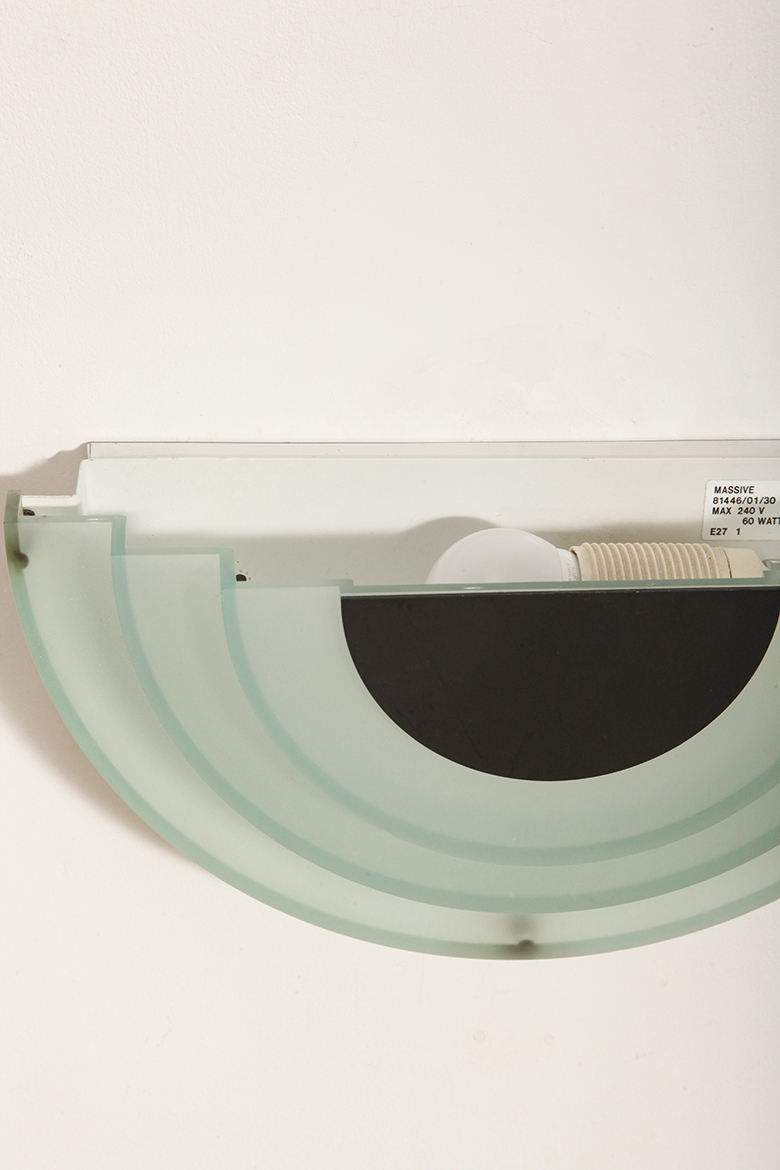 Jednopunktowy kinkiet/lampa ścienna z akrylowym kaskadowym kloszem w morskim kolorze, styl Memphis, firma Massive, Belgia, lata 90.