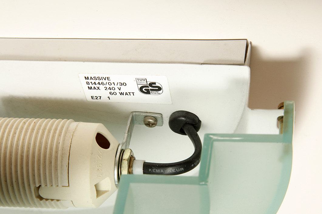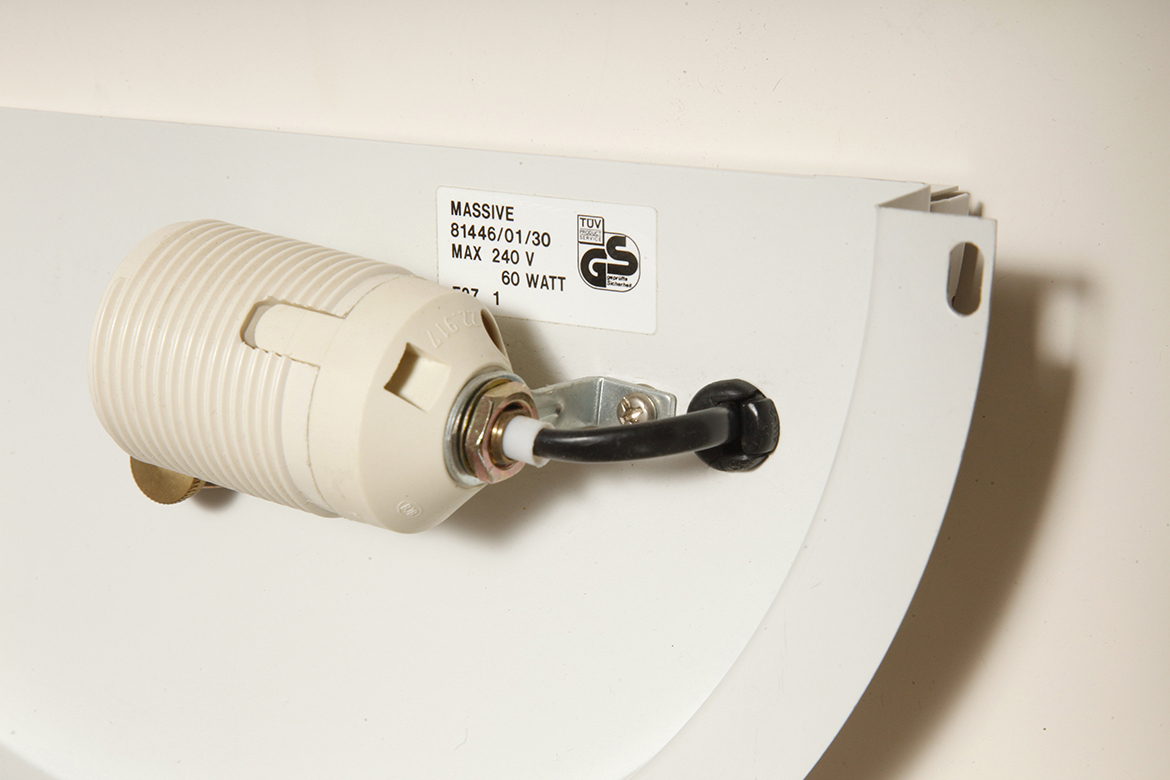 Lampy sygnowane naklejką producenta na metalowych uchwytach ściennych (zdjęcia).